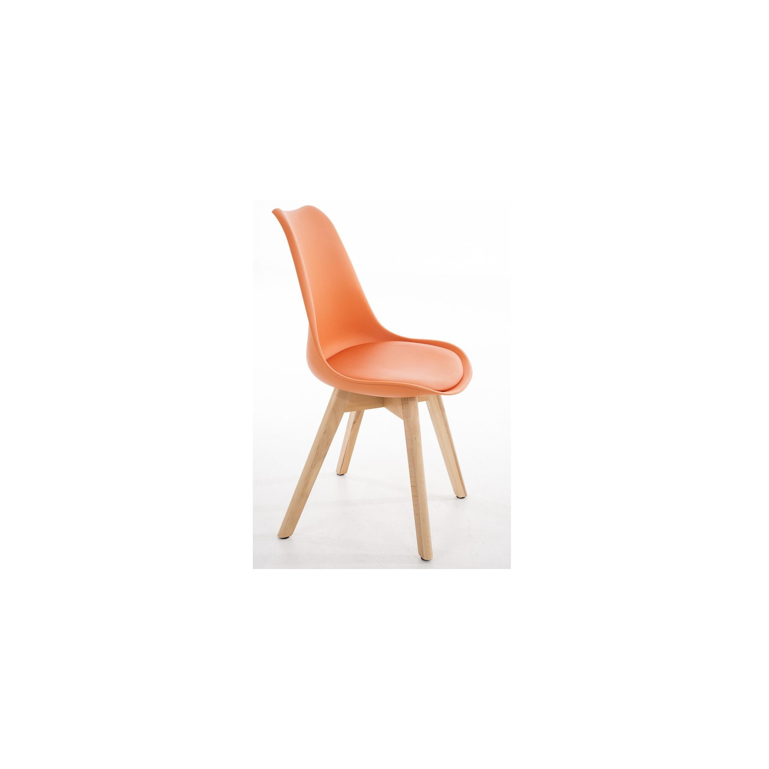 Las patas son de madera maciza y del asiento y respaldo en plastico muy resistente formado un robusto armazón. Como podrás ver en las fotografías, el original acabado redondeado de las patas es muy bonito y queda perfectamente integrado en el diseño de la silla.