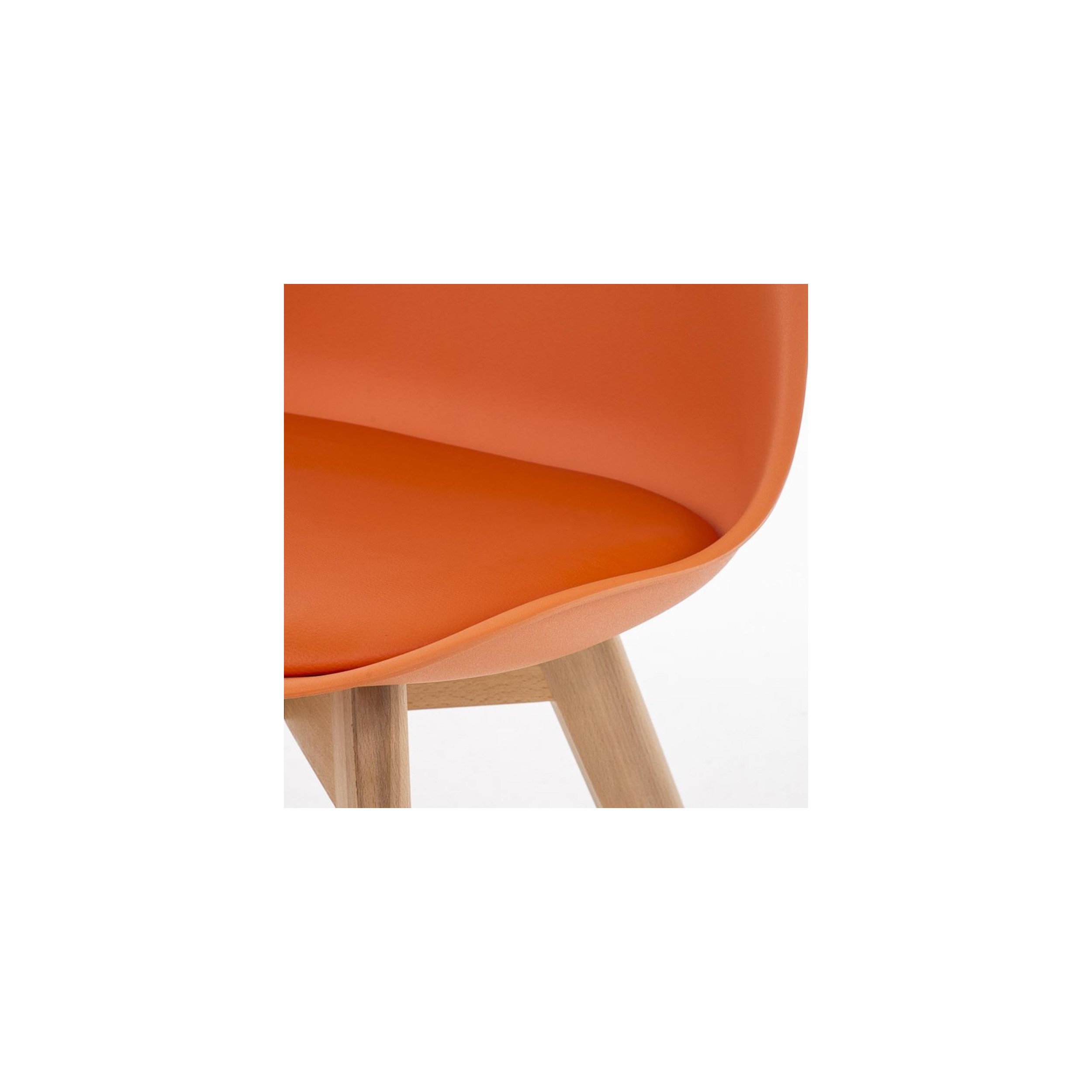También cabe destacar que se trata de una silla de excepcional calidad, ya que los materiales con los que fabrica son de primera categoría. Sus patas de madera maciza de haya en color claro son muy robustas y resistentes, con un diseño y estilo muy peculiar. La carcasa de asiento y respaldo es de plástico sólido, formando un robusto armazón. El asiento está tapizado en piel sintética de la mejor calidad. En definitiva, es una silla concebida para durar muchos años.