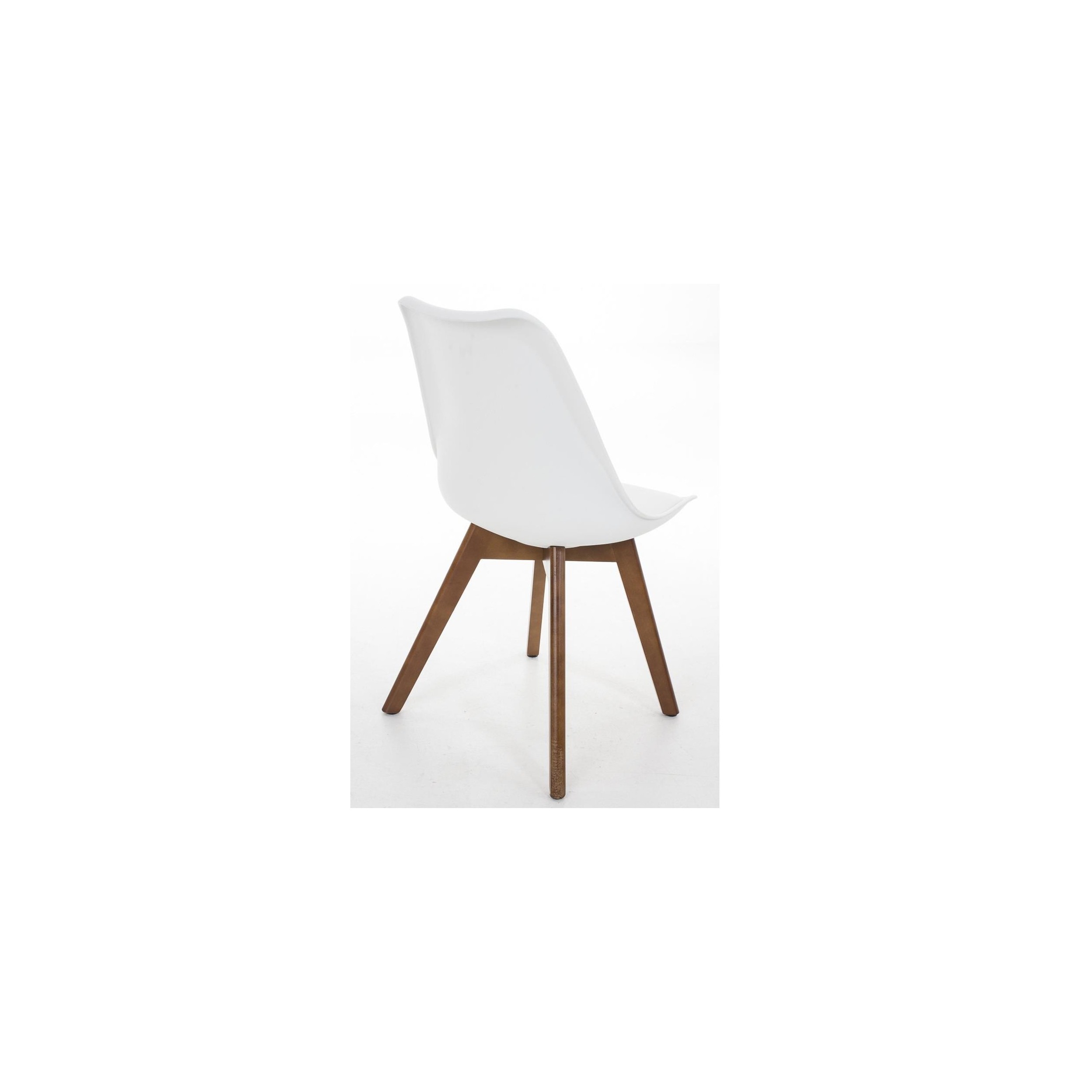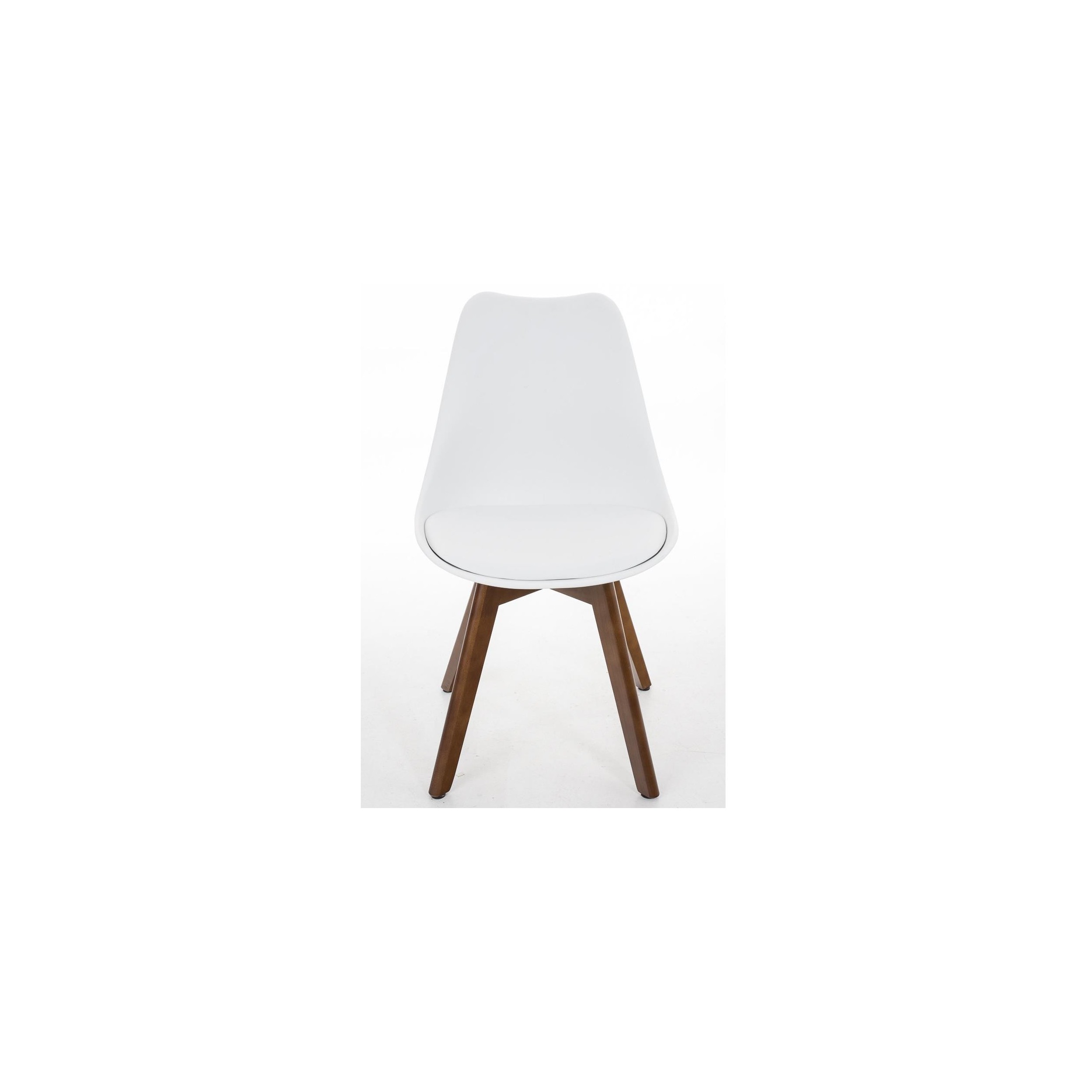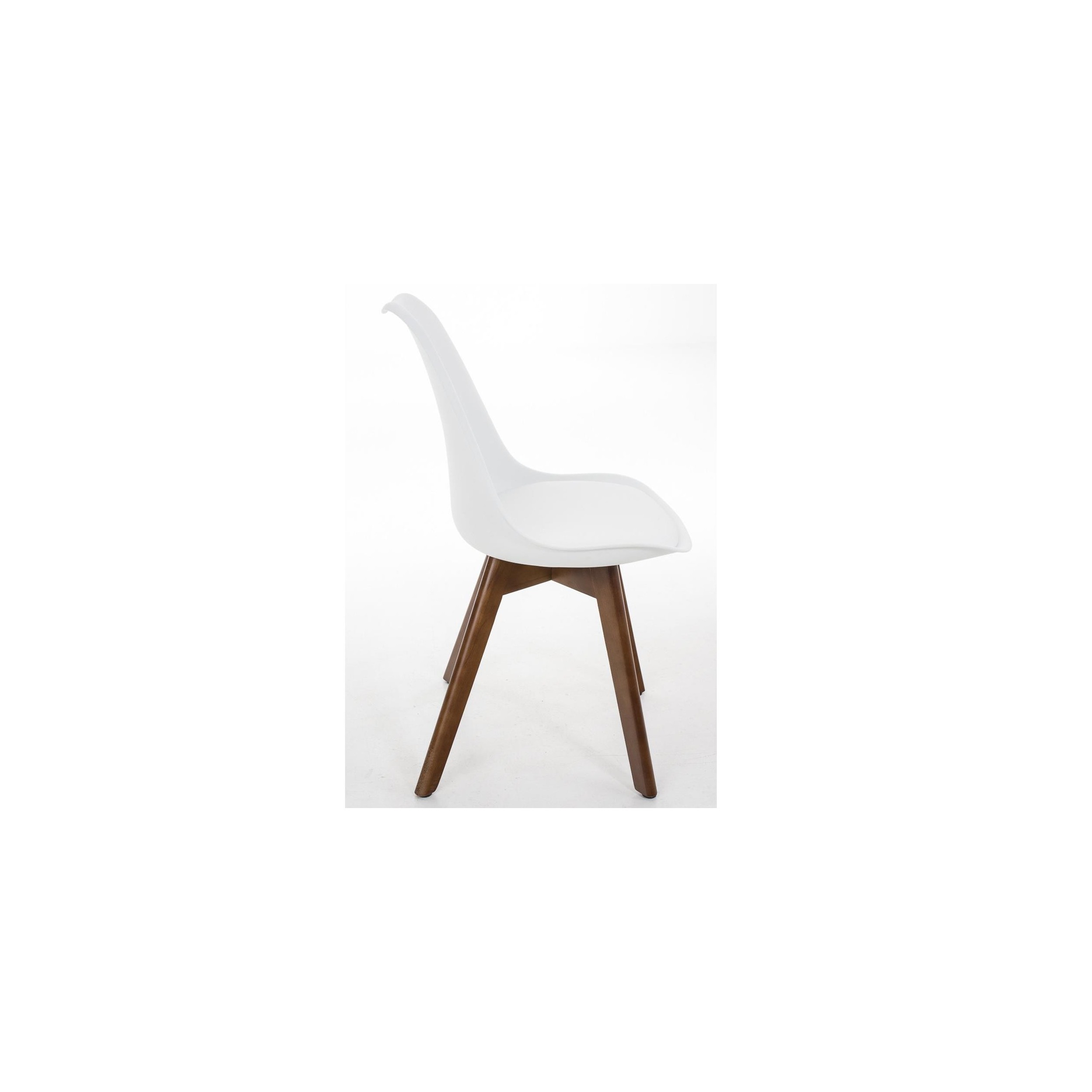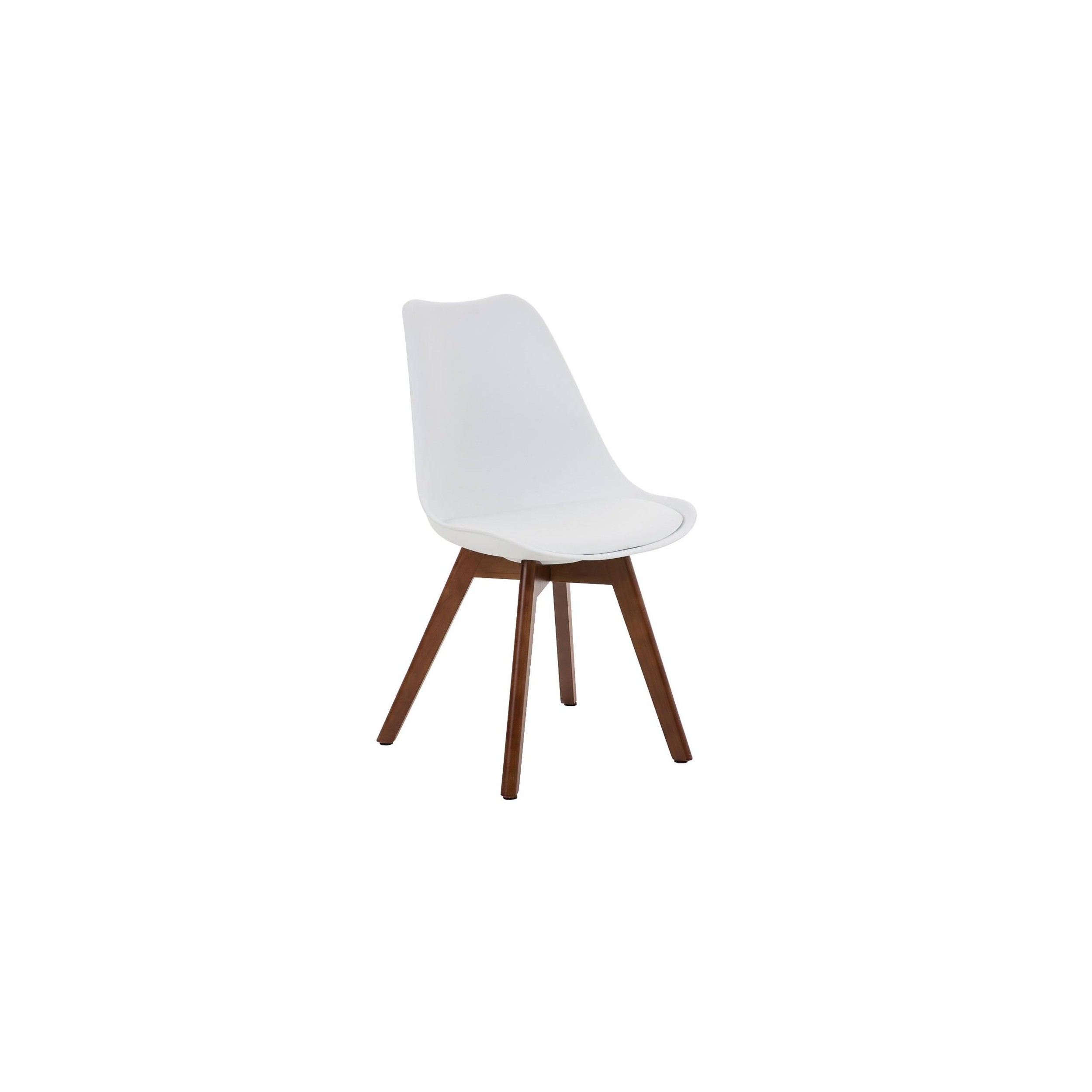 También cabe destacar que se trata de una silla de excepcional calidad, ya que los materiales con los que fabrica son de primera categoría. Sus patas de madera maciza de haya en color nogal son muy robustas y resistentes, con un diseño y estilo muy peculiar. La carcasa de asiento y respaldo es de plástico sólido, formando un robusto armazón. El asiento está tapizado en piel sintética de la mejor calidad. En definitiva, es una silla concebida para durar muchos años.