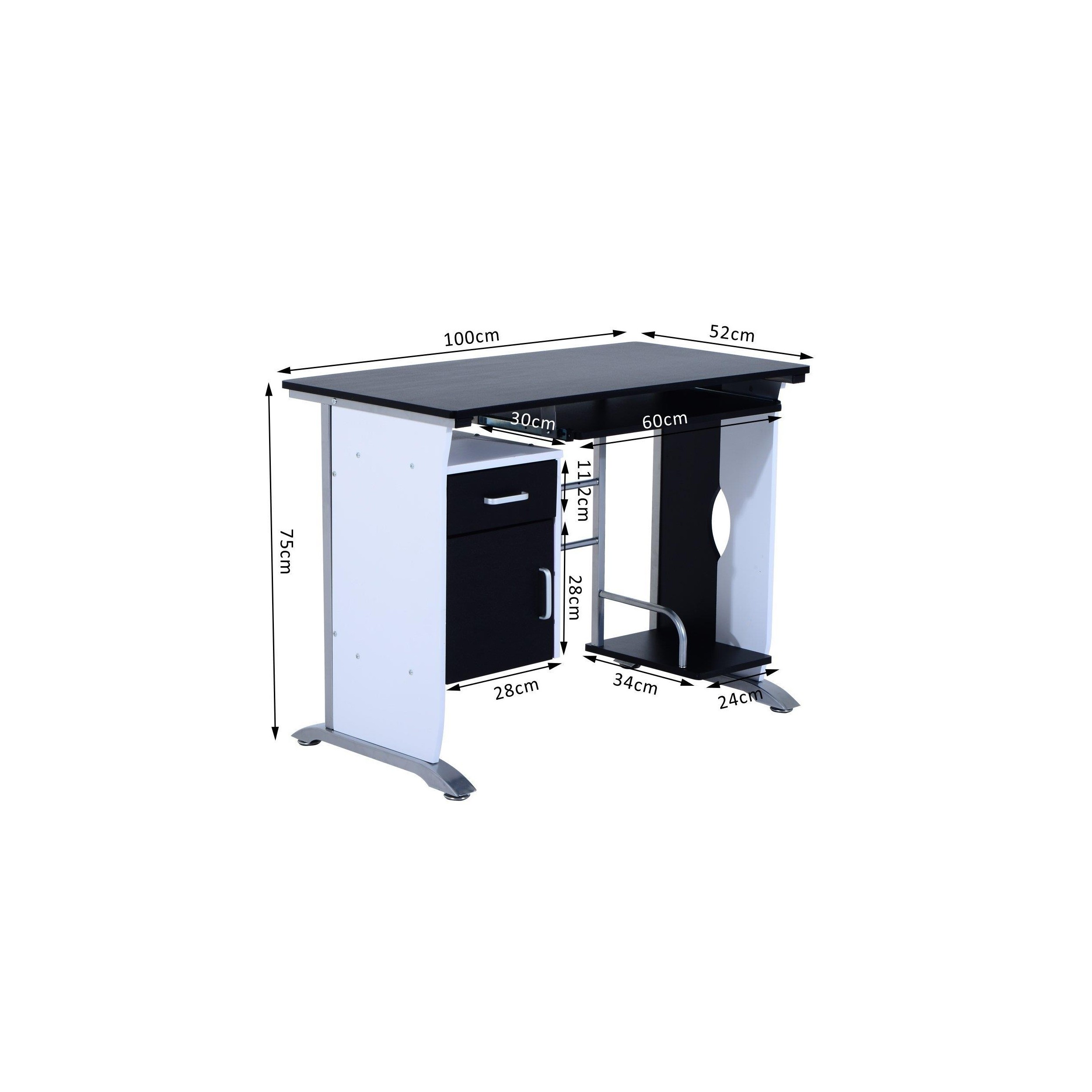 Mesa para ordenador SIAM, con Soporte para CPU y Cajones, 100x52x75cm, en Madera color Negro