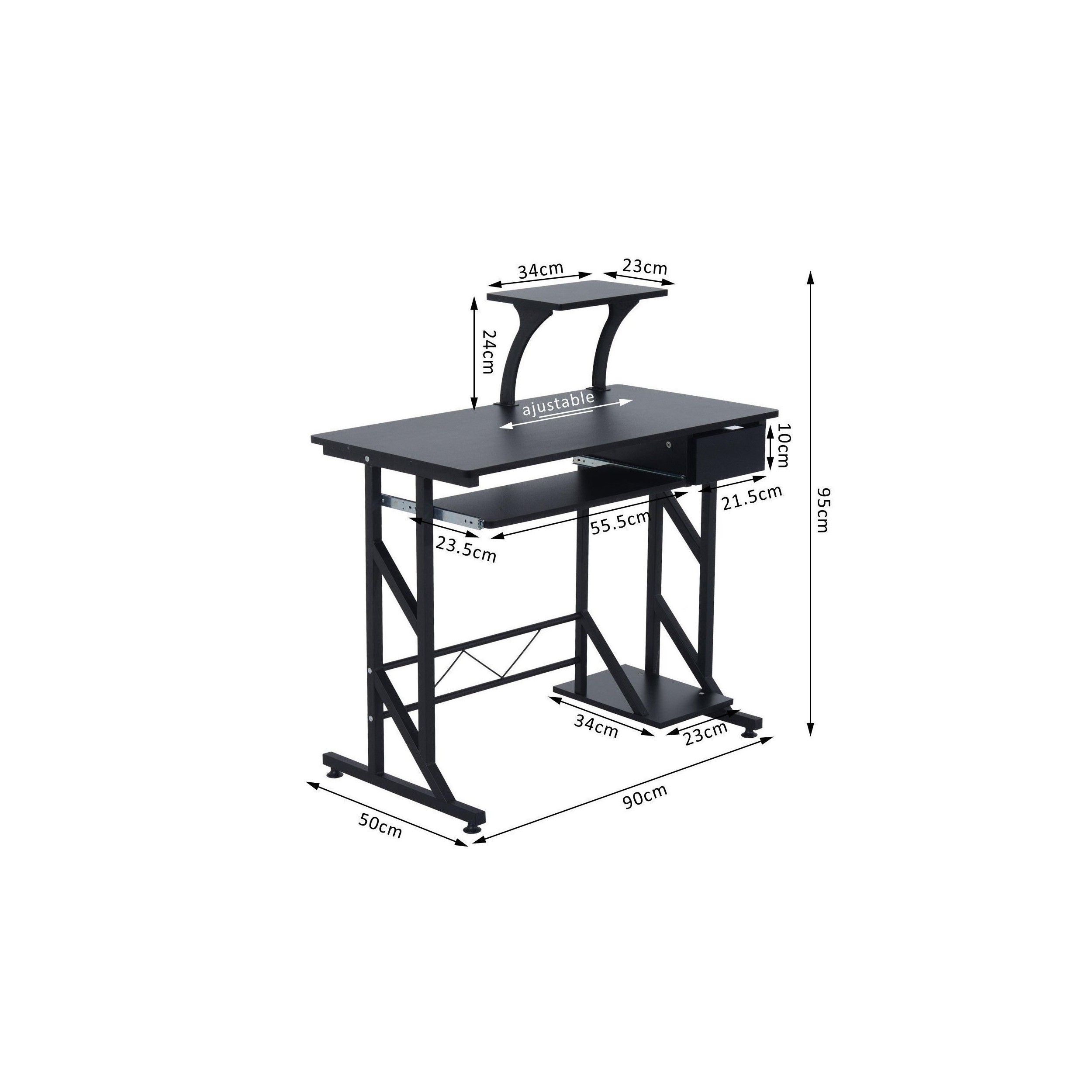Mesa para ordenador ARNOLD, con Soporte para CPU y Almacenaje, 90x50x95 cm, en Madera color Negro