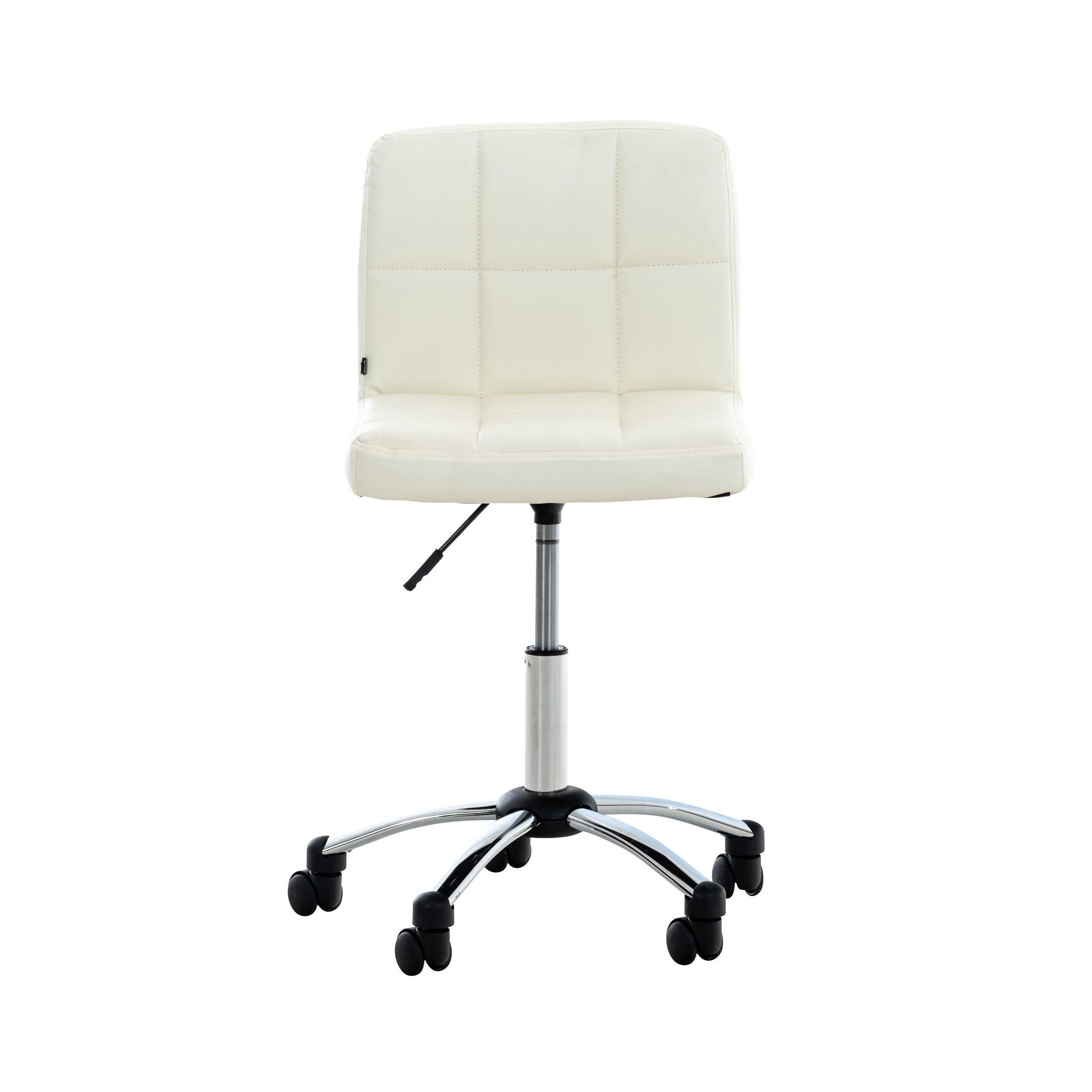 Silla / Taburete de Oficina LUKE, Gran Acolchado, Estructura Metálica, en Piel color Blanco