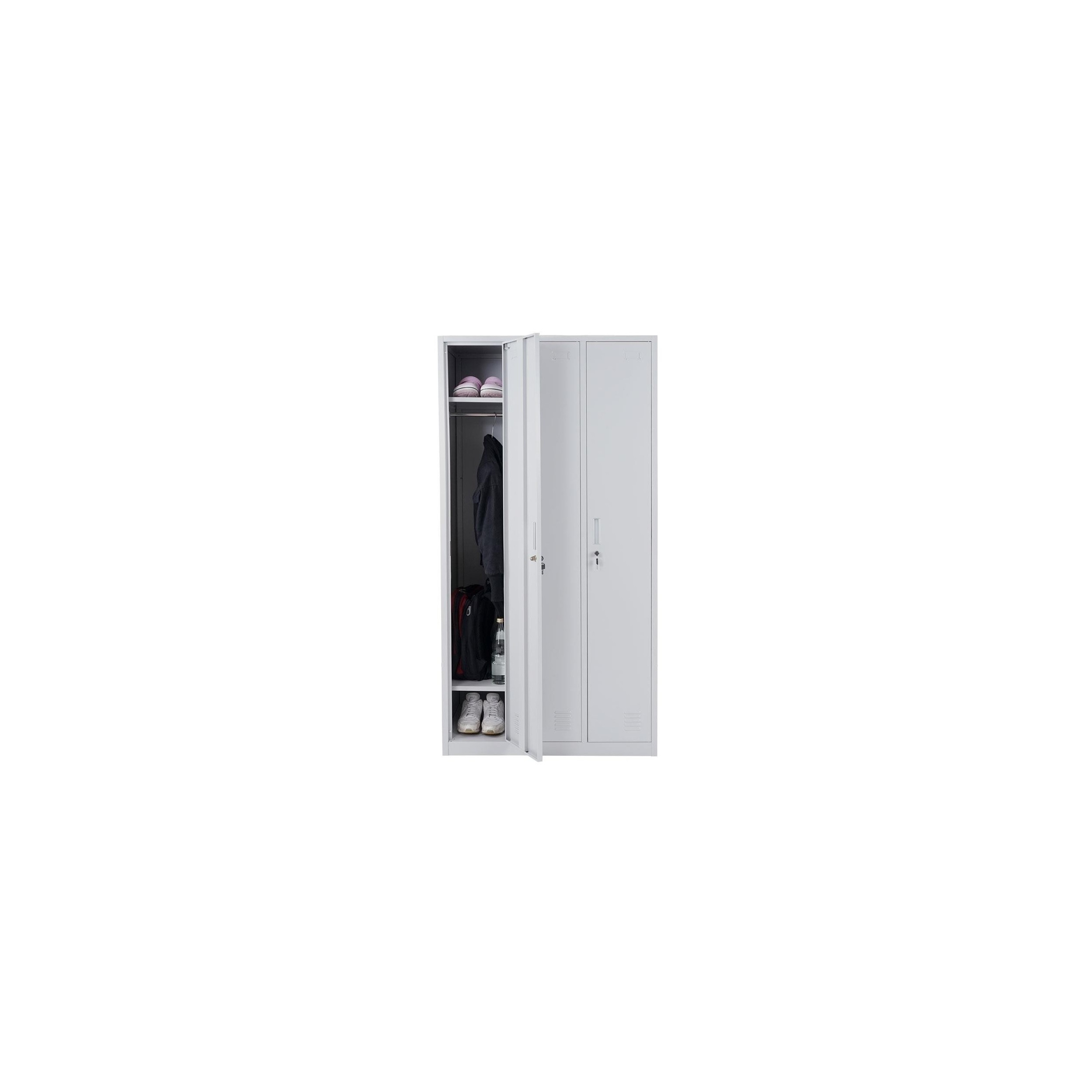 Estamos ante un armario de amplias dimensiones (180 x 90 x 50 cm), por lo que ofrece una considerable capacidad de almacenaje. Cuenta con 3 puertas con cerradura y un gran ángulo de apertura (130º) ideal para introducir y sacar los objetos con total comodidad. Cada puerta incluye llave de repuesto.