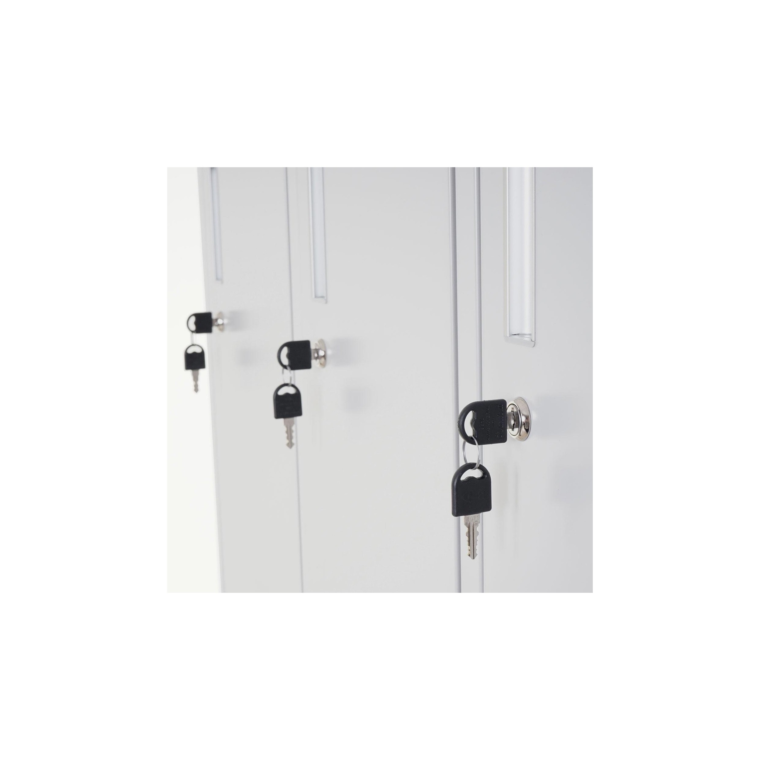 Práctica taquilla con 3 puertas, cerradura y baldas interiores. En acero de alta resistencia