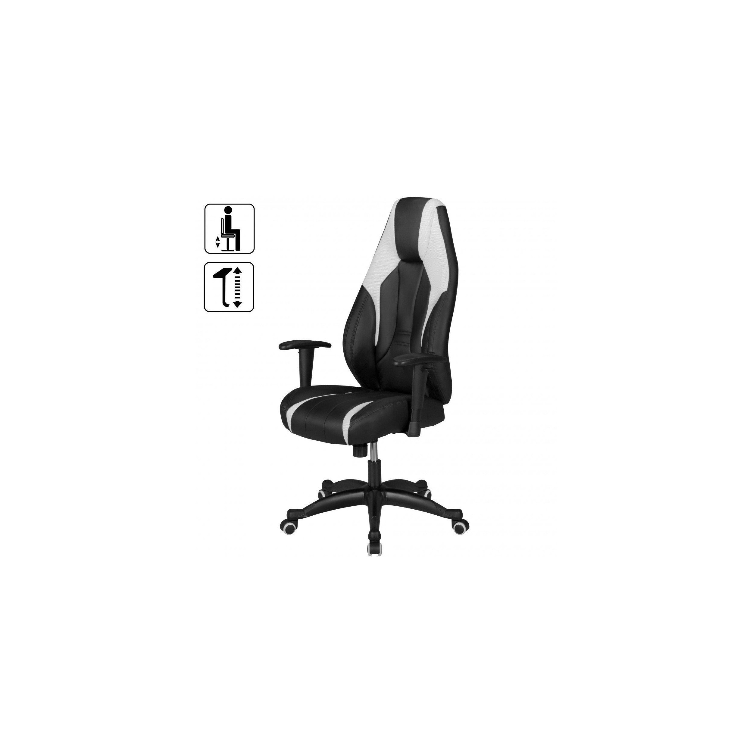 Silla Gaming URKO, Respaldo Reclinable, Brazos Ajustables, en Piel color Negro/Blanco