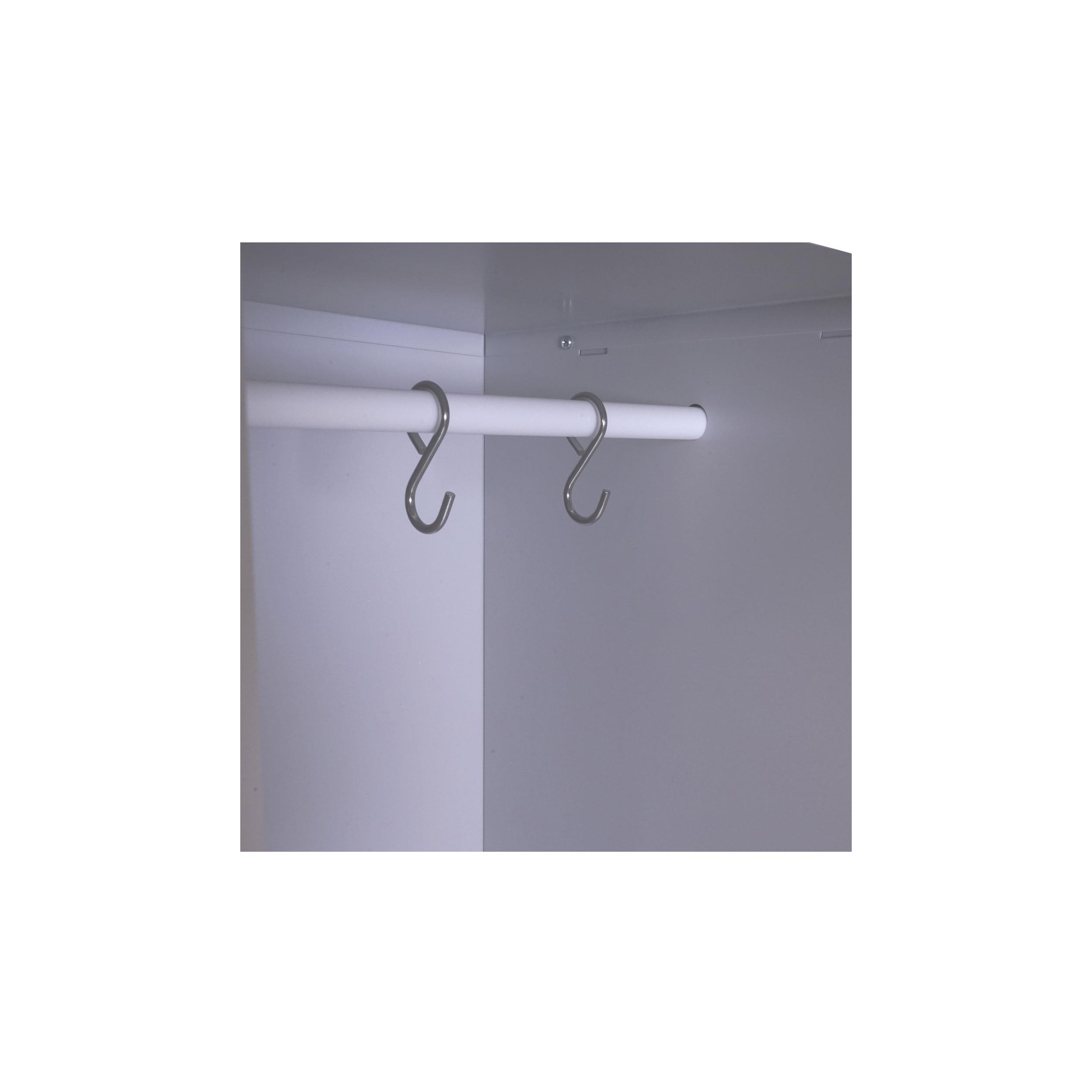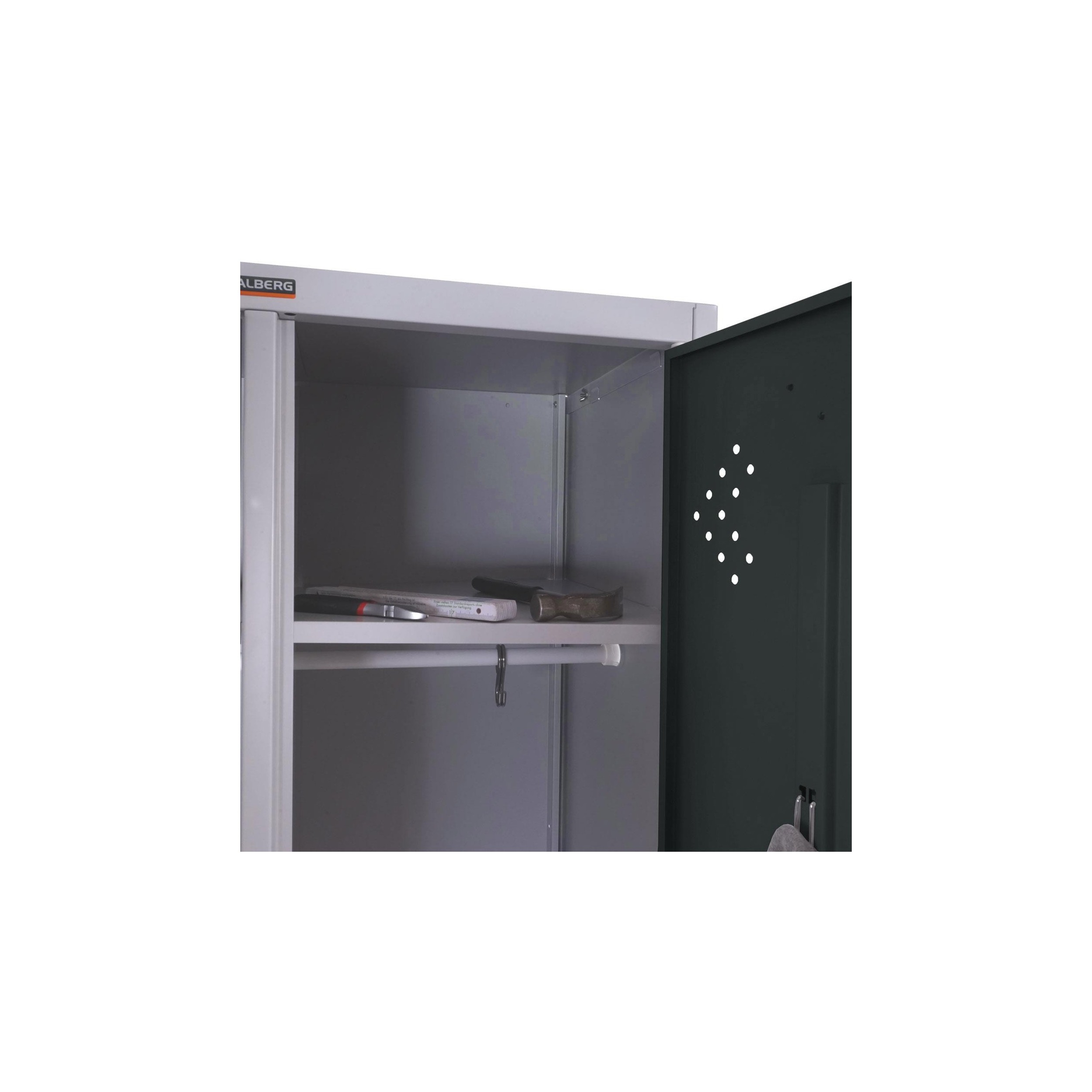 Estamos ante un armario de grandes dimensiones, 183x81x50 cm, por lo que ofrece una considerable capacidad de almacenaje. Cuenta con un estante y una barra para colgar con 4 ganchos, por lo que cada persona podrá guardar sus enseres o carpetas sin interferir en las del resto.