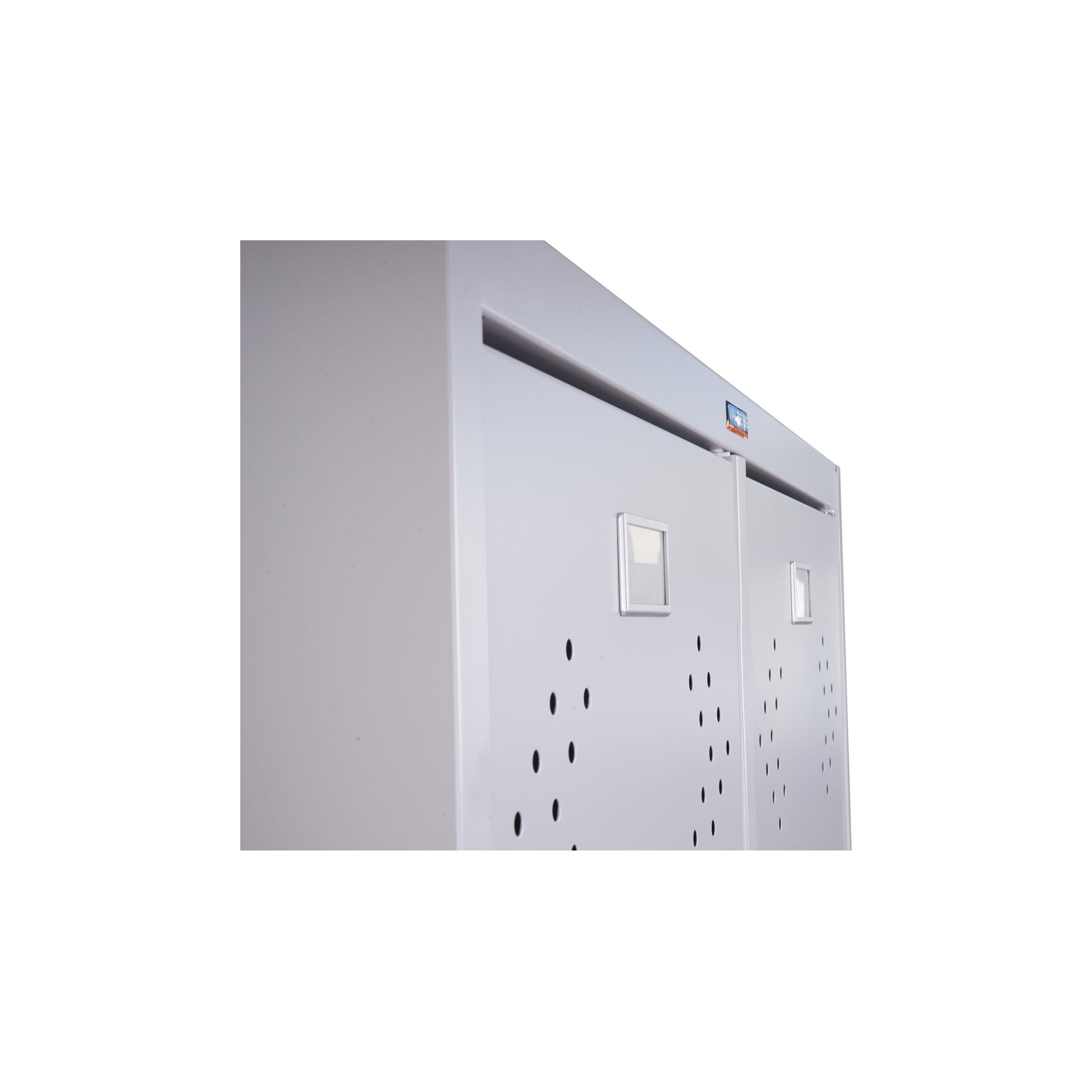 La puerta de esta taquilla tiene su propia llave (más una de repuesto), así como un soporte de identificación para poder saber a quien pertenece esa taquilla o qué se guarda en ese espacio.