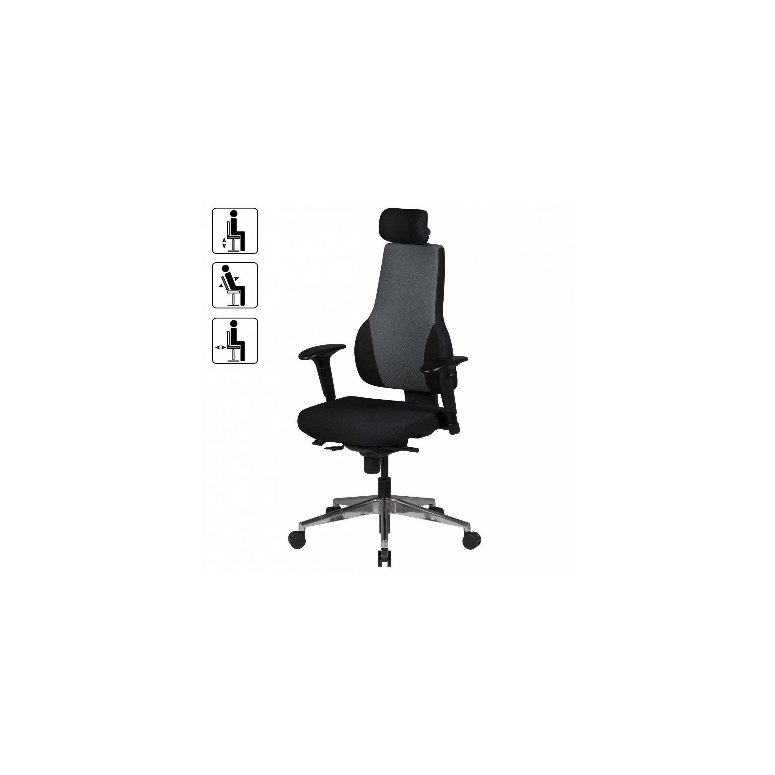 Silla Ergonómica ULISES PRO, Totalmente Ajustable, Gran Acolchado, en Tela Negra/Gris