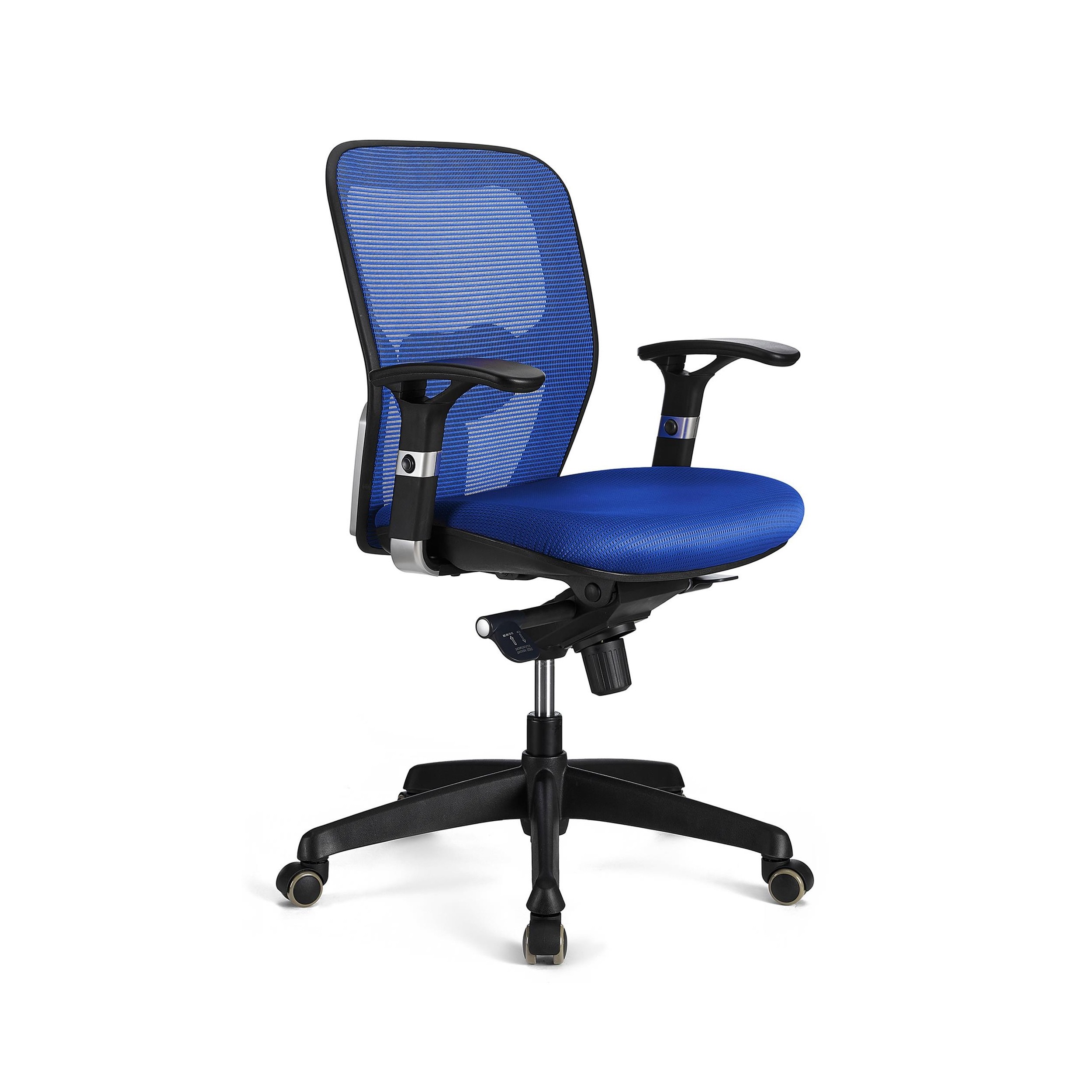Un modelo especialmente robusto, una silla para durar muchos años. Cuenta con una base fabricada en aluminio pulido, asiento tapizado en tela transpirable de alta calidad y respaldo en malla reforzado