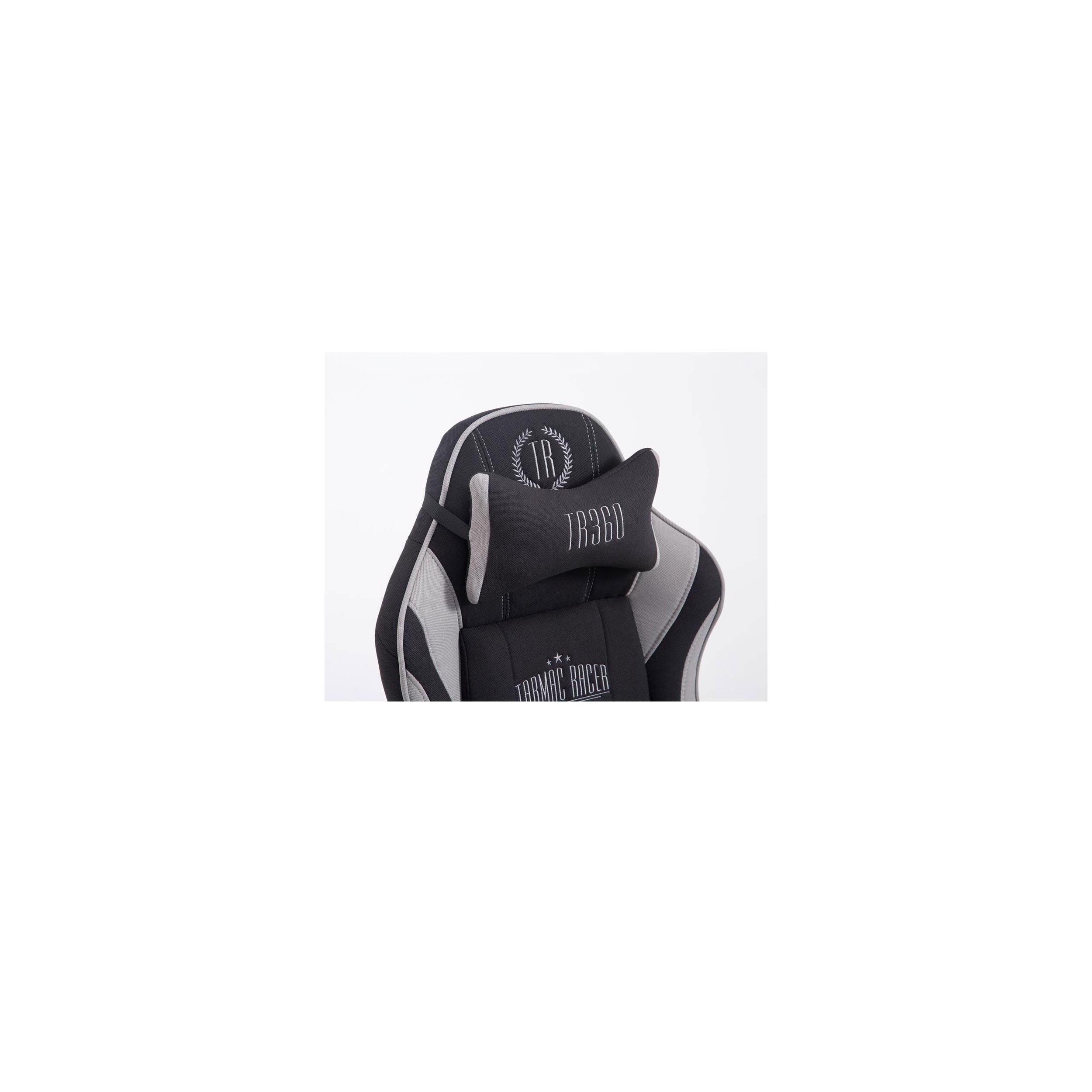 Silla Gaming TURBO TELA con Reposapiés, Respaldo Reclinable, Cojines Lumbar y Cervical, En Negro/Blanco