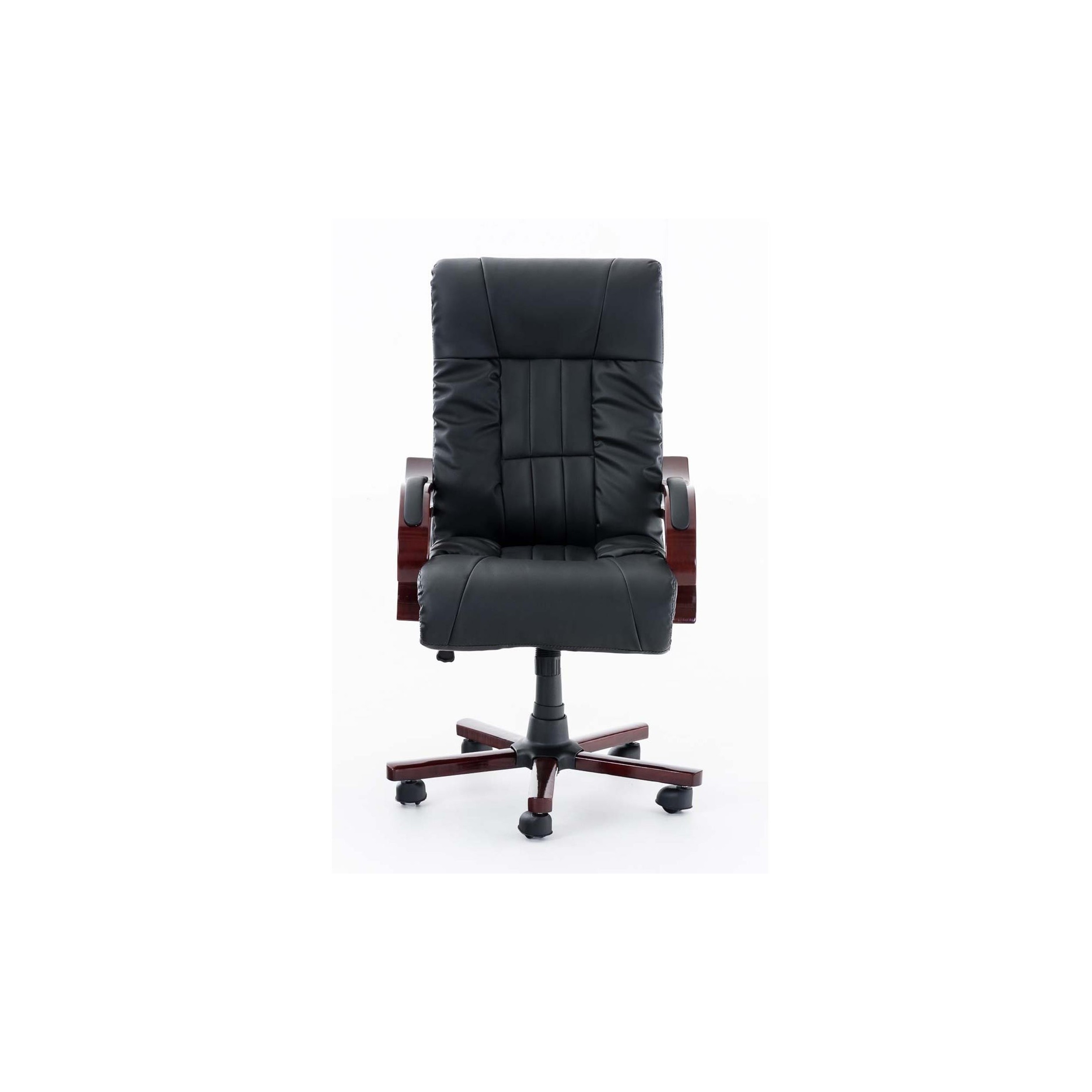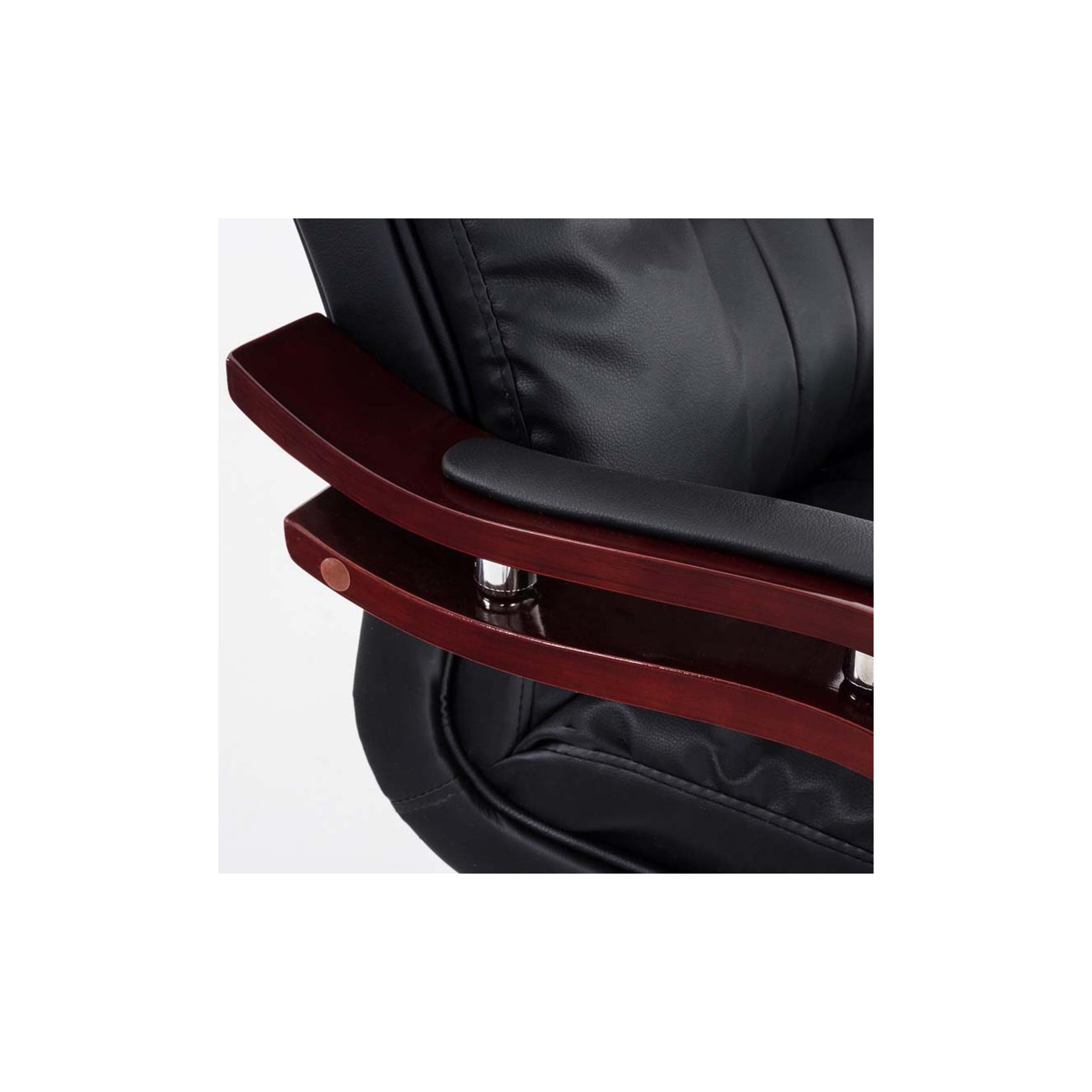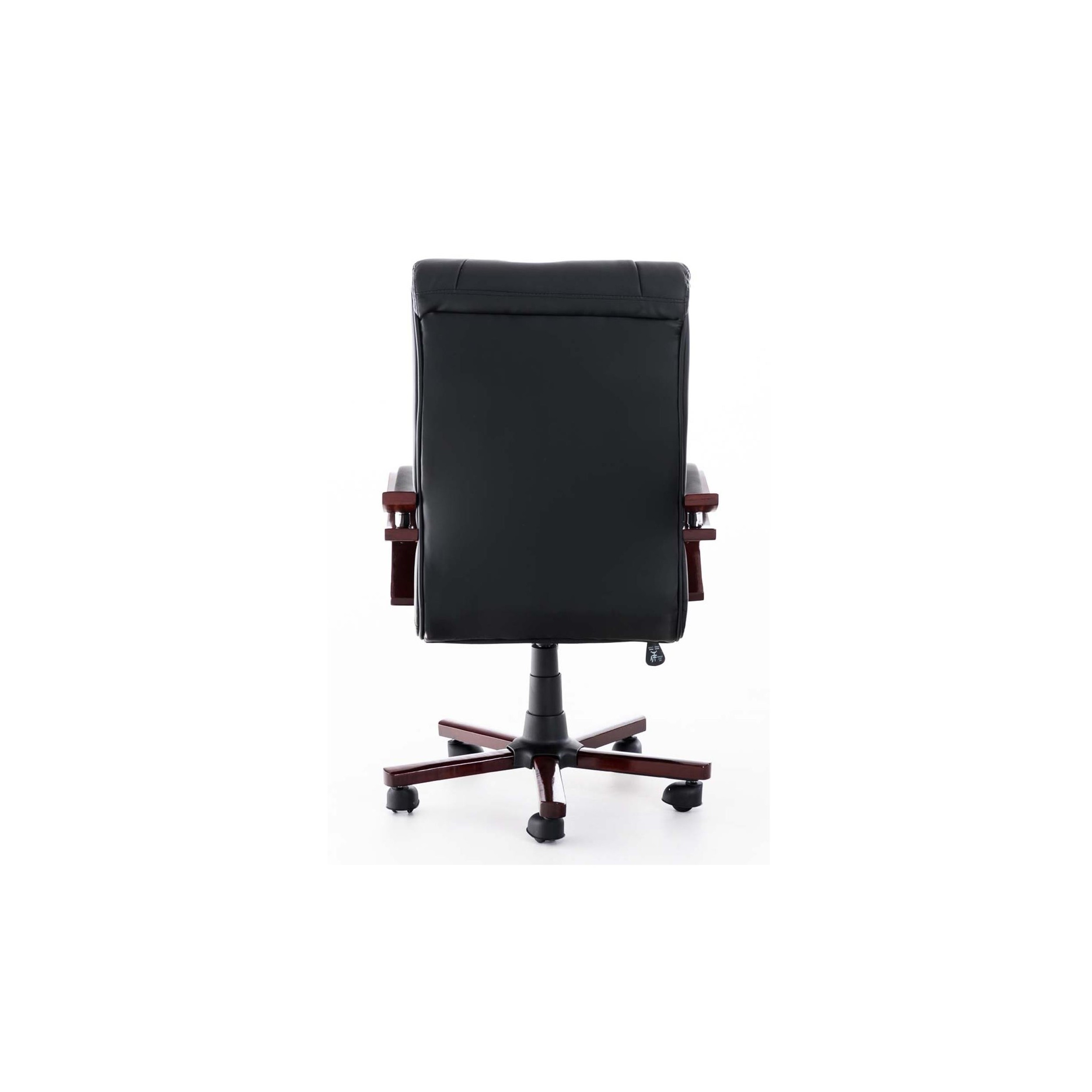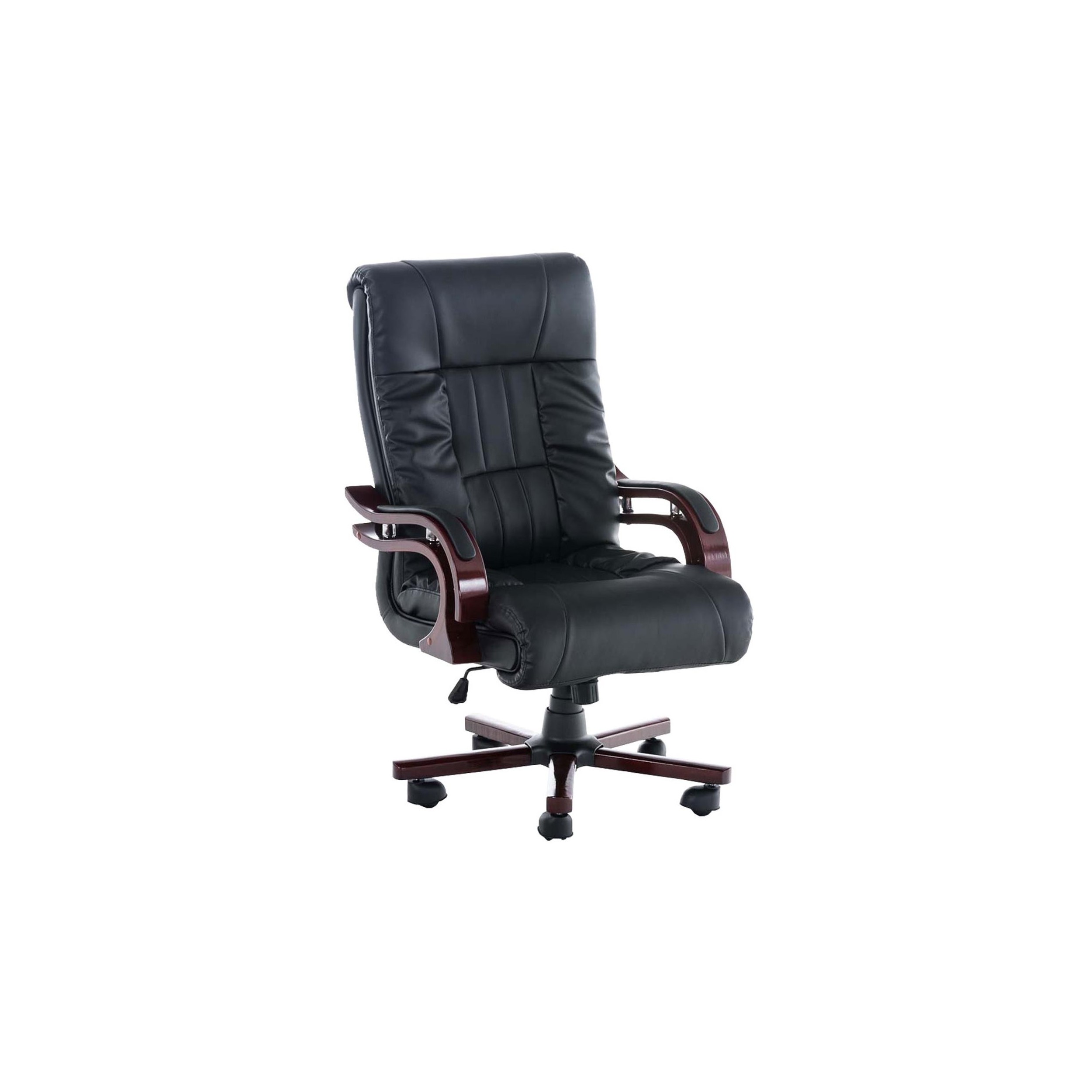 Sillón de Oficina MADOR, Reposabrazos en Madera, Grueso Acolchado en Piel color Negro