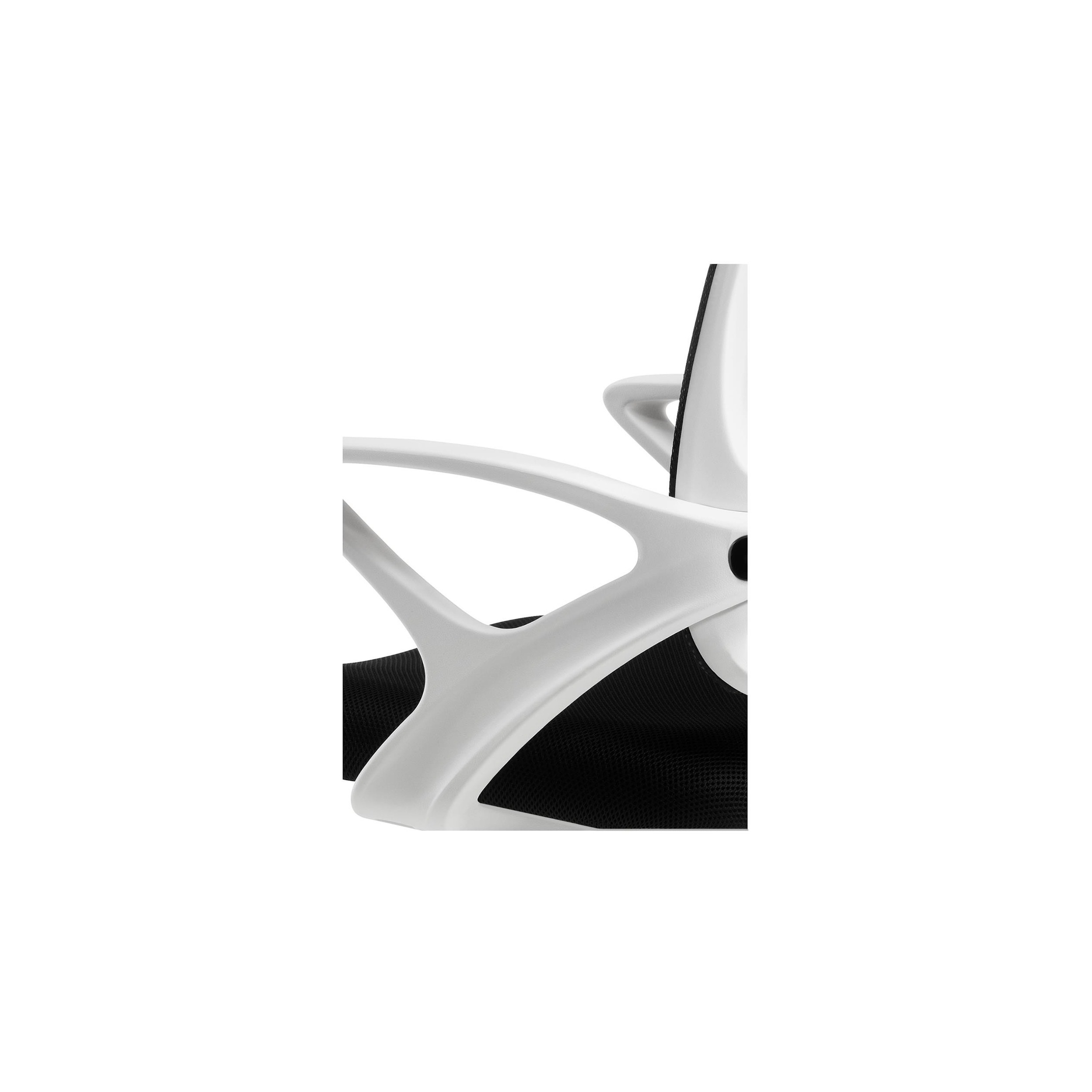 Lo más llamativo de esta silla es su impecable estructura en color blanco. El contraste entre el blanco y el negro sienta muy bien, una combinación muy acertada y que quedará bien en casi cualquier estancia. Incluso la base y las ruedas son también en blanco para lograr un conjunto perfectamente integrado.