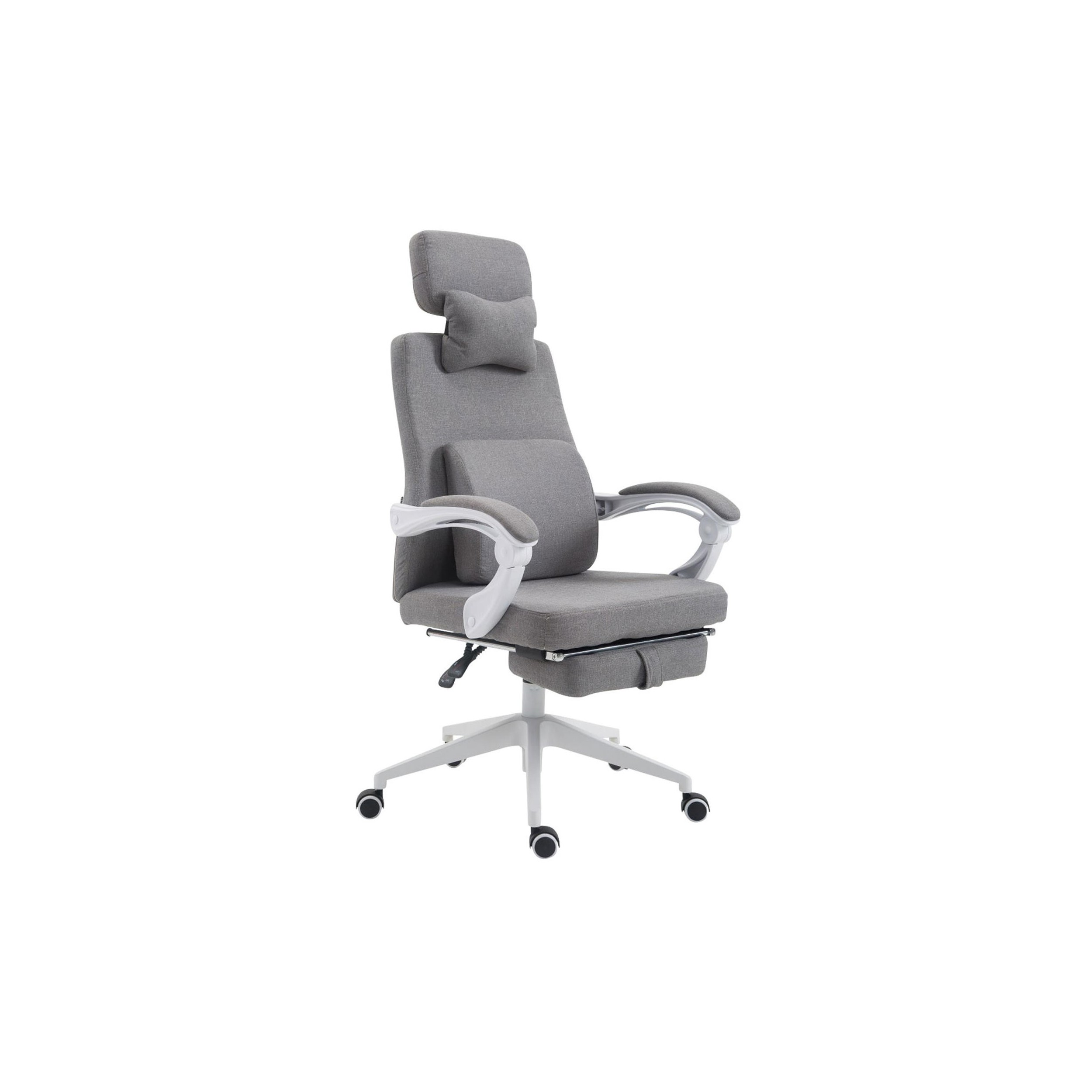 Sillón de Oficina con reposapiés extensible y cojines lumbar y cervical. Gran acolchado tapizado en tela disponible en varios colores y gran resistencia.