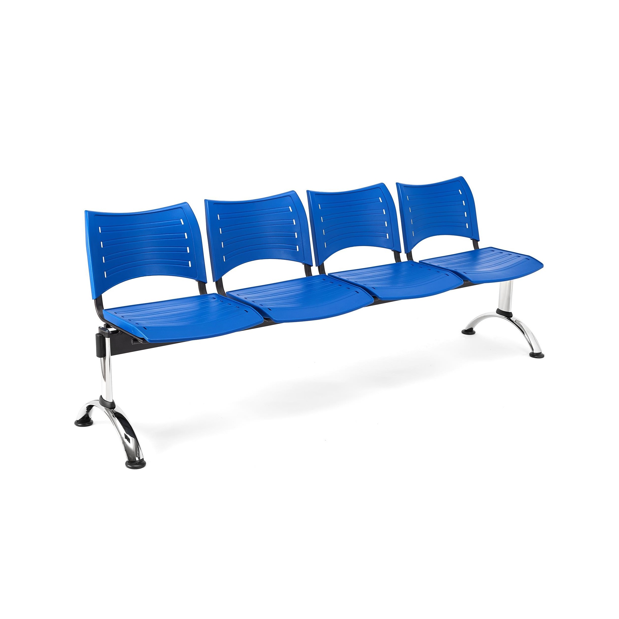 Bancada para sala de espera de 208x50 cm con estructura metálica y asientos de plástico resistente. Muy resistente, gran comodidad. Disponible en varios colores y configuraciones.