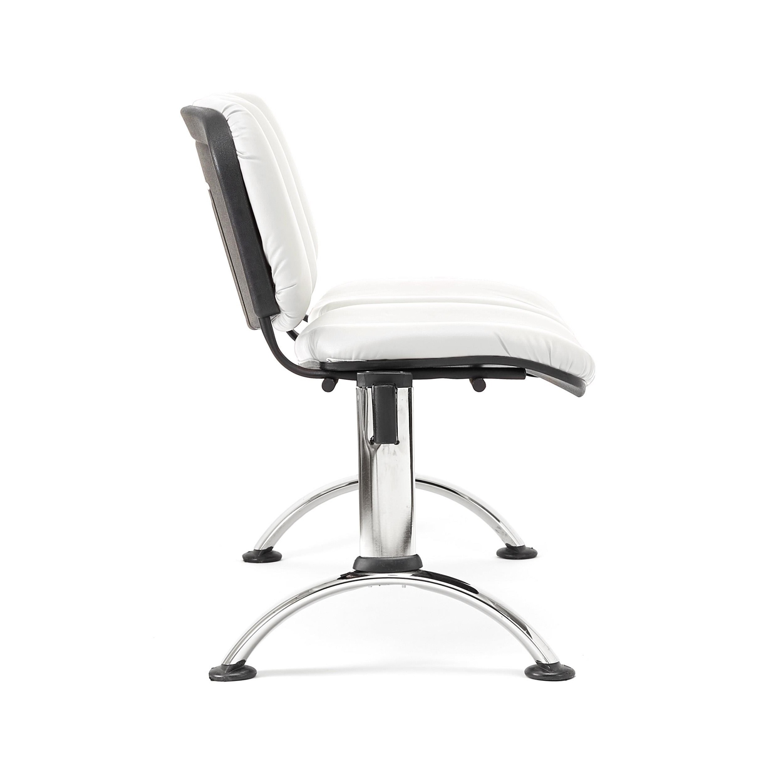 Bancada para sala de espera de 108x50 cm con estructura metálica. Muy resistente, gran comodidad y grueso acolchado tapizado en piel. Disponible en varios colores y configuraciones.