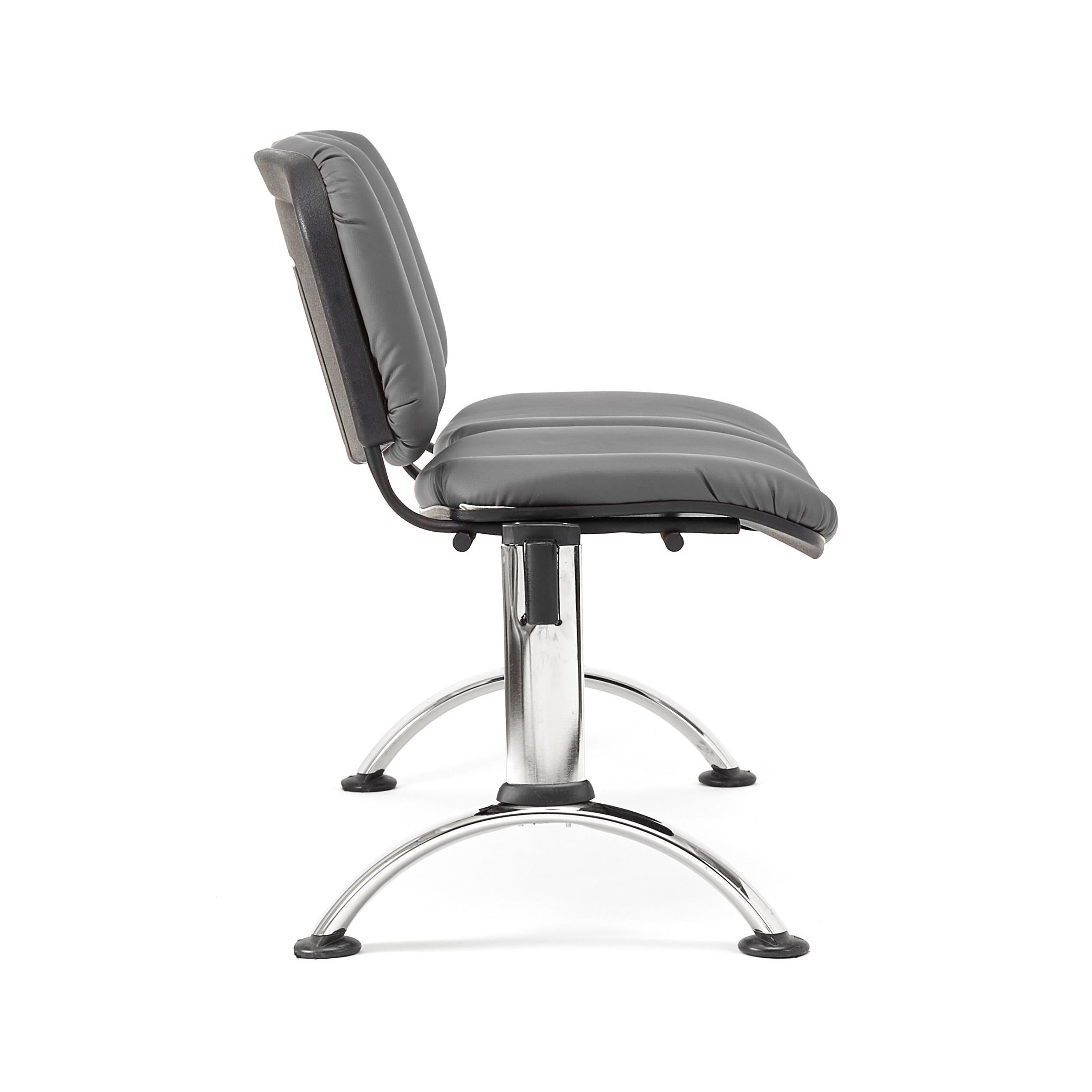Bancada para sala de espera de 108x50 cm con estructura metálica. Muy resistente, gran comodidad y grueso acolchado tapizado en piel. Disponible en varios colores y configuraciones.
