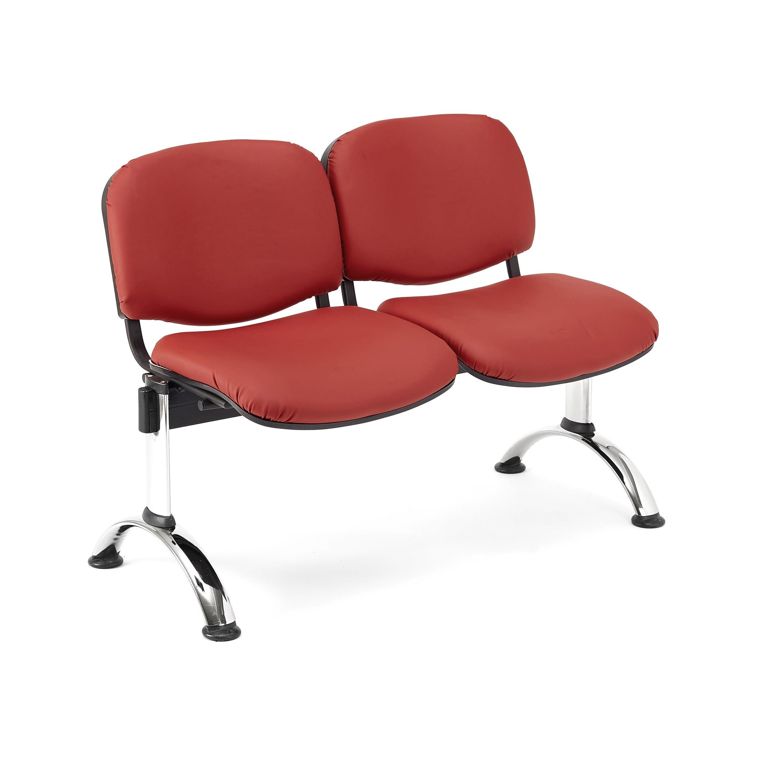 Bancada para sala de espera de 108x50 cm con estructura metálica. Muy resistente, gran comodidad y grueso acolchado tapizado en piel. Disponible en varios colores y configuraciones.