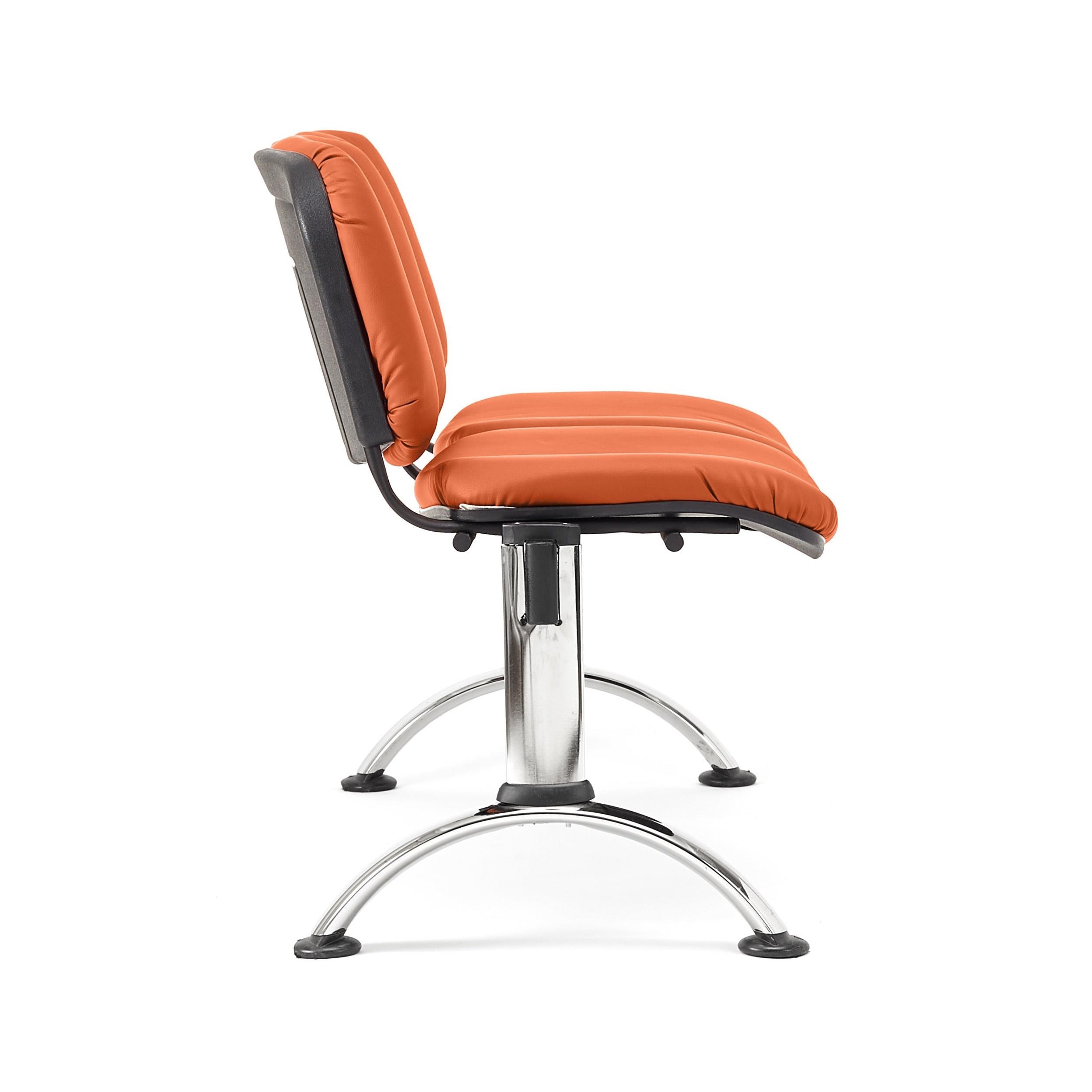 Bancada para sala de espera de 108x50 cm con estructura metálica. Muy resistente, gran comodidad y grueso acolchado tapizado en piel. Disponible en varios colores y configuraciones.