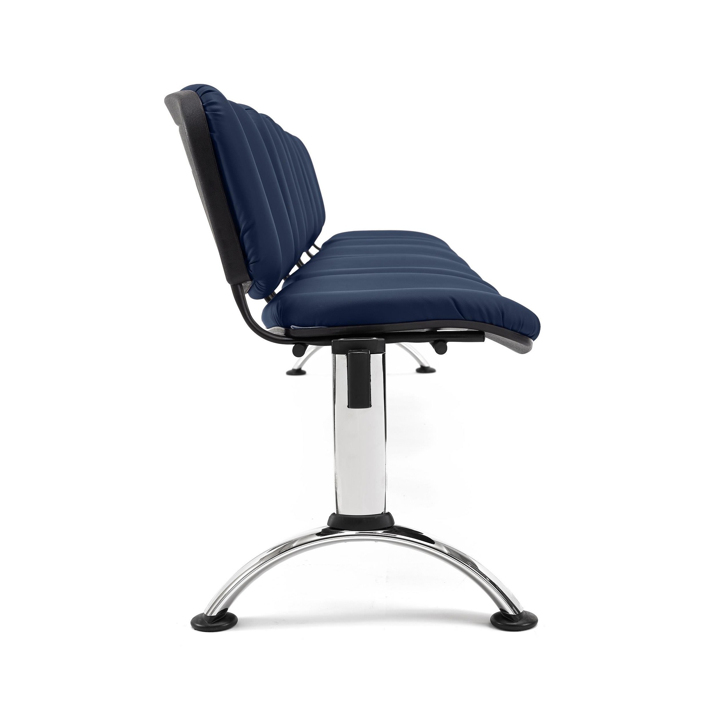 Bancada para sala de espera de 258x50 cm con estructura metálica. Muy resistente, gran comodidad y grueso acolchado tapizado en piel. Disponible en varios colores y configuraciones.