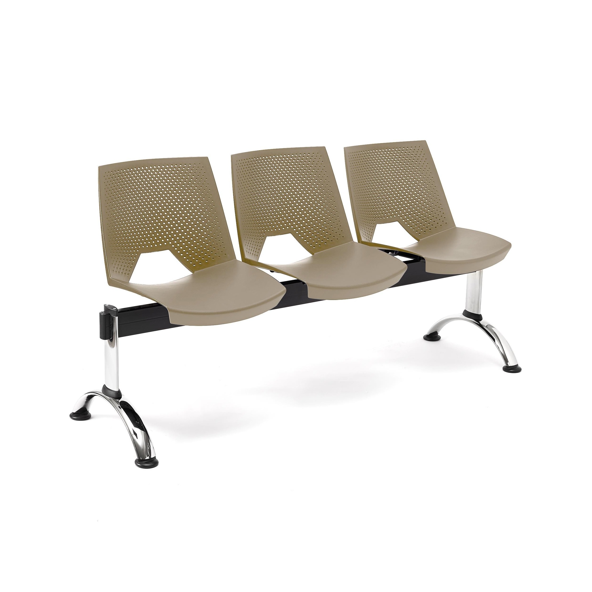 La estructura está construida en marco de acero con patas cromadas. Un material que asegura una resistencia y durabilidad máximas, algo fundamental en este tipo de asientos diseñados para utilización intensiva. También queda garantizada una mayor estabilidad puesto que las bancadas tienen la ventaja de ser más robustas que las sillas individuales.