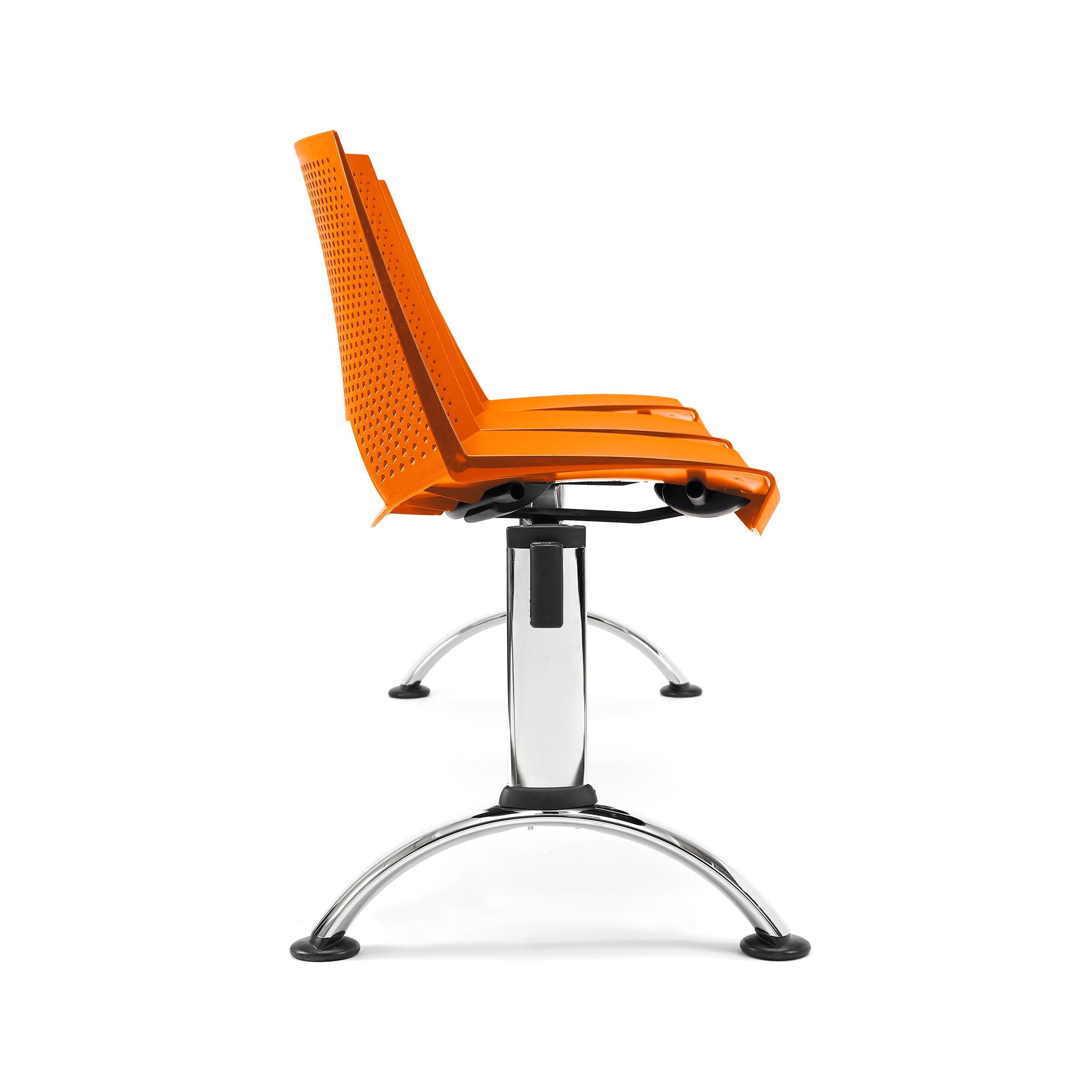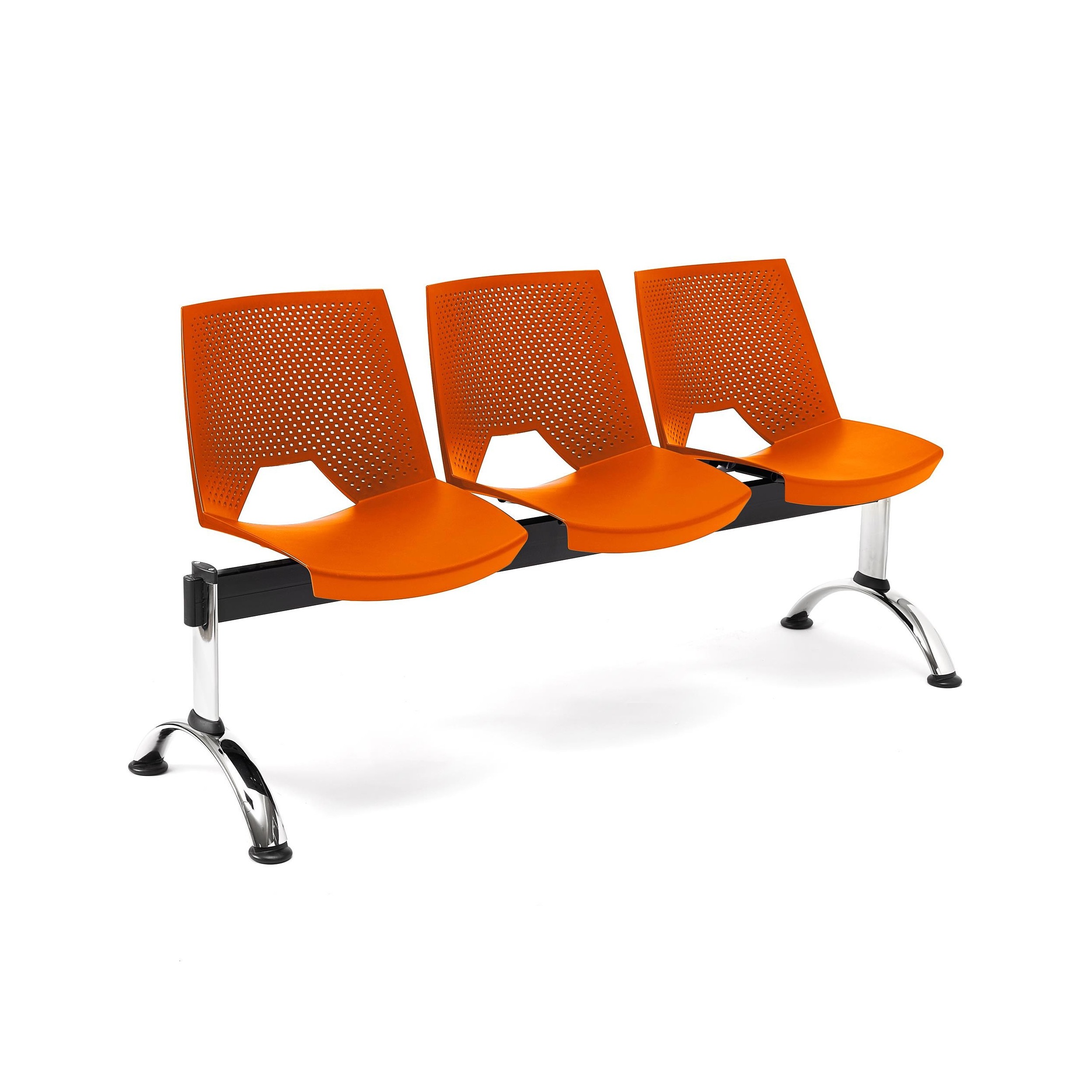 La estructura está construida en marco de acero con patas cromadas. Un material que asegura una resistencia y durabilidad máximas, algo fundamental en este tipo de asientos diseñados para utilización intensiva. También queda garantizada una mayor estabilidad puesto que las bancadas tienen la ventaja de ser más robustas que las sillas individuales.
