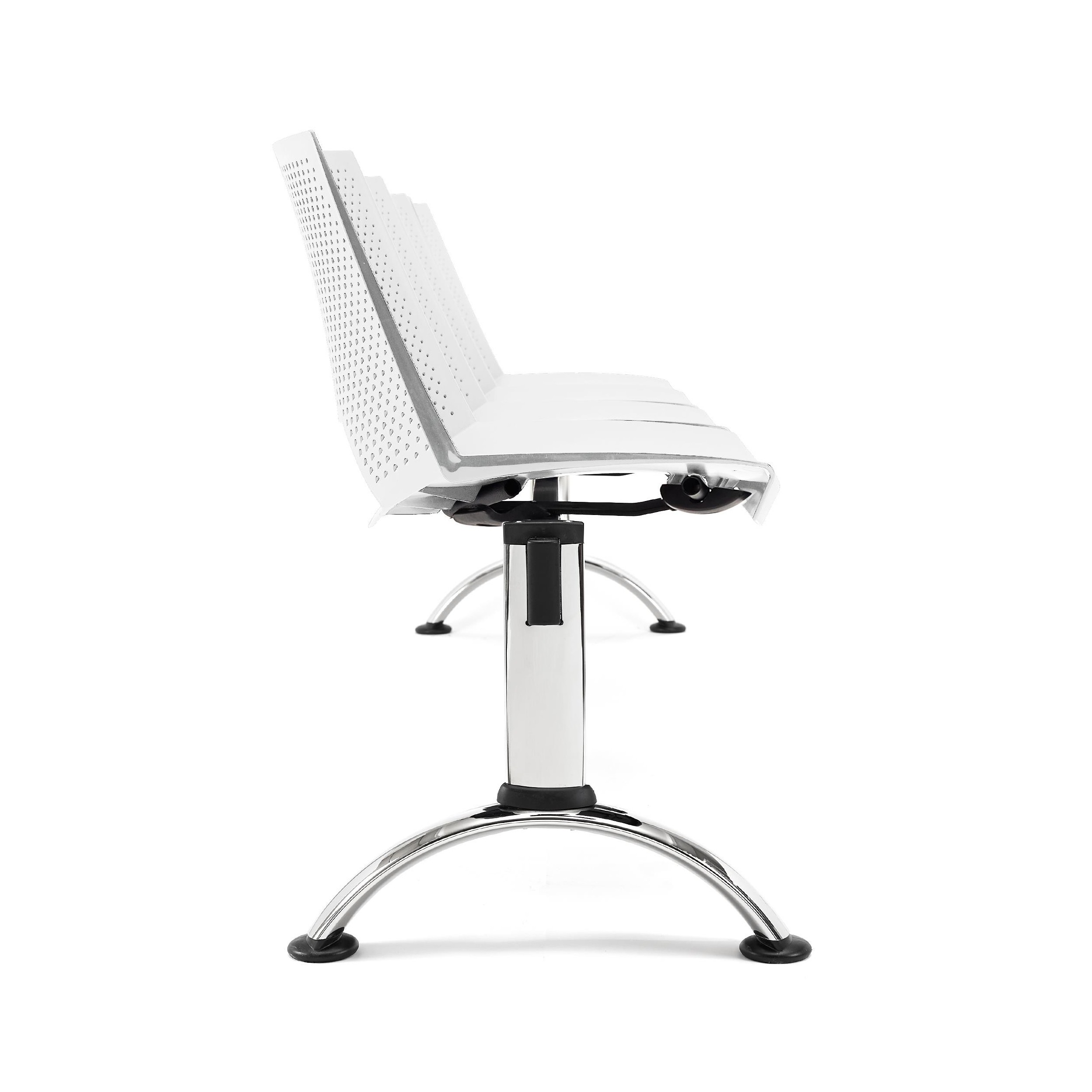 La estructura está construida en marco de acero con patas cromadas. Un material que asegura una resistencia y durabilidad máximas, algo fundamental en este tipo de asientos diseñados para utilización intensiva. También queda garantizada una mayor estabilidad puesto que las bancadas tienen la ventaja de ser más robustas que las sillas individuales.