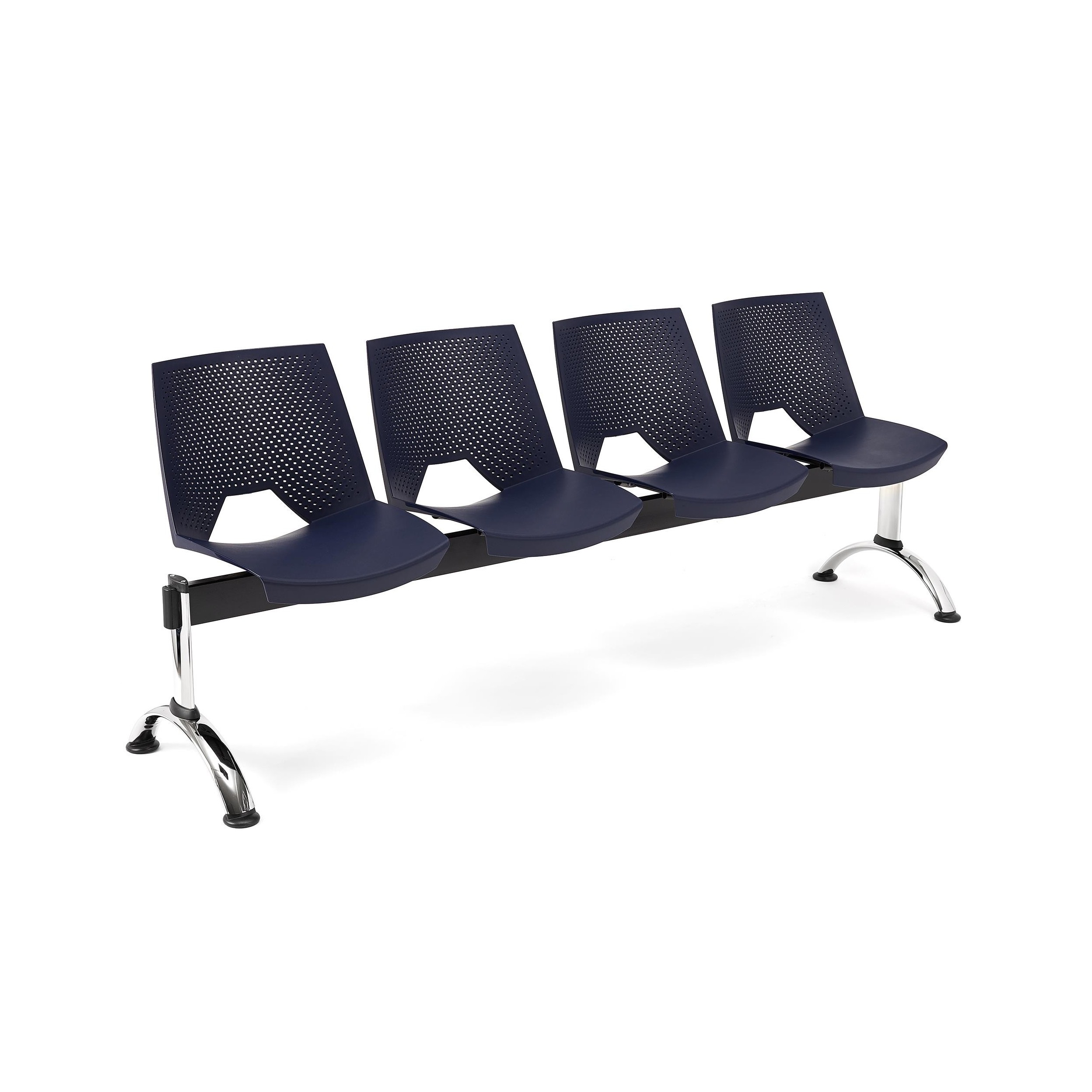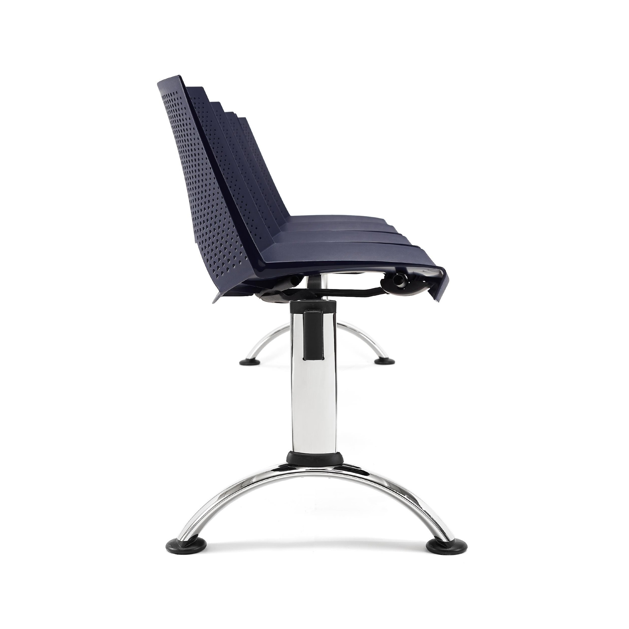 La estructura está construida en marco de acero con patas cromadas. Un material que asegura una resistencia y durabilidad máximas, algo fundamental en este tipo de asientos diseñados para utilización intensiva. También queda garantizada una mayor estabilidad puesto que las bancadas tienen la ventaja de ser más robustas que las sillas individuales.