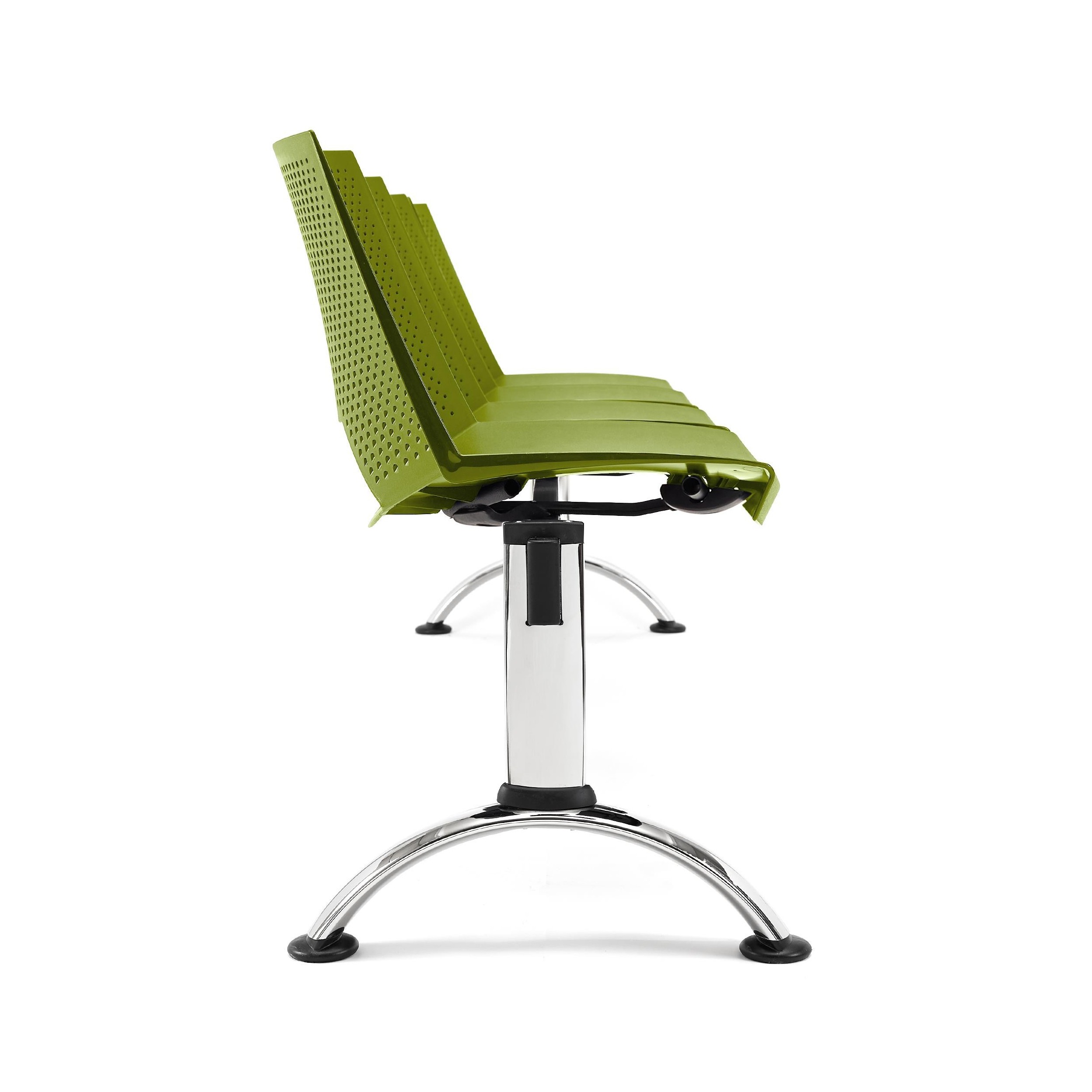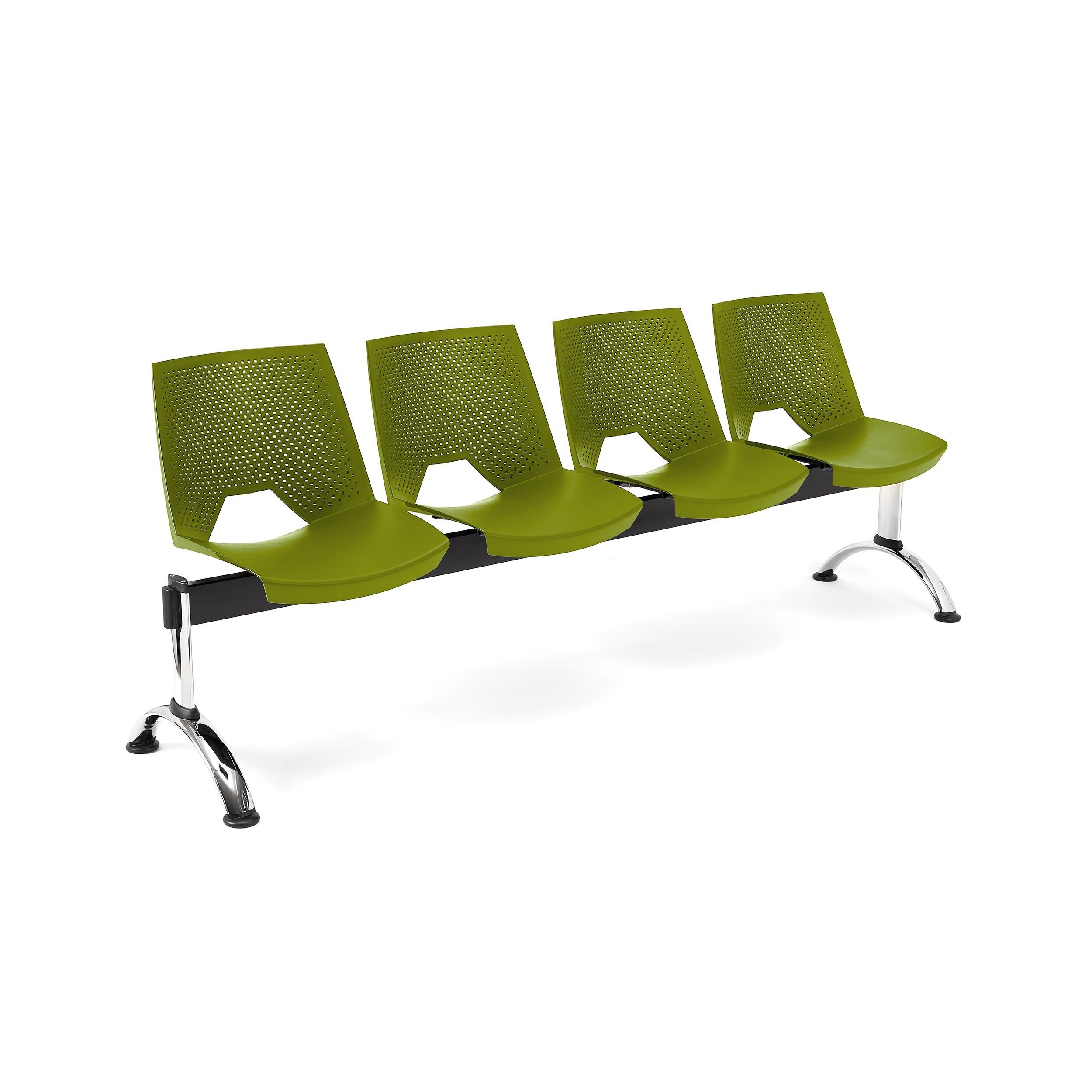 La estructura está construida en marco de acero con patas cromadas. Un material que asegura una resistencia y durabilidad máximas, algo fundamental en este tipo de asientos diseñados para utilización intensiva. También queda garantizada una mayor estabilidad puesto que las bancadas tienen la ventaja de ser más robustas que las sillas individuales.