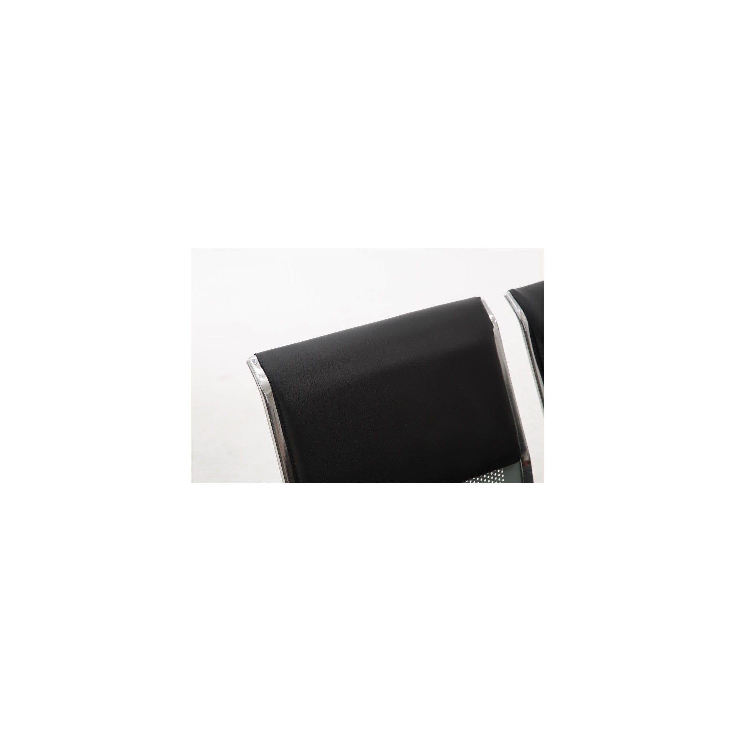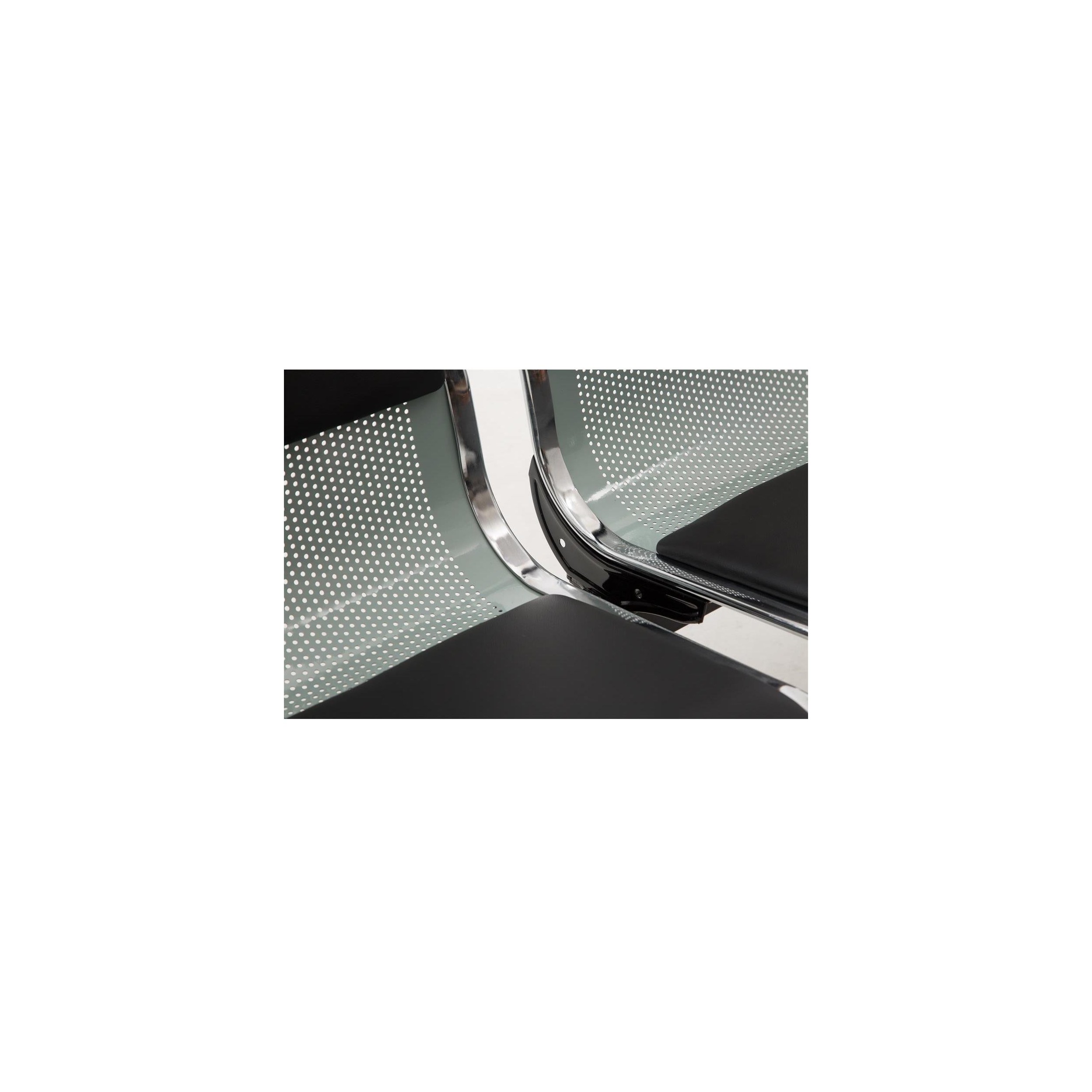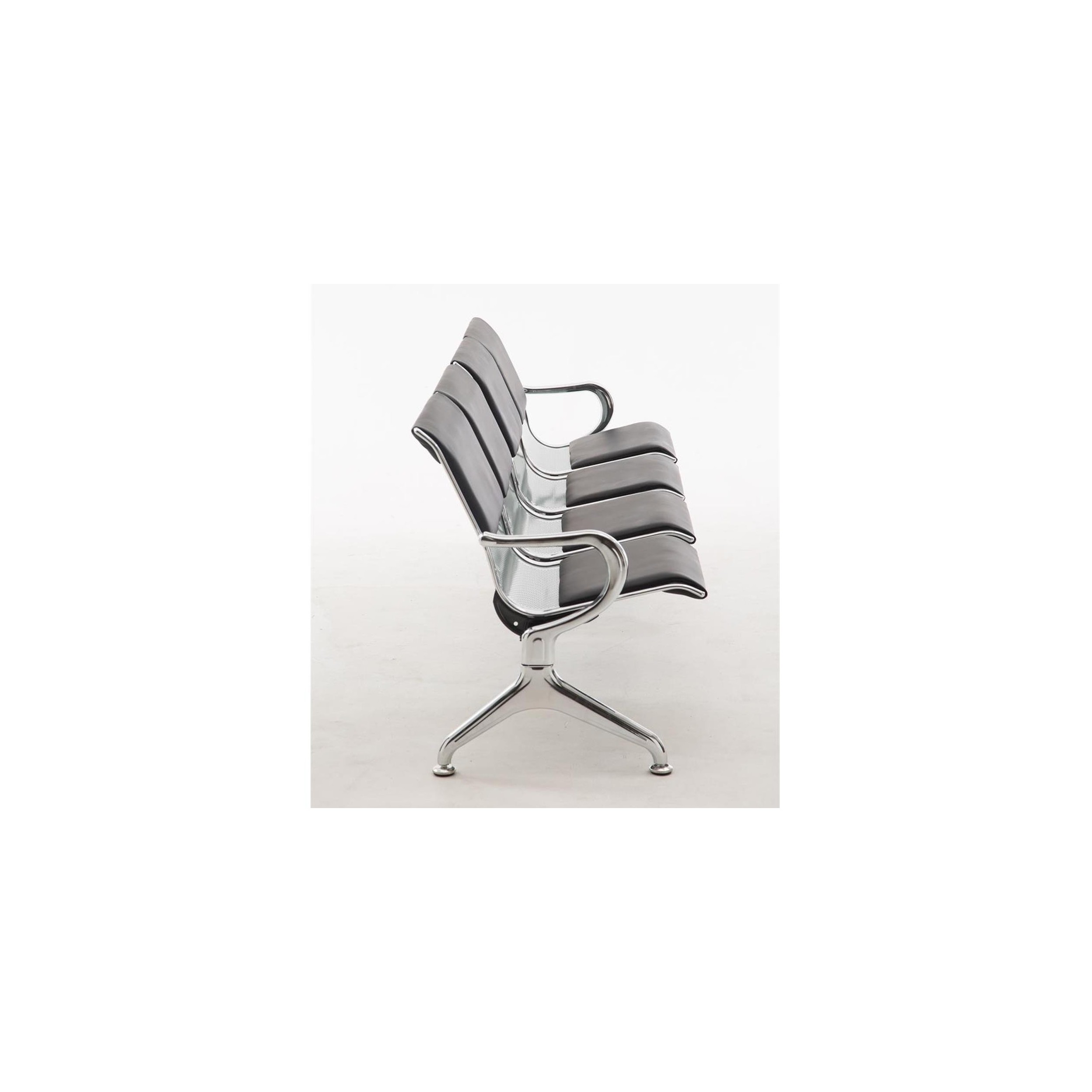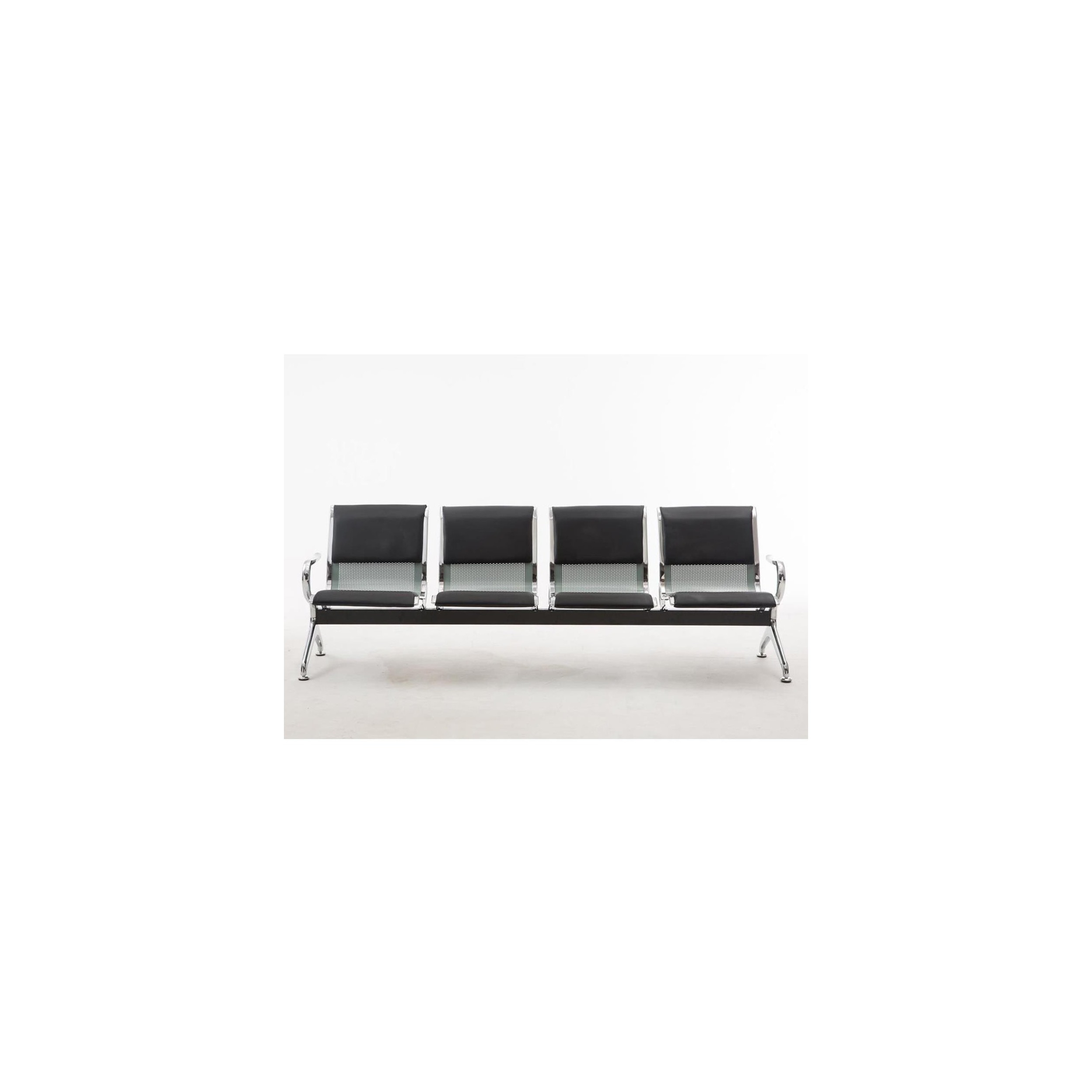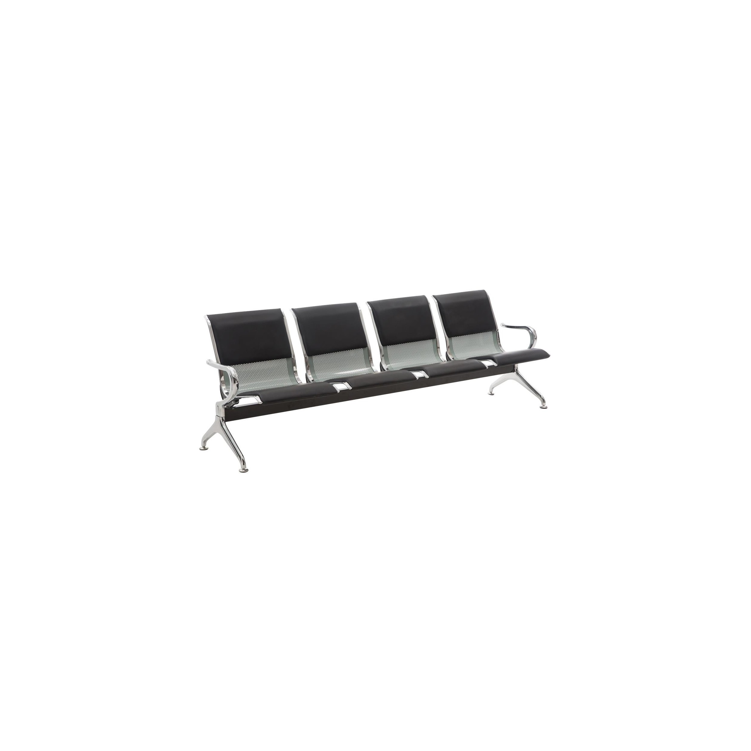 Bancada 4 Asientos AUREA, Estructura Metal, Asiento en Metal Gris plata y Piel Negra
