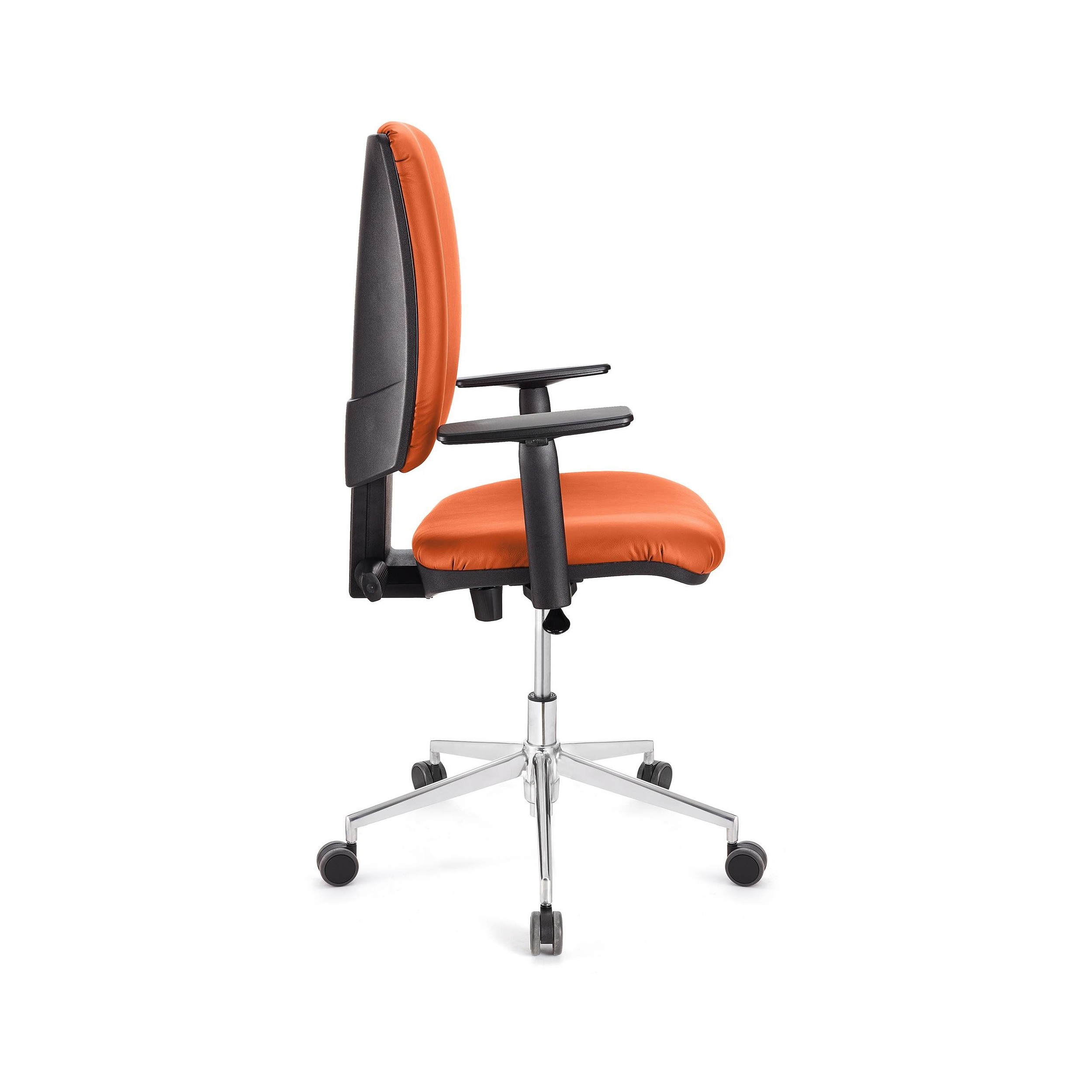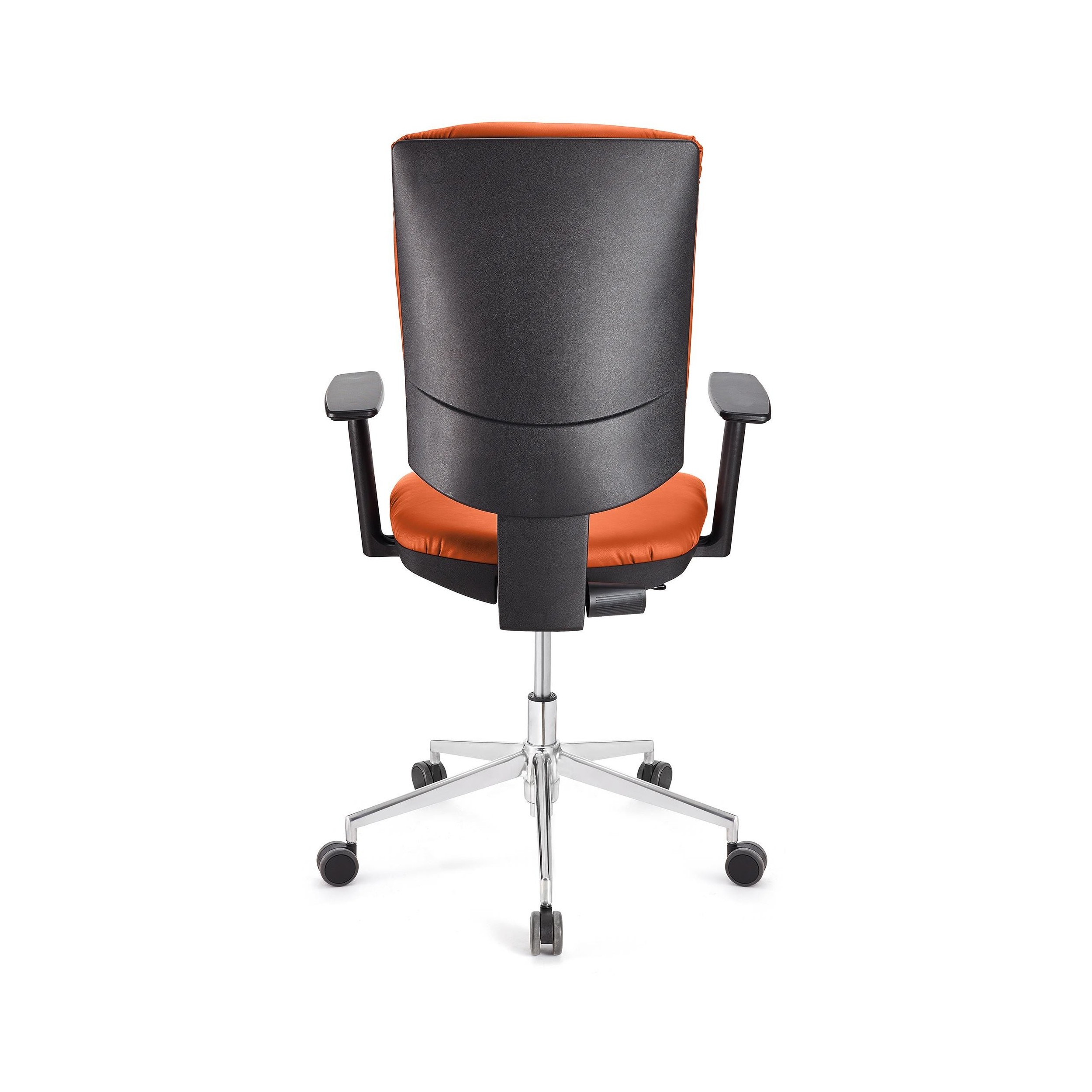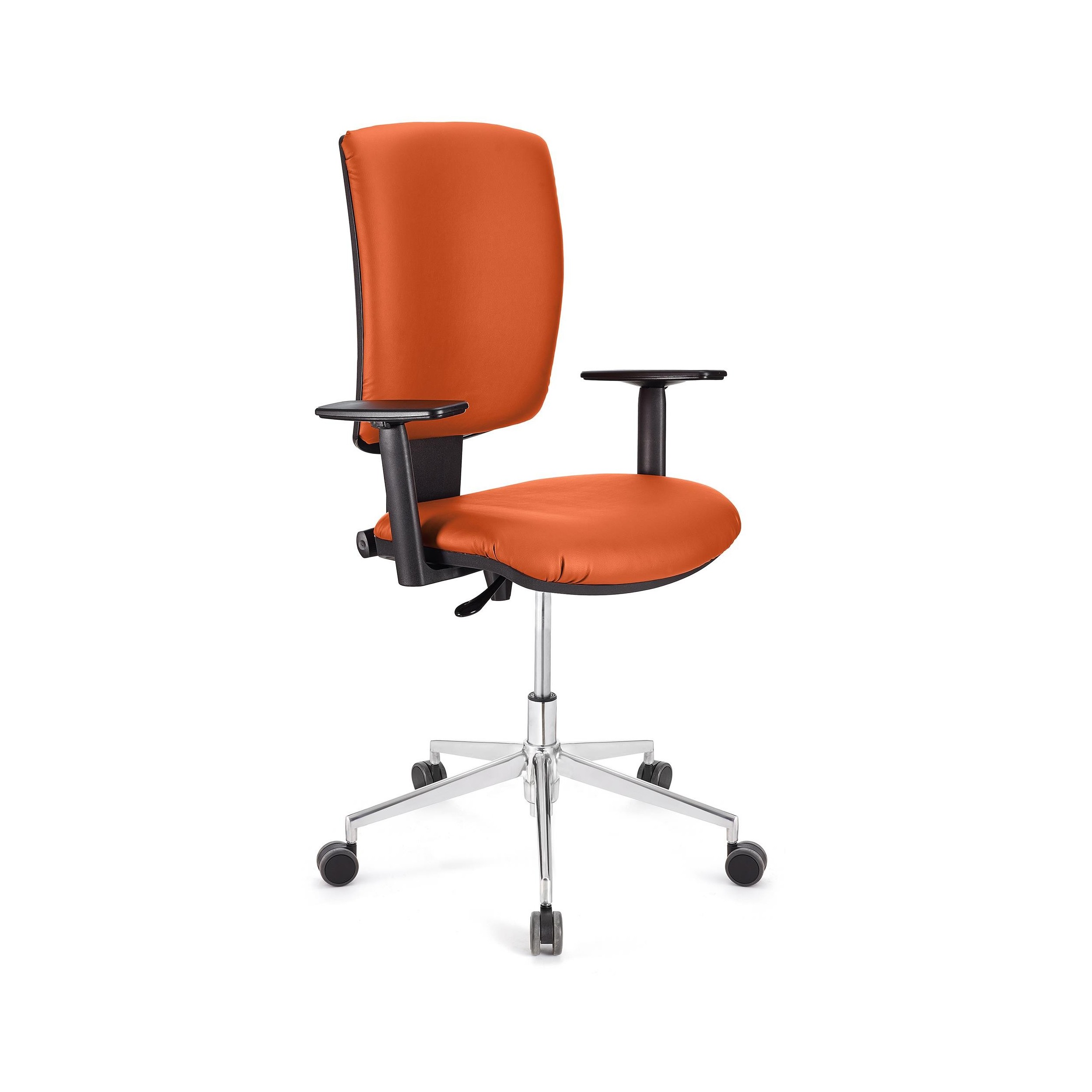 Silla FLASH, respaldo y asiento piel naranja, brazos ajustables, base metal