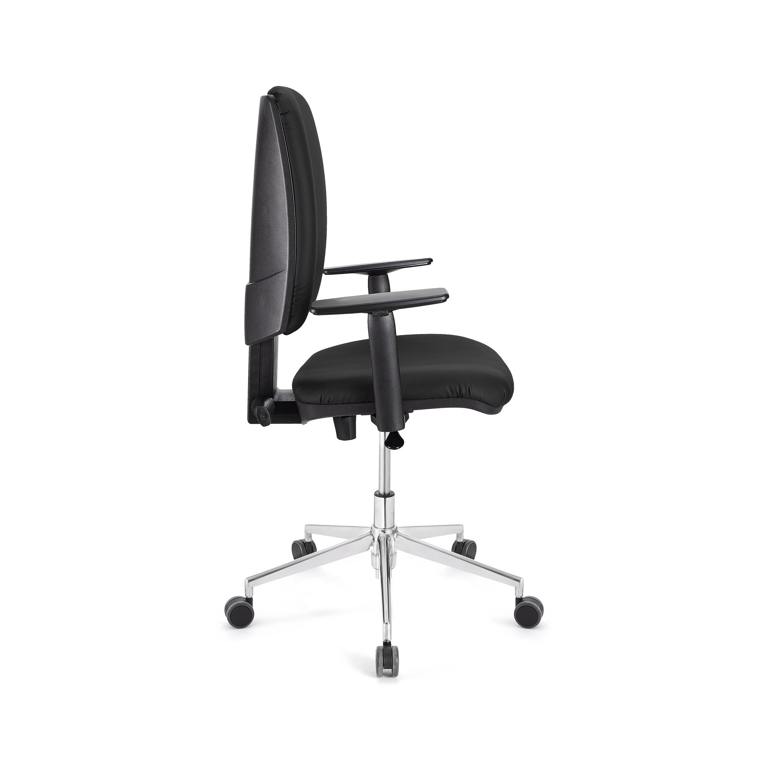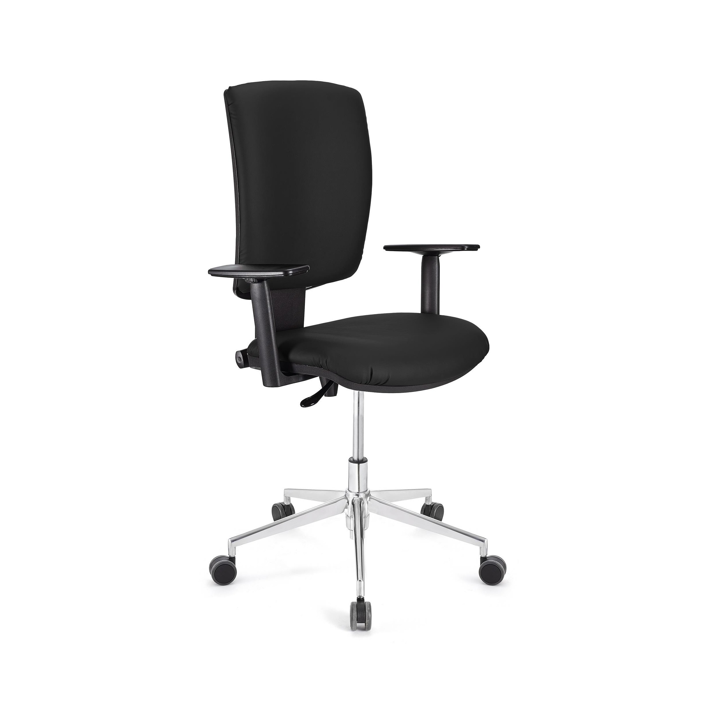 Silla FLASH, respaldo y asiento piel negra, brazos ajustables, base metal