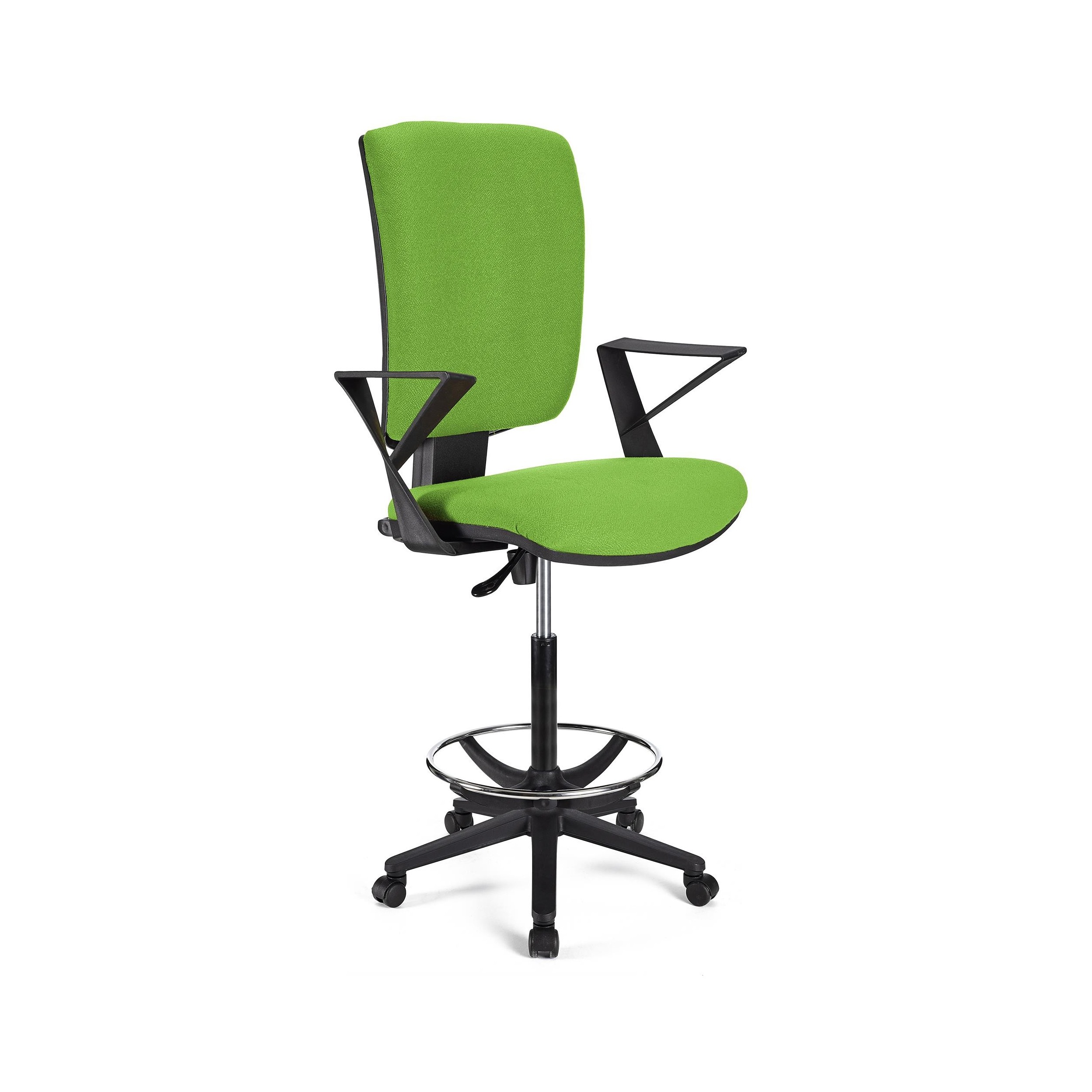 Taburete FLASH, respaldo y asiento tela BONDAI verde, brazos fijos, base plástico