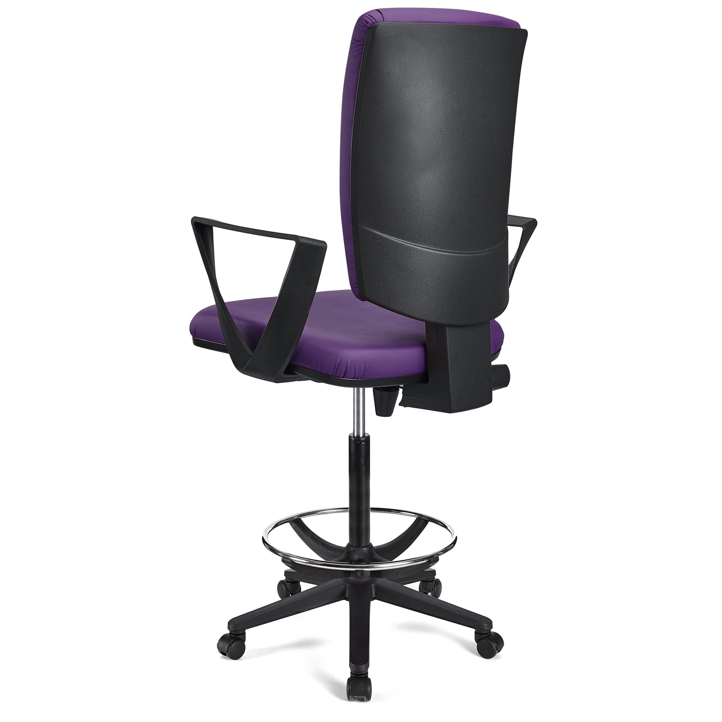 Taburete FLASH, respaldo y asiento piel morada, brazos fijos, base plástico