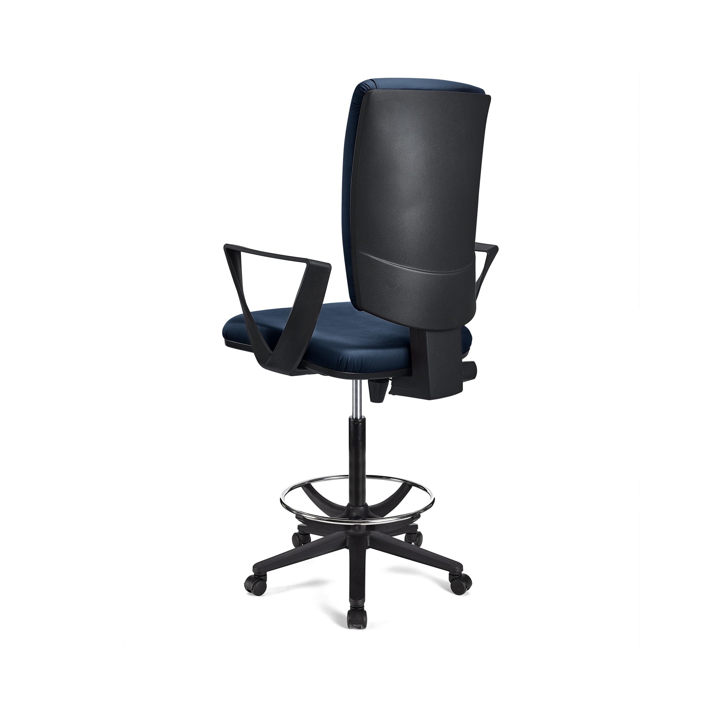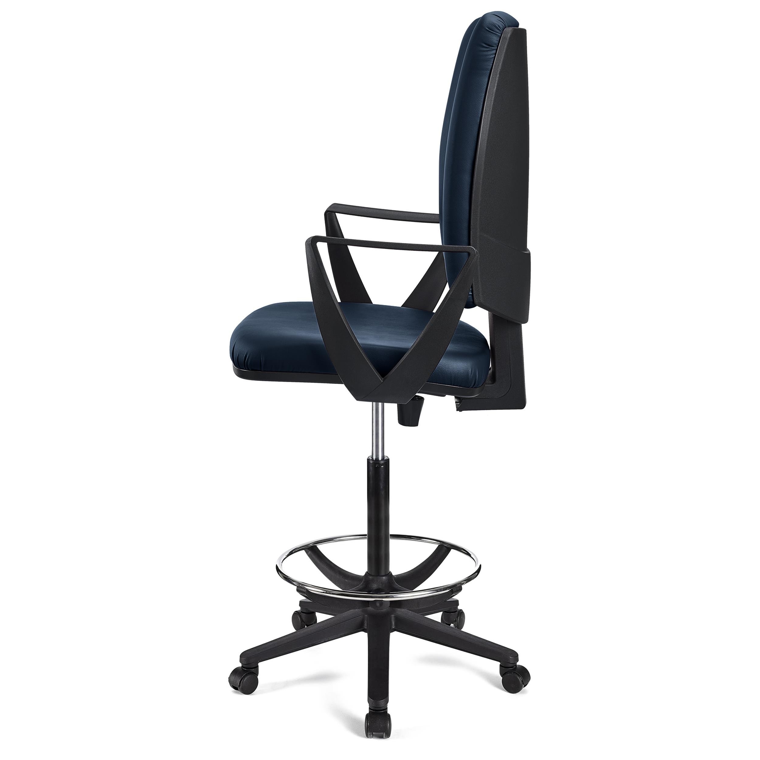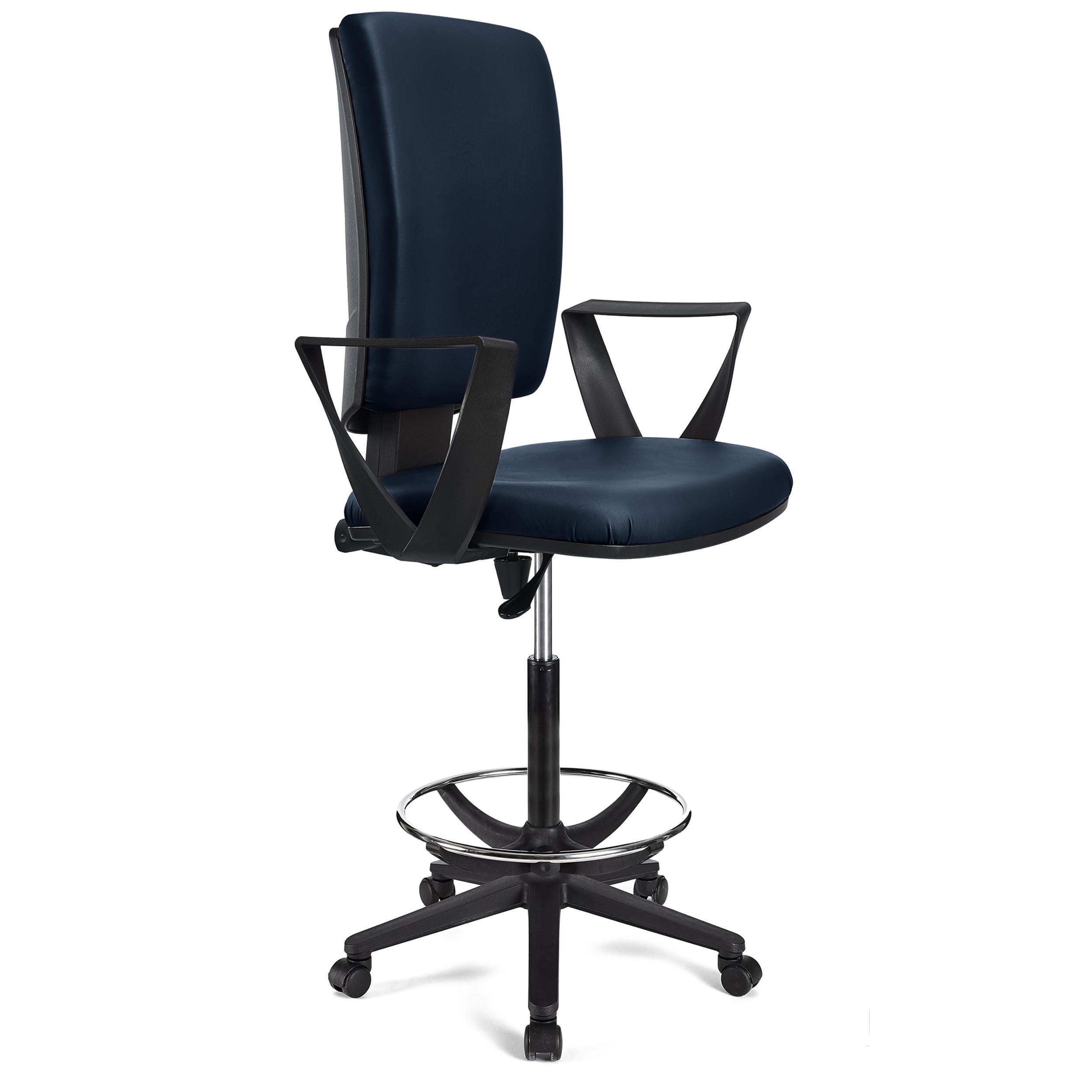 Si estás buscando un taburete que cumpla todos los requisitos de uso en una oficina, has dado con un modelo que puede cumplir con lo que necesitas: el taburete de trabajo ATLAS PIEL. Reúne todas las ventajas de una silla de oficina ofreciendo la altura propia de un taburete. Es perfecto para uso en mesas altas, recepciones o mostradores.