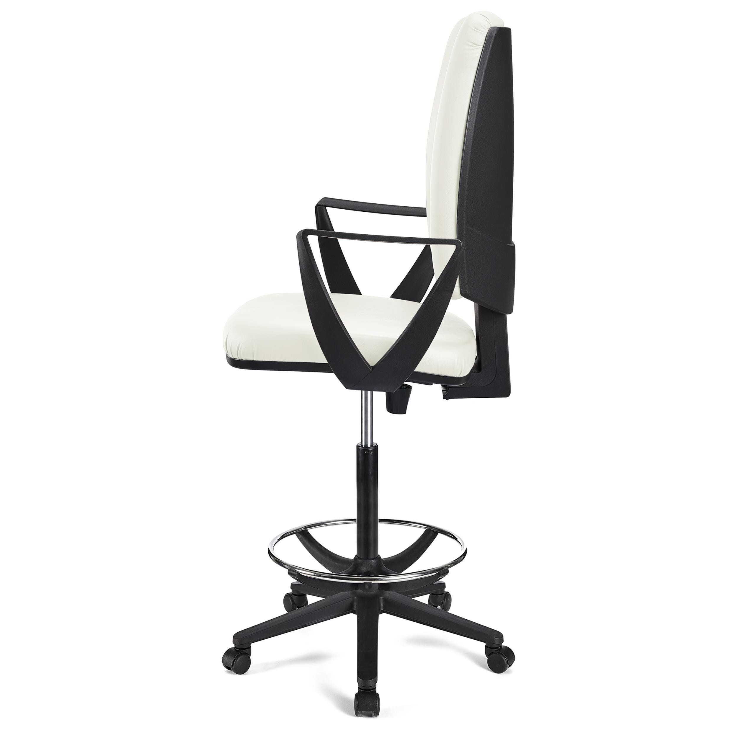 Taburete FLASH, respaldo y asiento piel blanca, brazos fijos, base plástico