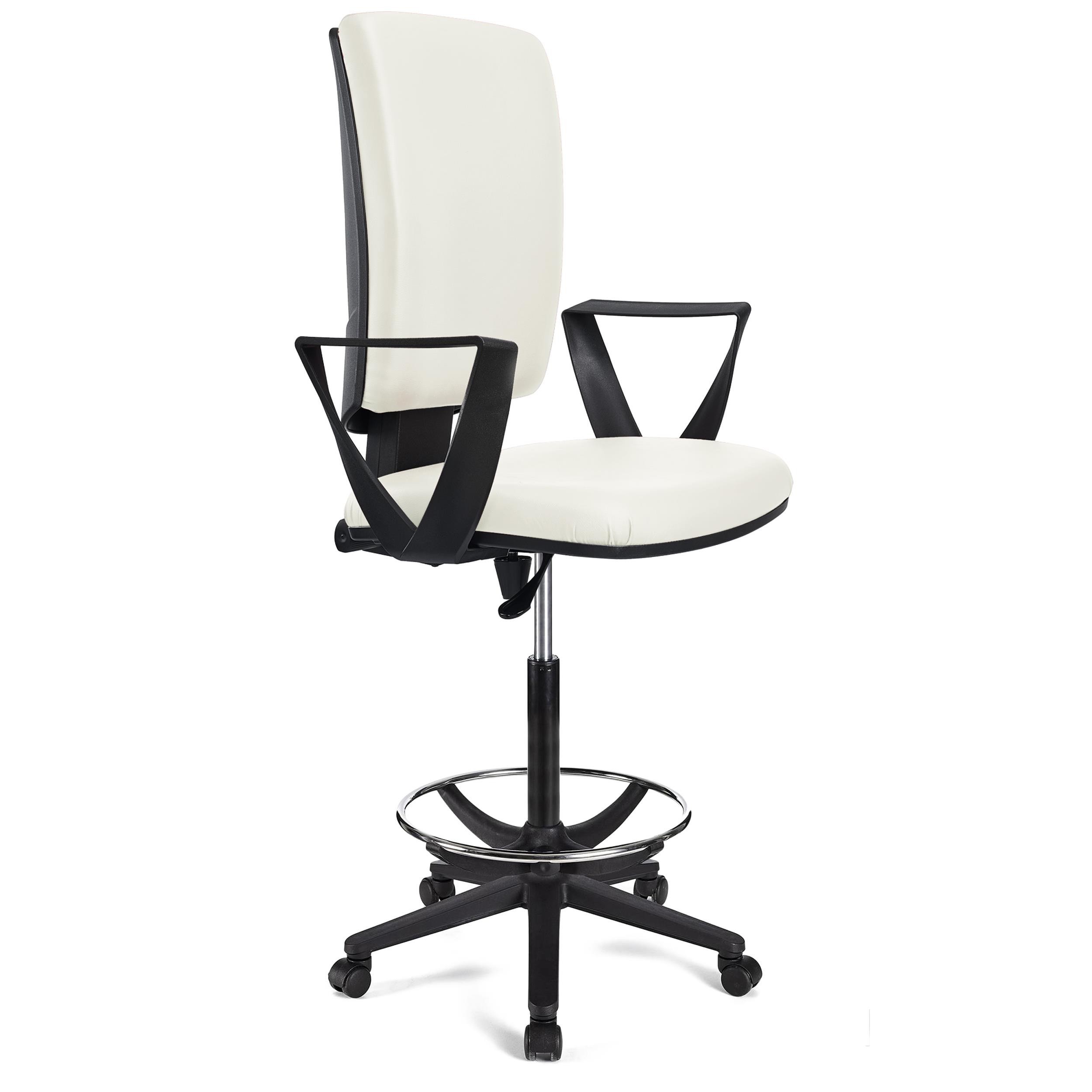 Si estás buscando un taburete que cumpla todos los requisitos de uso en una oficina, has dado con un modelo que puede cumplir con lo que necesitas: el taburete de trabajo ATLAS PIEL. Reúne todas las ventajas de una silla de oficina ofreciendo la altura propia de un taburete. Es perfecto para uso en mesas altas, recepciones o mostradores.