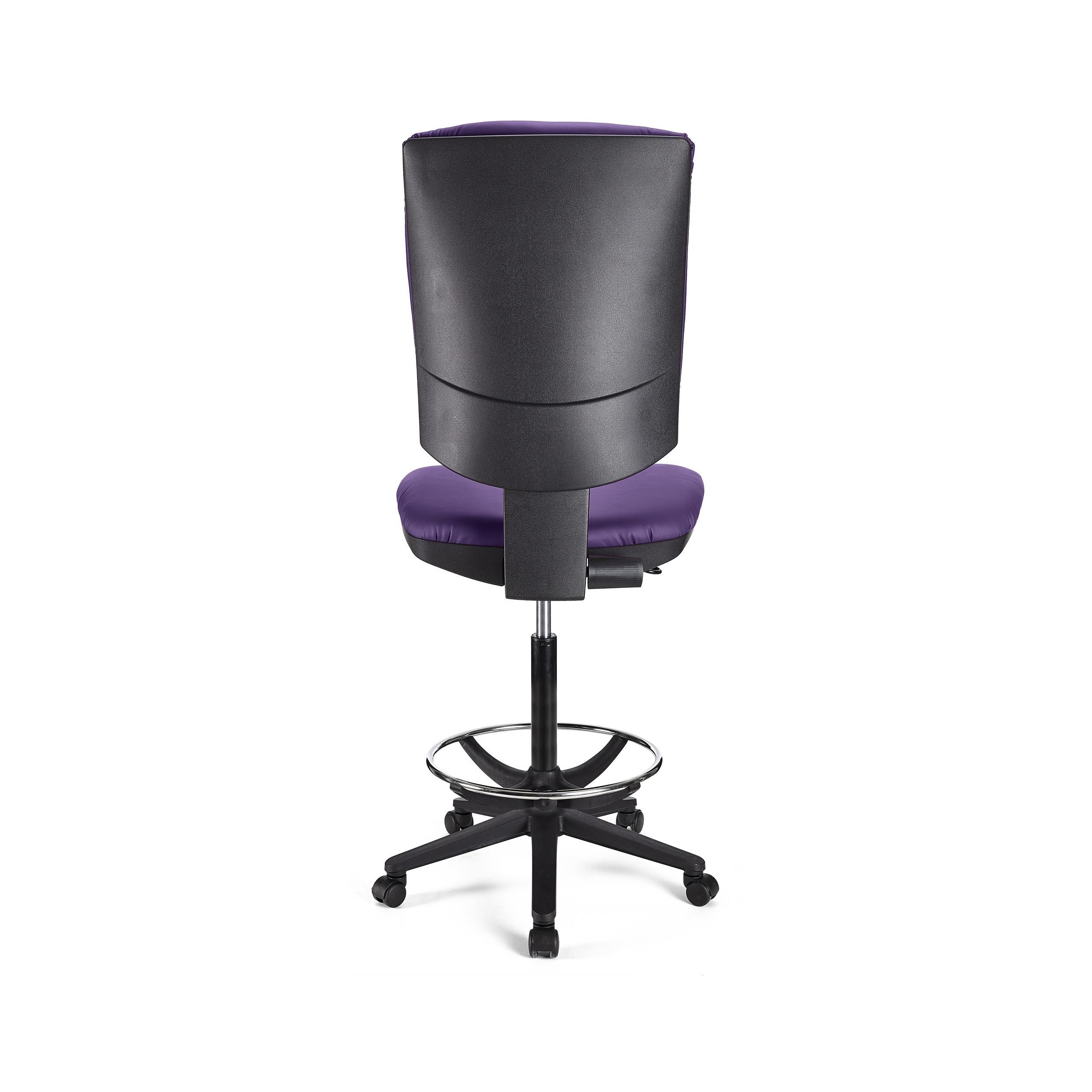 Estamos ante un taburete realmente confortable. El respaldo tiene grueso acolchado y formas ergonómicas. Es muy cómodo gracias a su acolchado que es suave para una sensación agradable pero a su vez firme para evitar la fatiga y favorecer un adecuado apoyo de la espalda. Por si fuera poco, es ajustable en profundidad, ideal para conseguir una óptima postura corporal de forma cómoda y sencilla. Su amplio asiento también cuenta con un generoso acolchado.