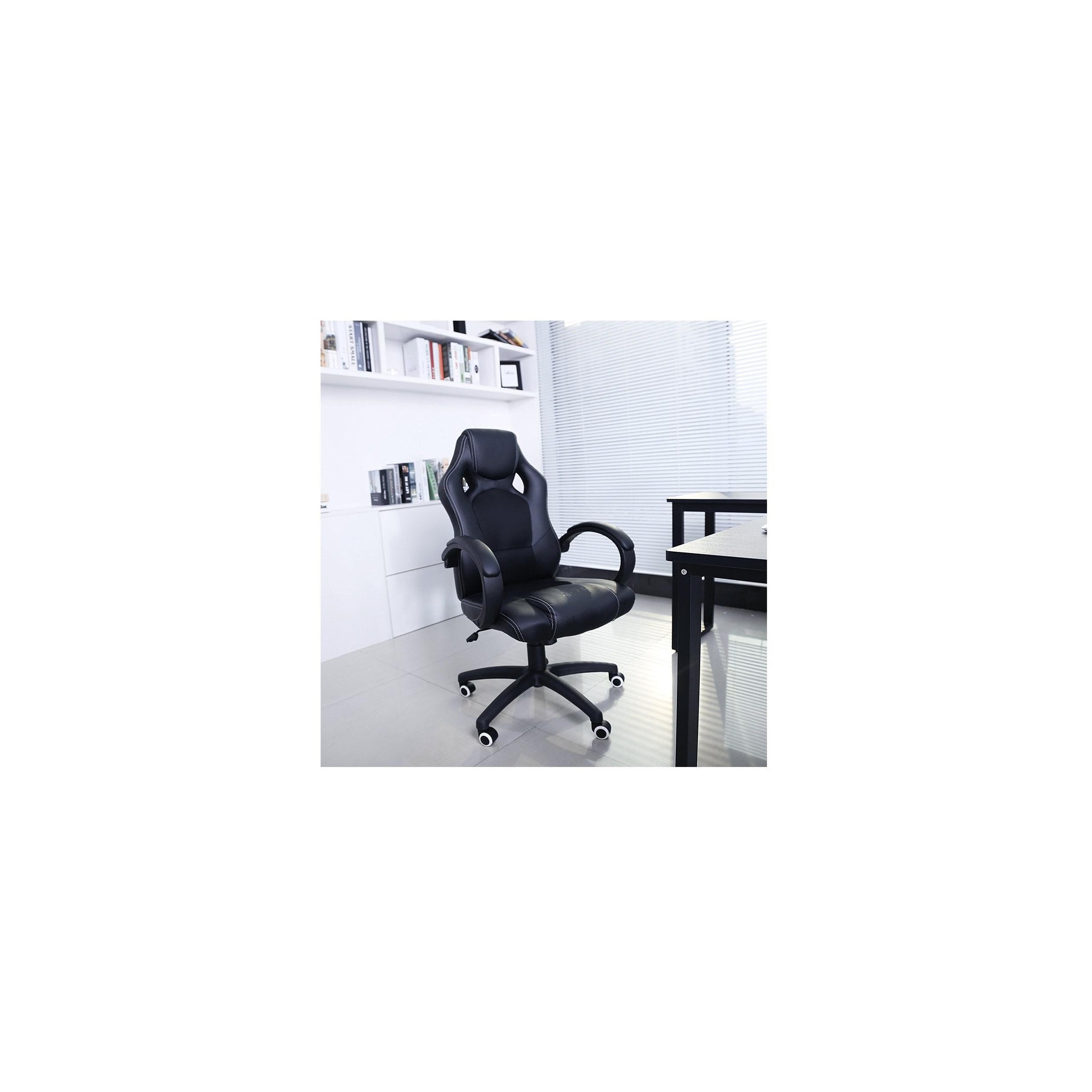 Silla de Oficina ARTY, Diseño Deportivo, en Piel color Negro