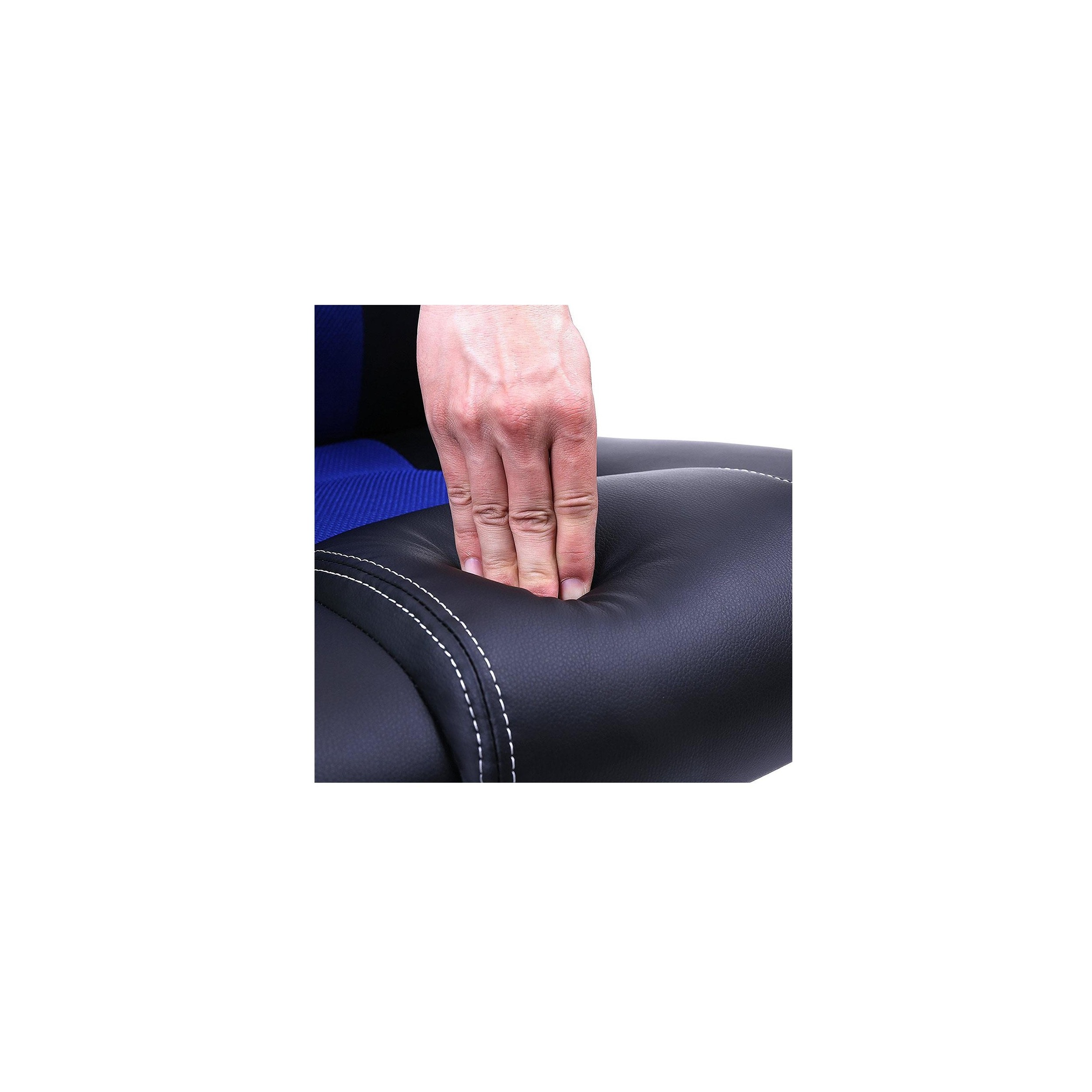 Mención especial requiere el tapizado de este modelo. Es en piel sintética y tela transpirable, una combinación muy característica en asientos de estilo deportivo. La piel sintética es de gran calidad y es especialmente resistente y de fácil cuidado. Las zonas centrales en tela ofrecen una sensación realmente placentera que marca la diferencia.