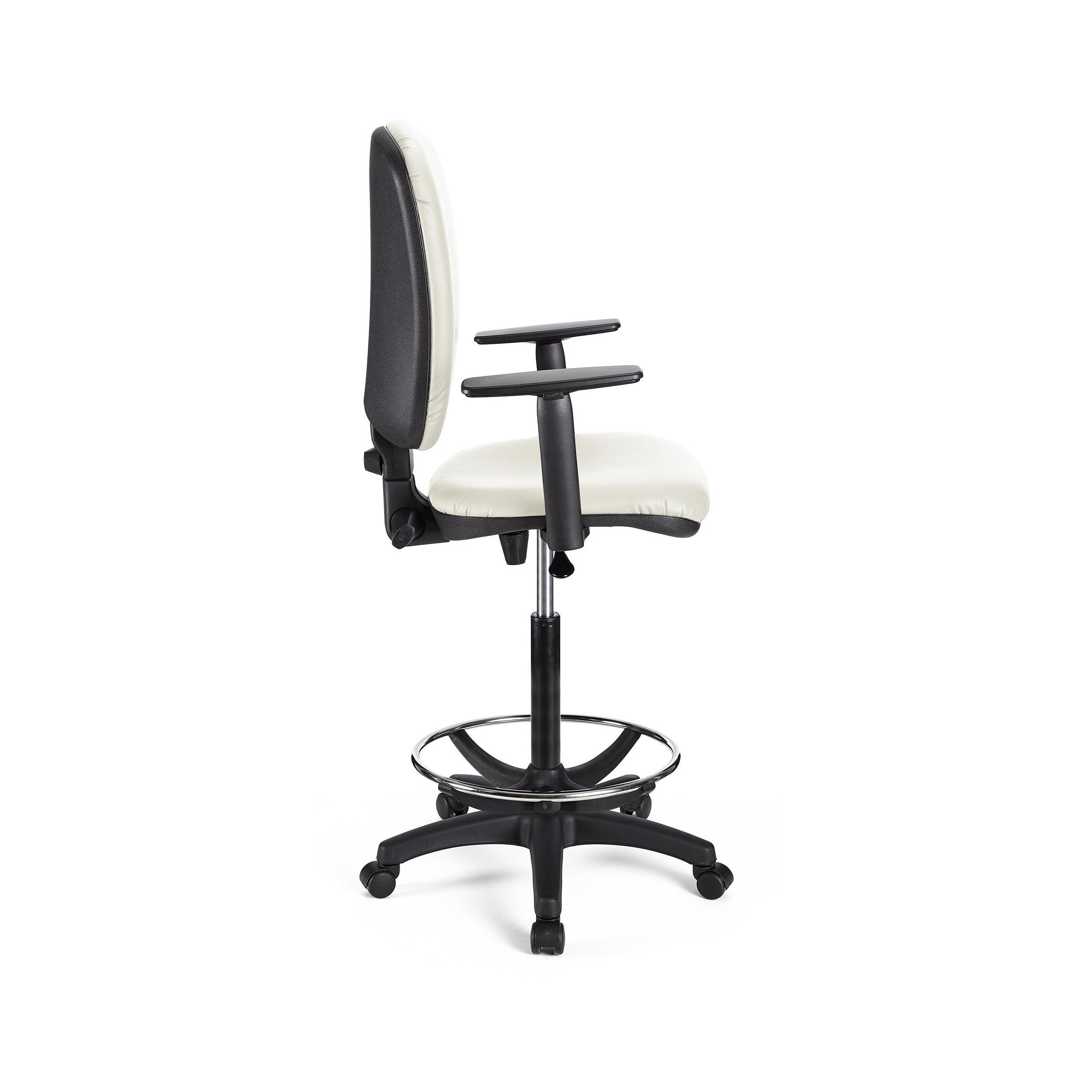 Taburete UDINE, respaldo y asiento piel blanca, brazos ajustables, base plástico