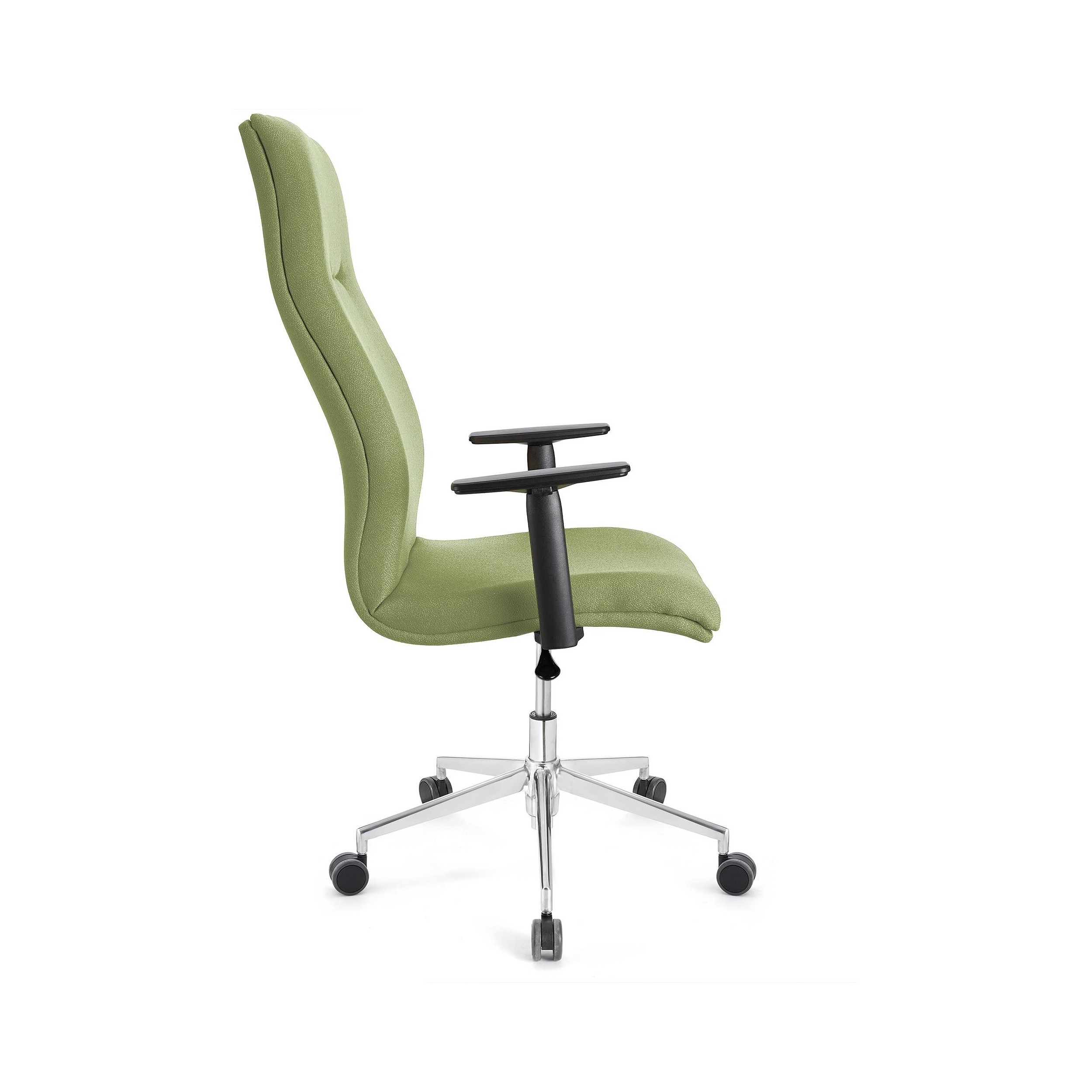 Sillón CASTULO ALTO, tela BALI verde, brazos ajustables, base metal, mecanismo basculante