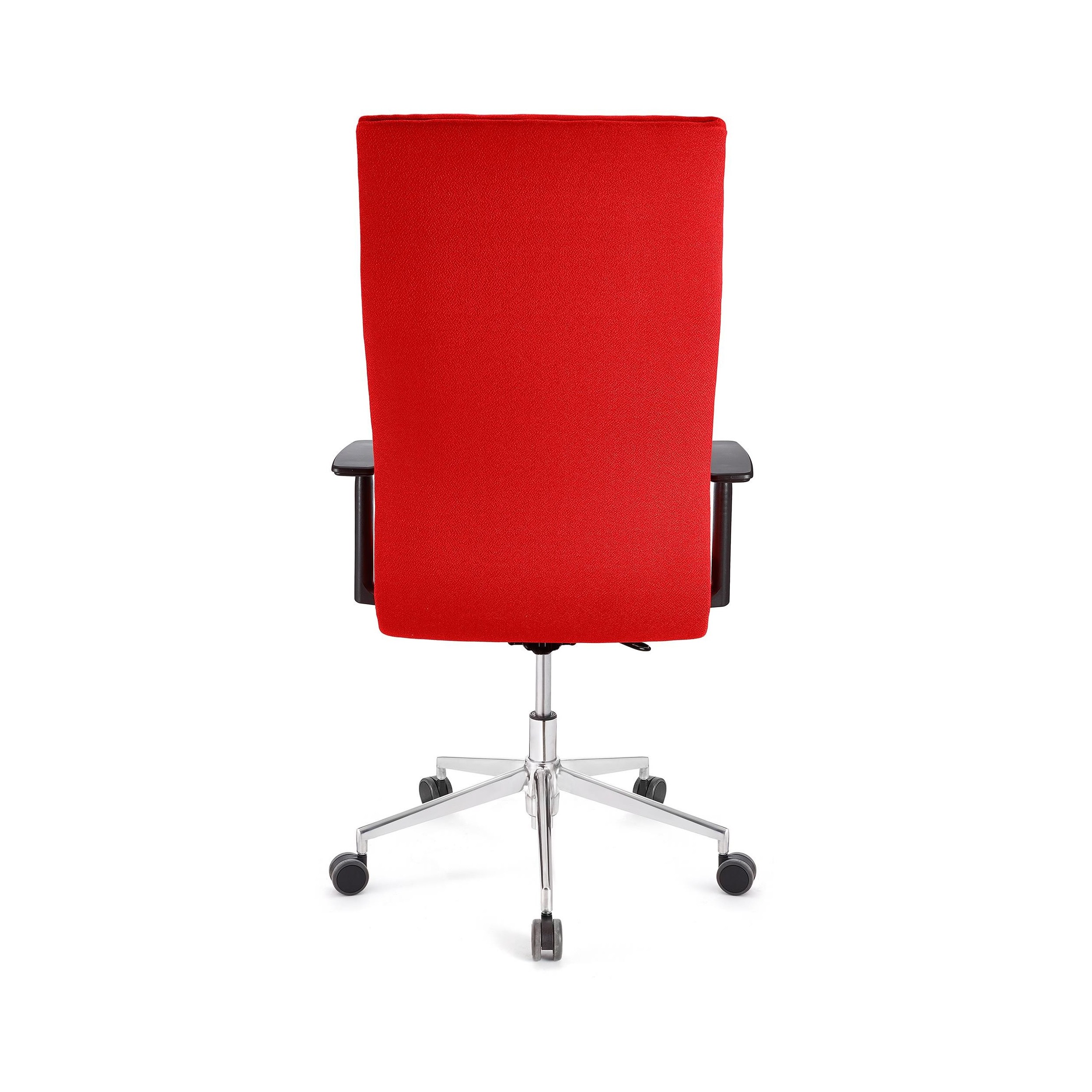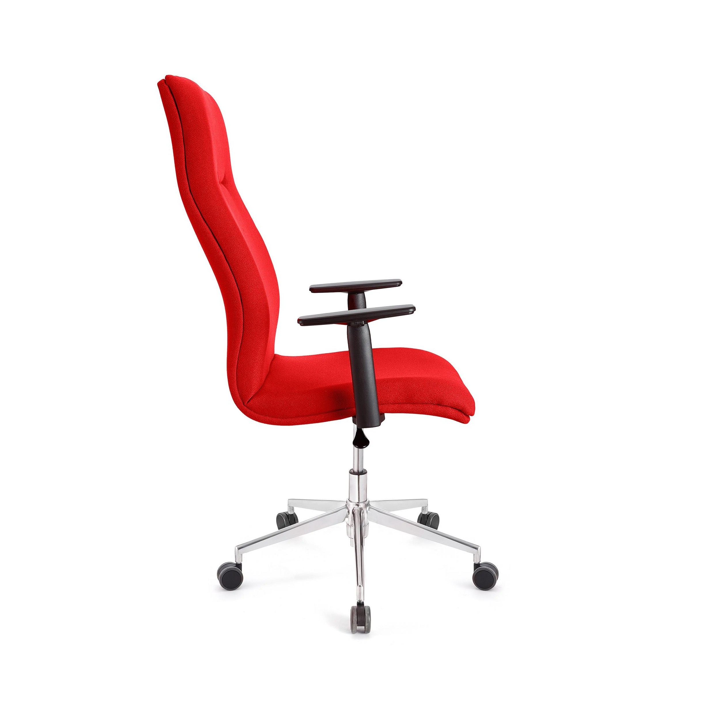 Sillón CASTULO ALTO, tela roja, brazos ajustables, base metal, mecanismo basculante