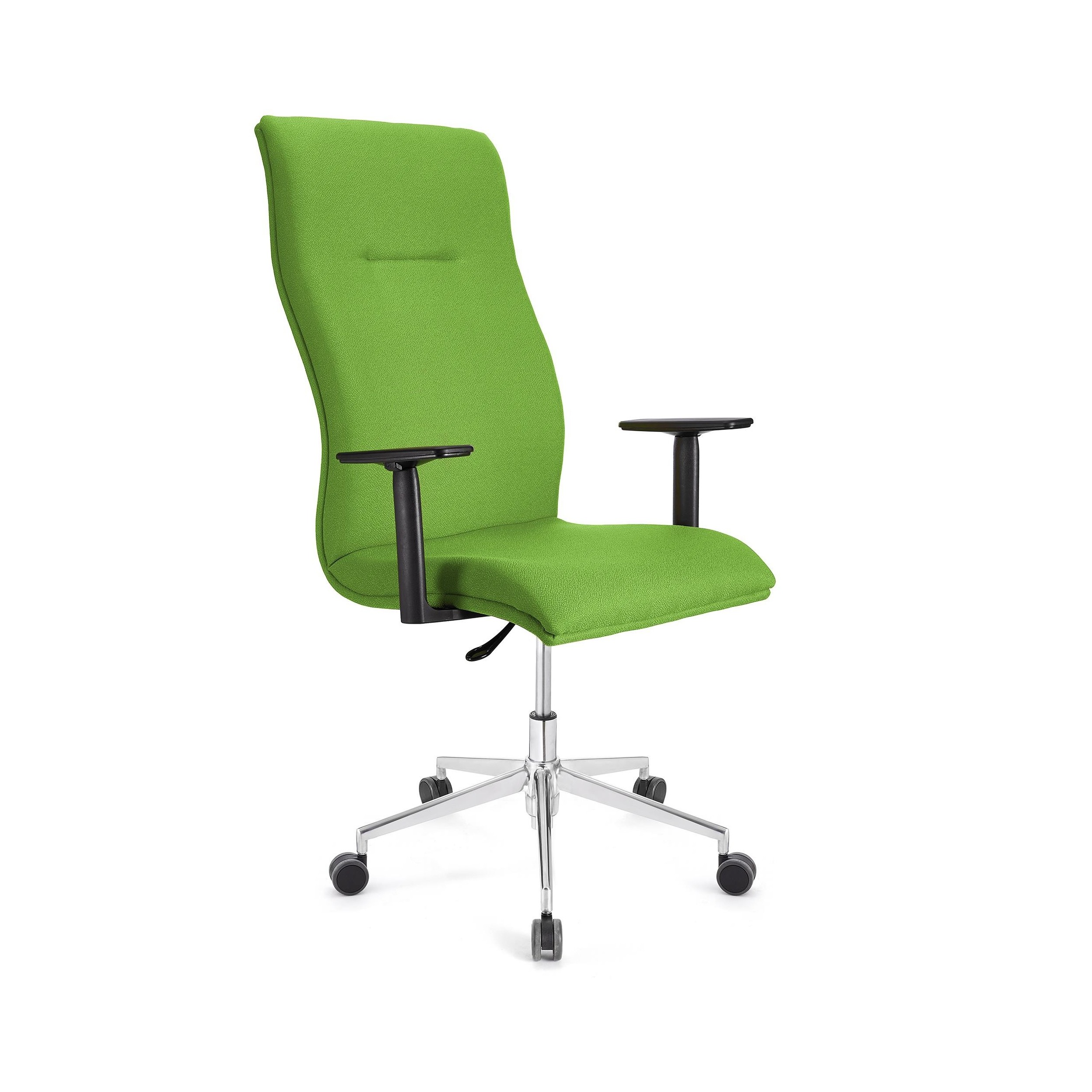 Sillón CASTULO ALTO, tela BONDAI verde, brazos ajustables, base metal, mecanismo basculante