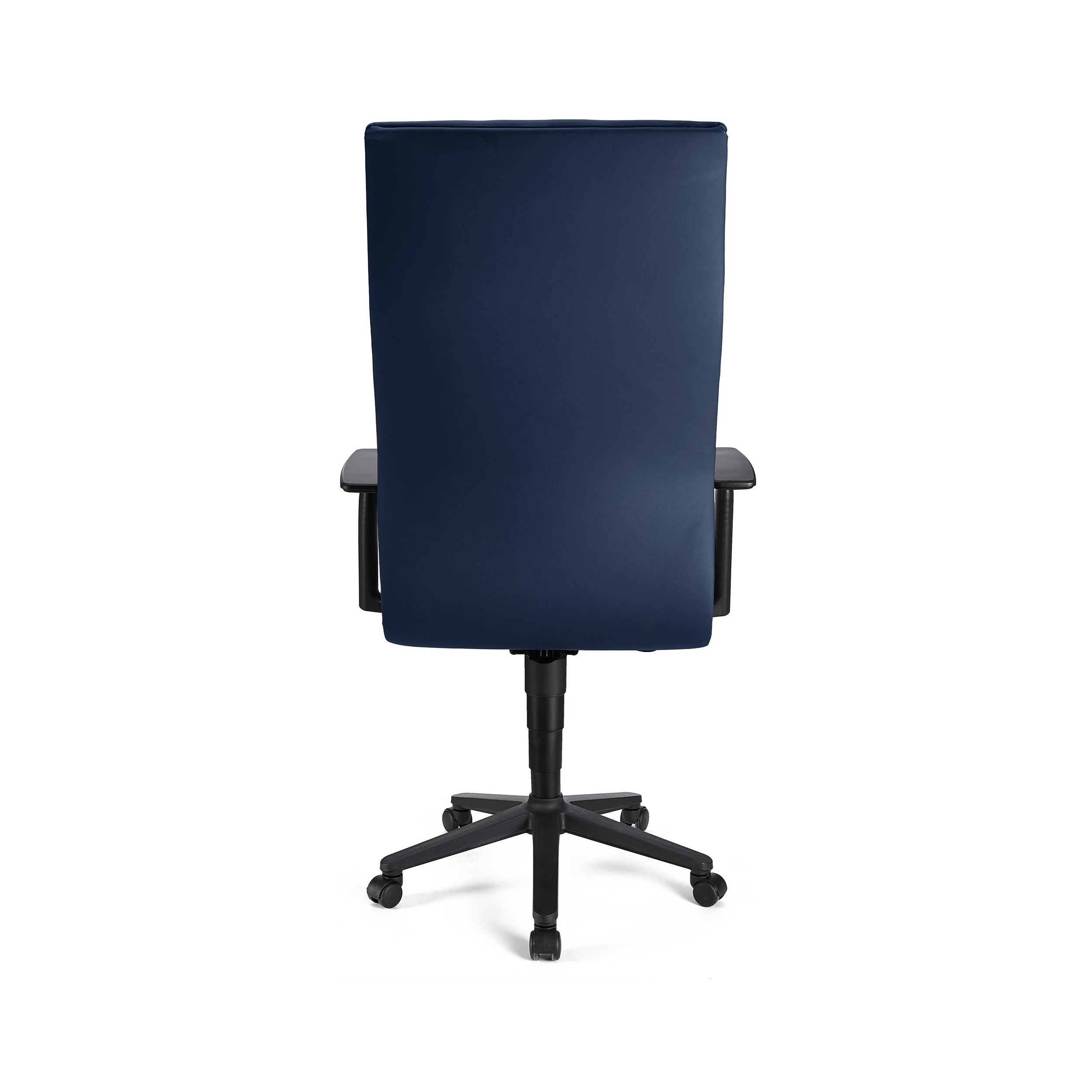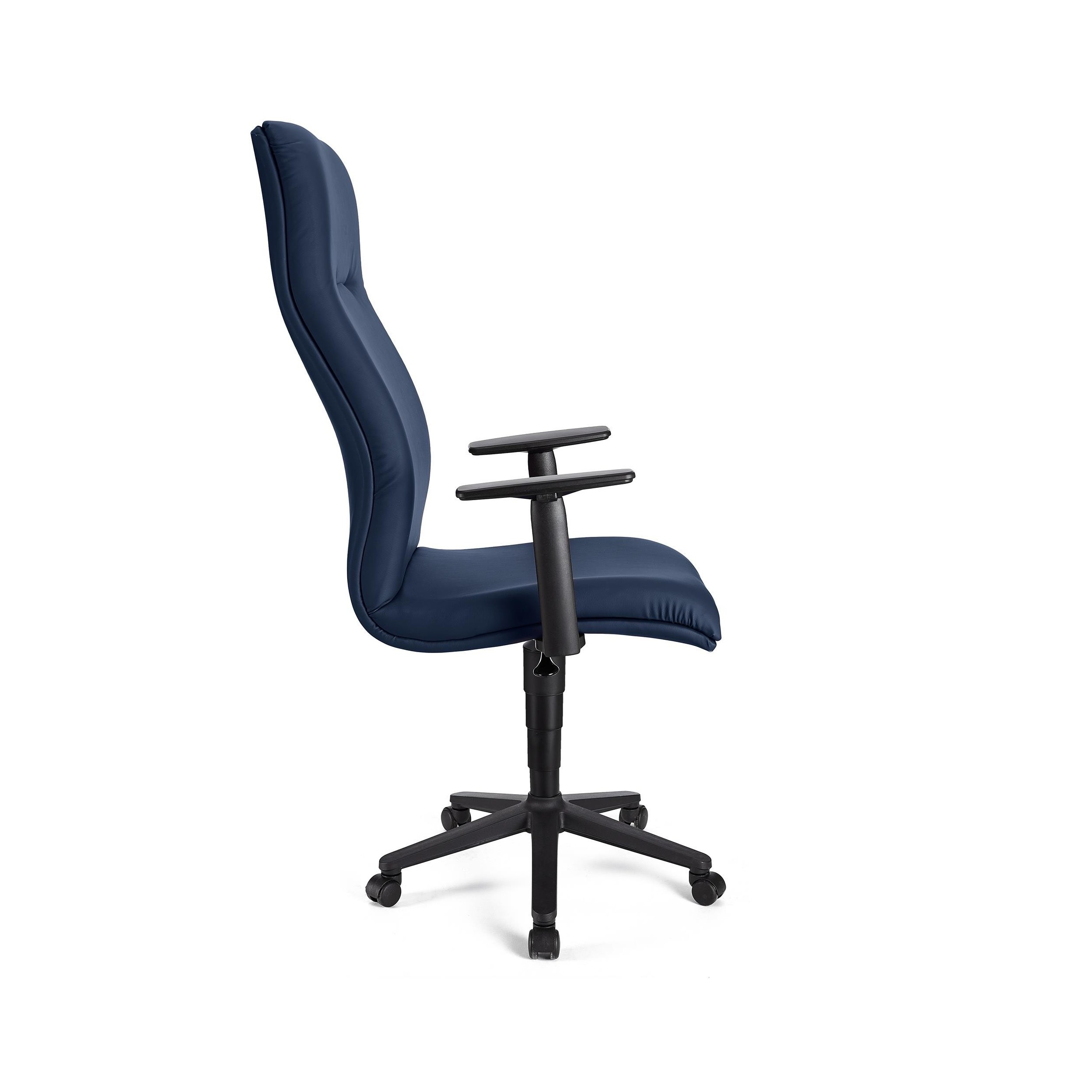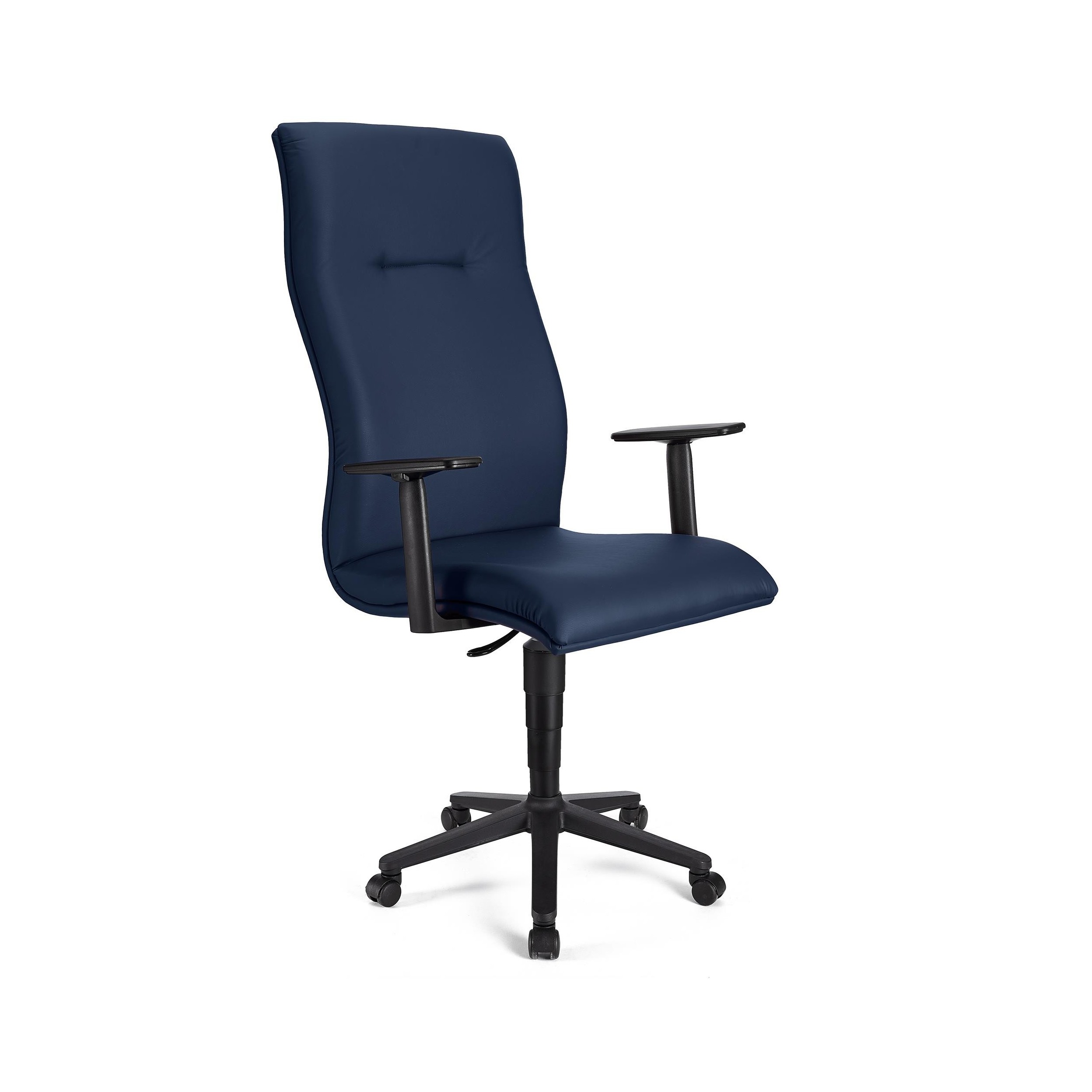 Sillón CASTULO ALTO, piel azul, brazos ajustables, base plástico, mecanismo basculante