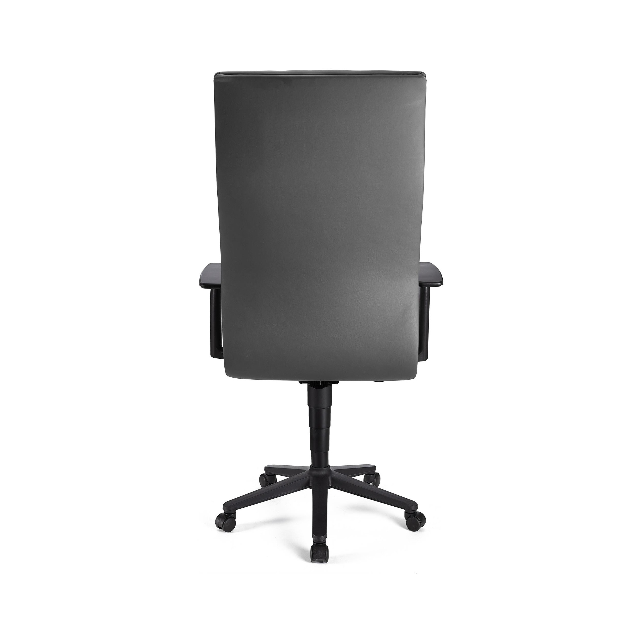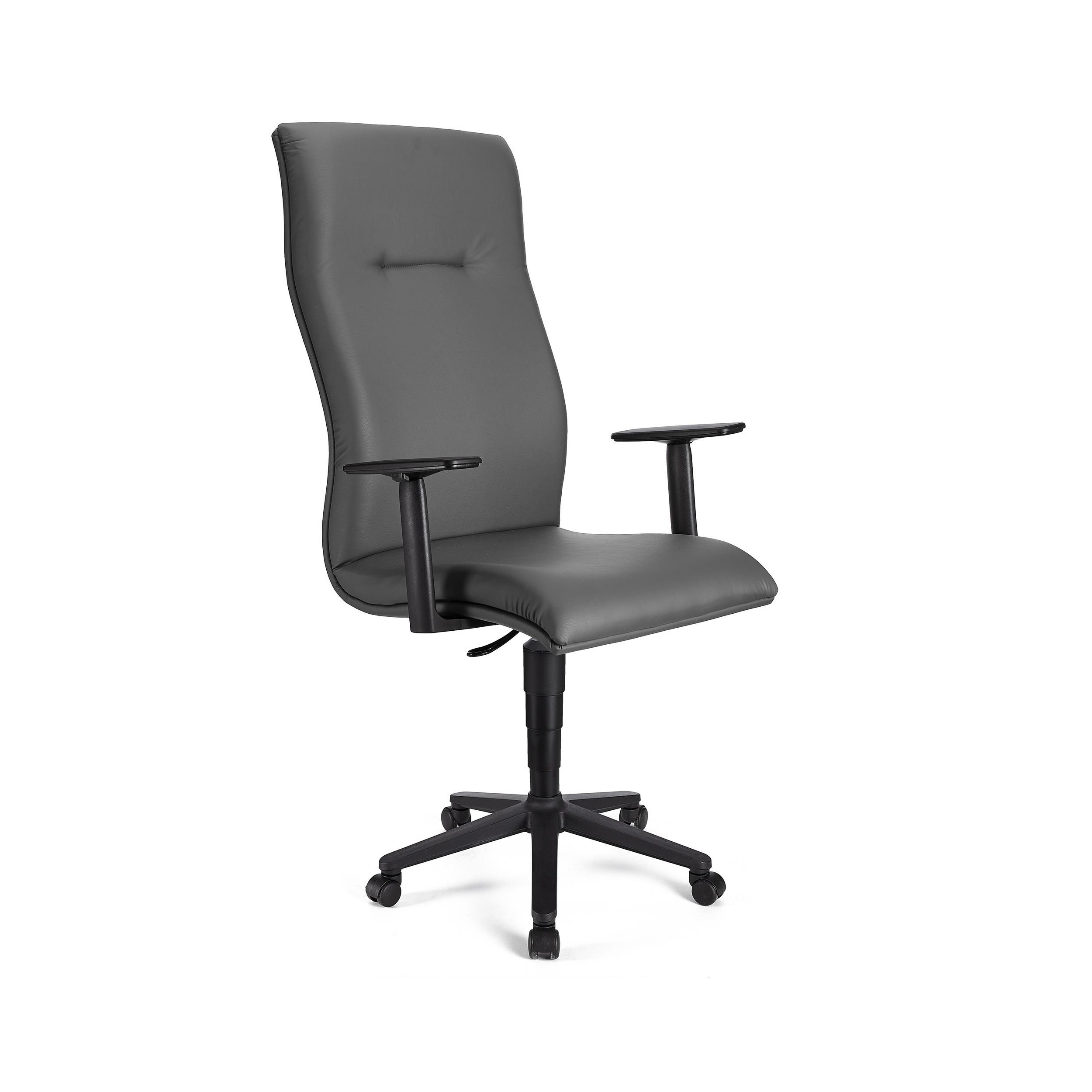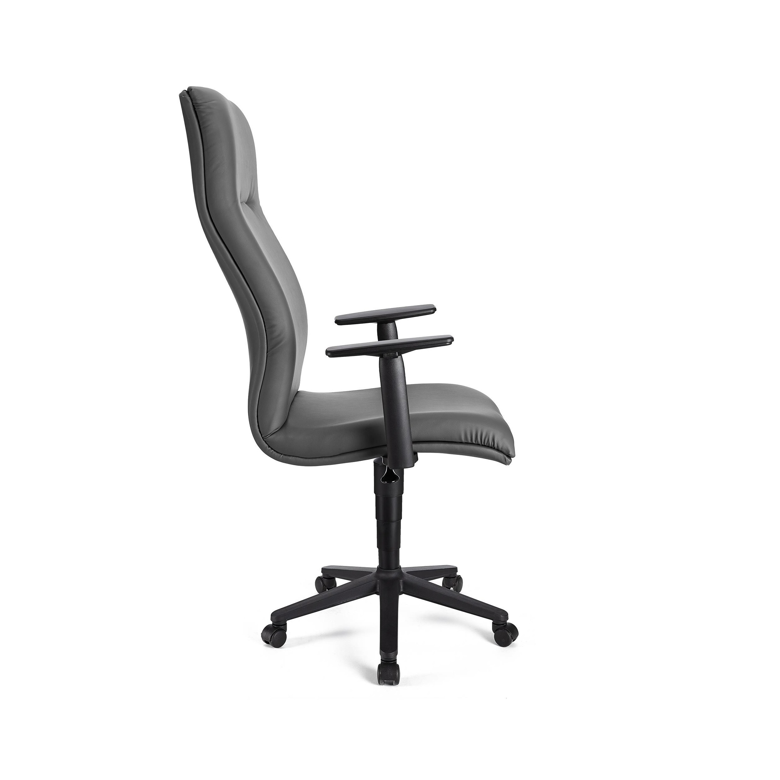 Sillón CASTULO ALTO, piel gris, brazos ajustables, base plástico, mecanismo basculante