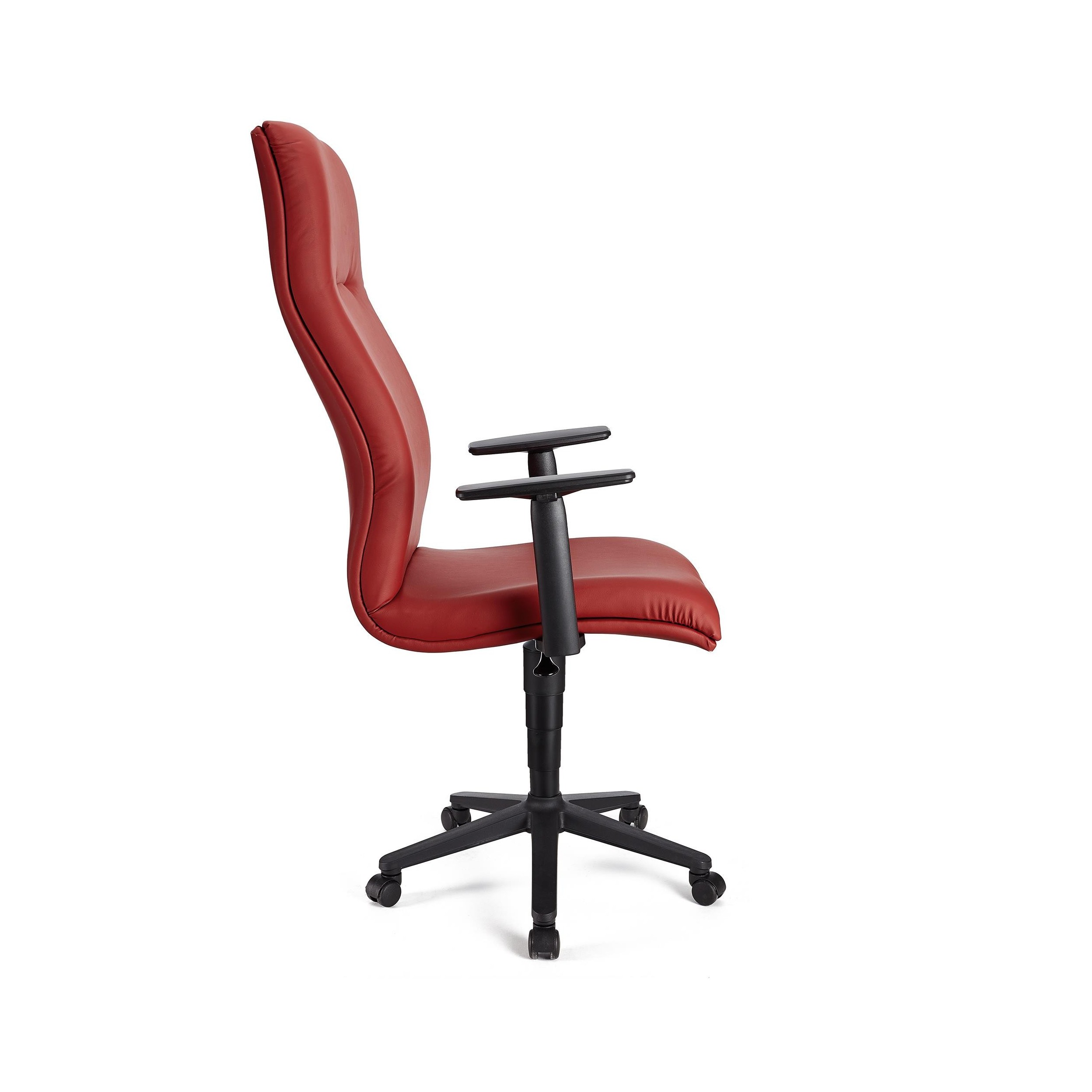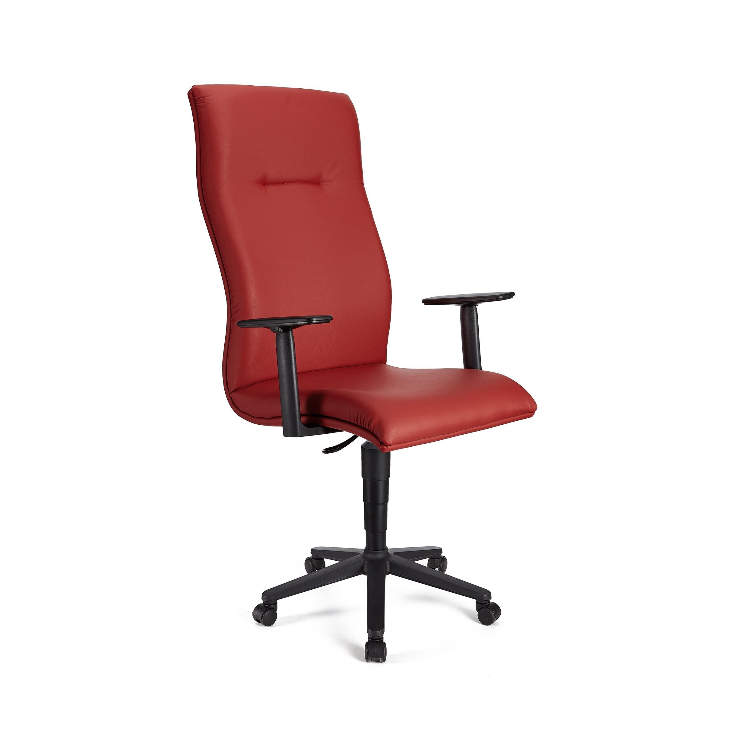 Sillón CASTULO ALTO, piel roja, brazos ajustables, base plástico, mecanismo basculante