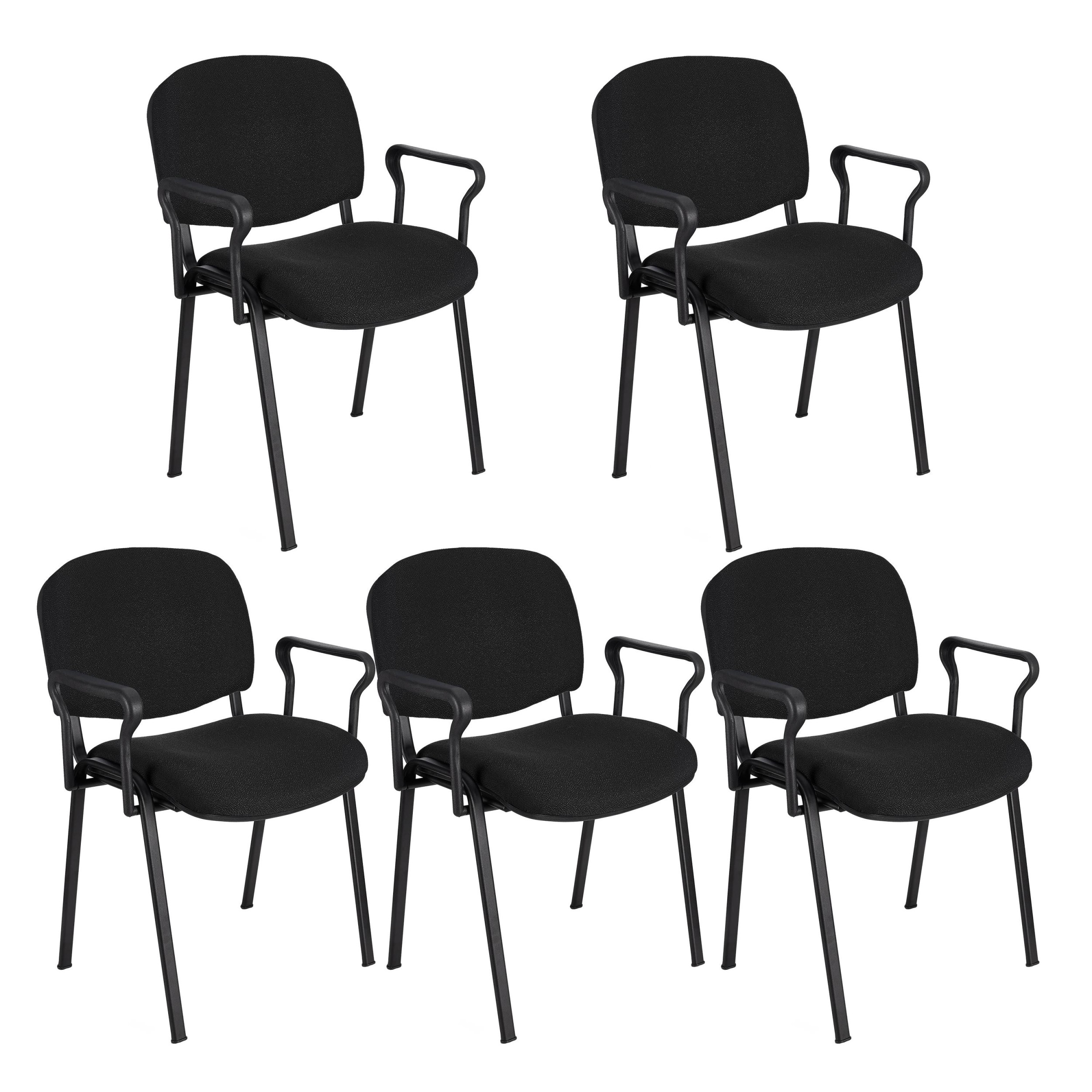 Lote de 5 Sillas de Confidente MOBY BASE CON BRAZOS, Cómodas y Prácticas, Patas Negras y Tela Negra