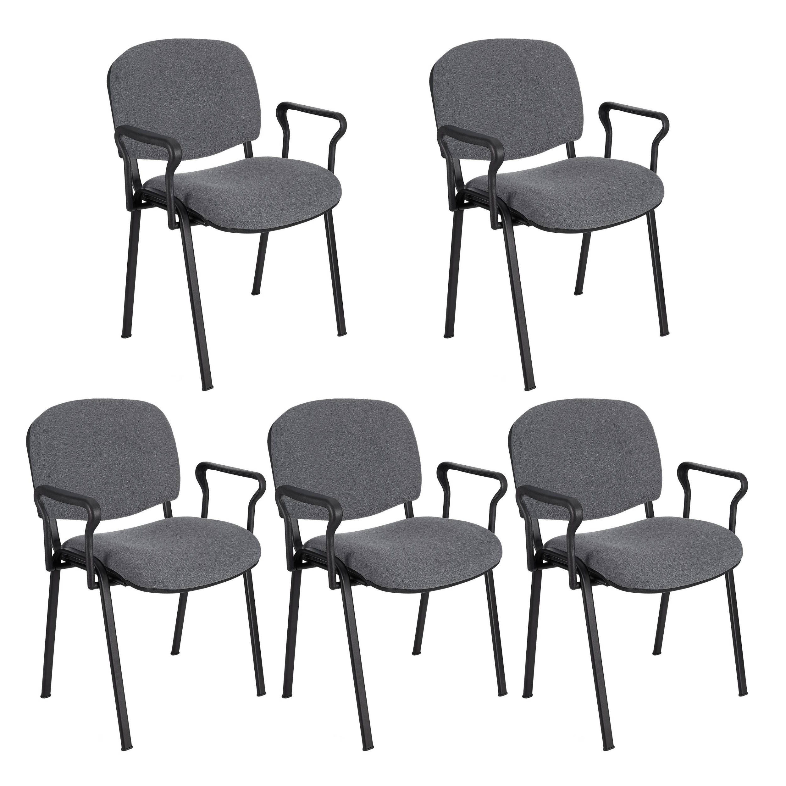 Lote de 5 Sillas de Confidente MOBY BASE CON BRAZOS, patas negras y tela negra