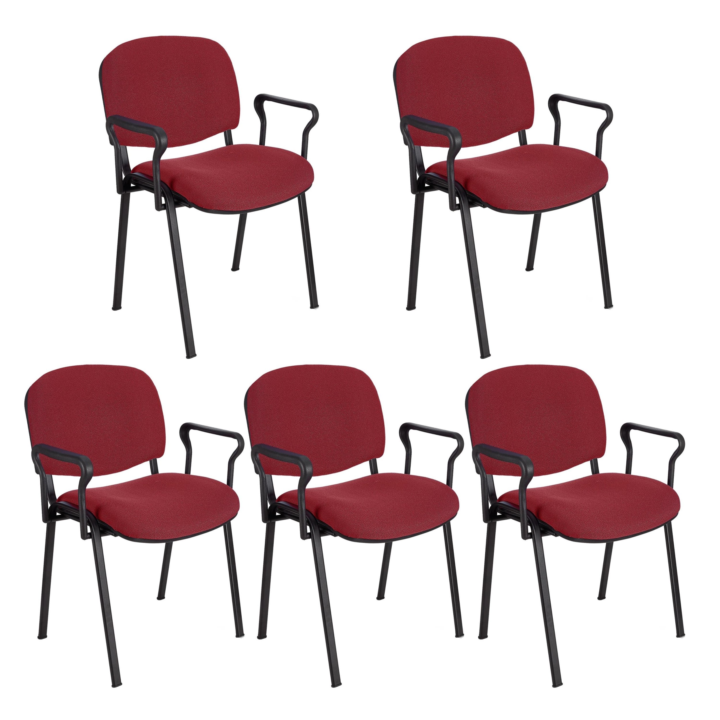 Práctico lote de 5 sillas de confidente MOBY BASE CON BRAZOS. De línea clásica para que se puedan sentar clientes, ponerlas en salas de espera o de conferencias. Disponibles en varios colores.