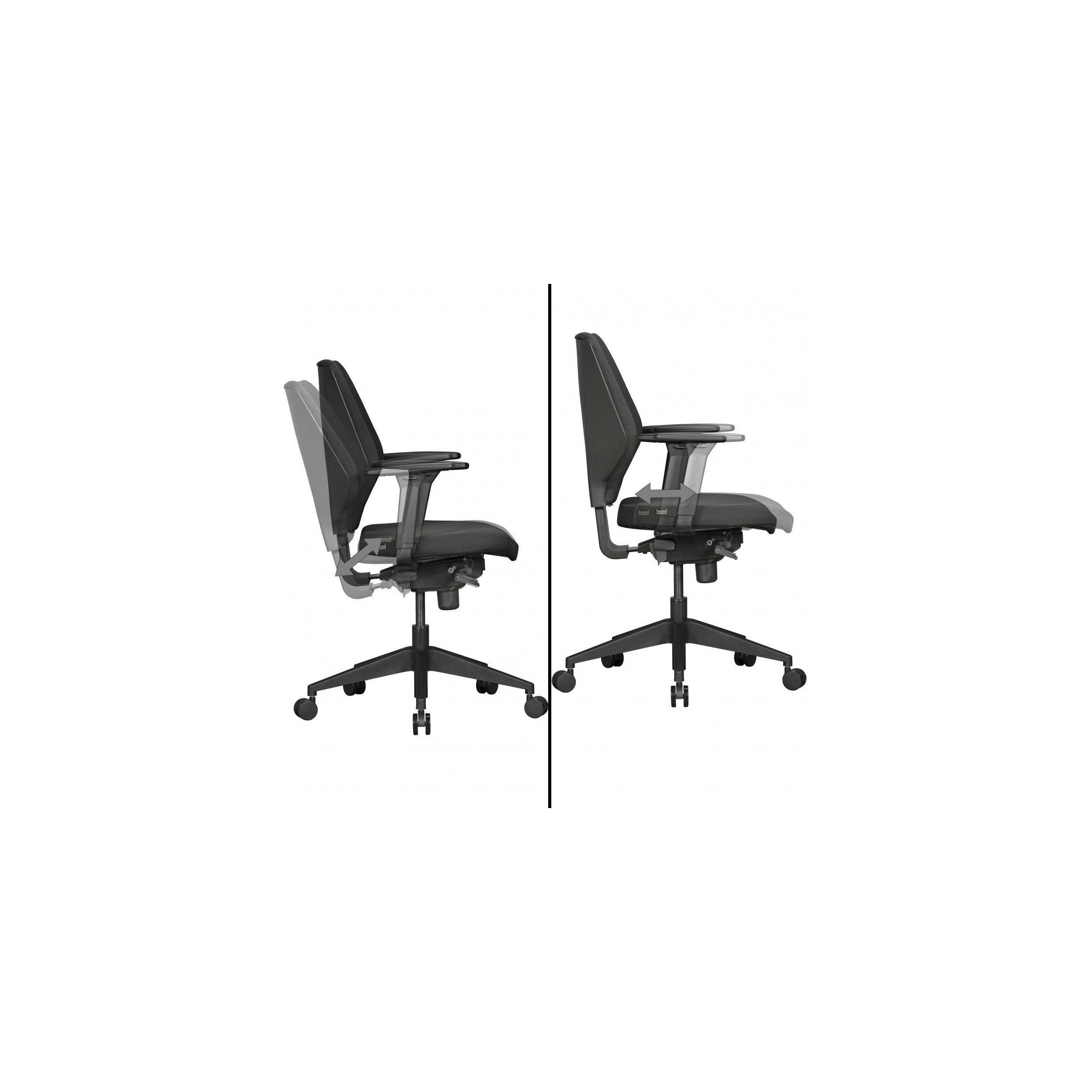 Este modelo incluye la más avanzada tecnología, ya que tiene mecanismo sincronizado de reclinación, bloqueable en 3 posiciones. Este sistema es realmente práctico y fácil de manejar, pudiéndose ajustar la dureza o resistencia con la que la silla se reclina.